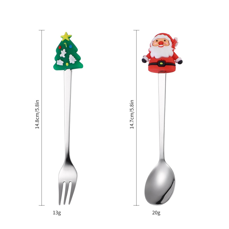- 商品名稱:卡通硅胶不锈钢勺子叉子餐具套装蛋糕水果叉家用圣诞礼物搅拌咖啡
