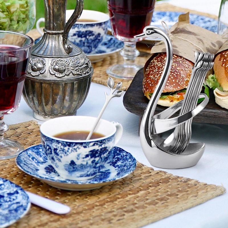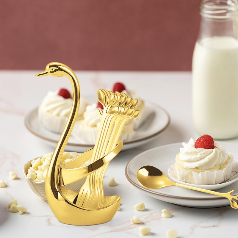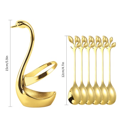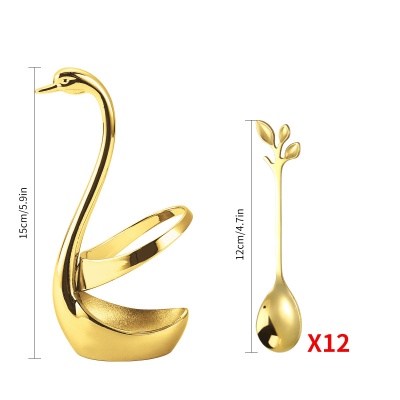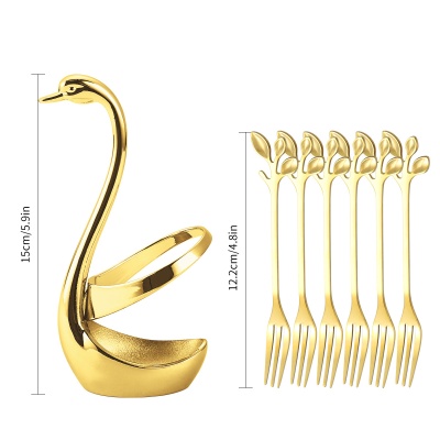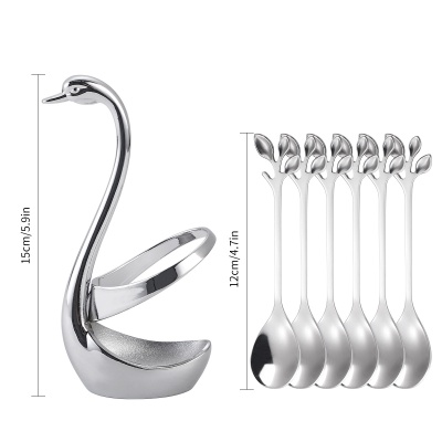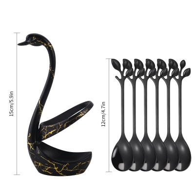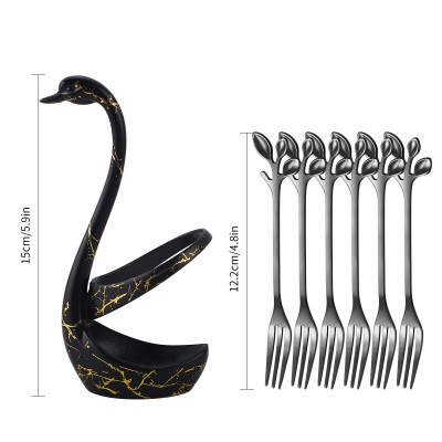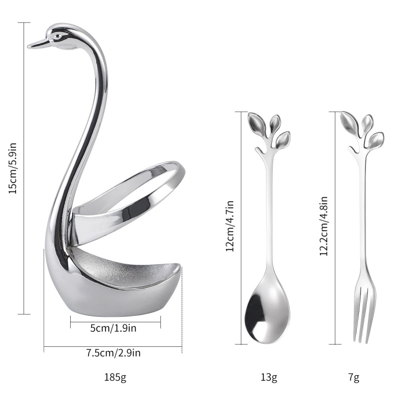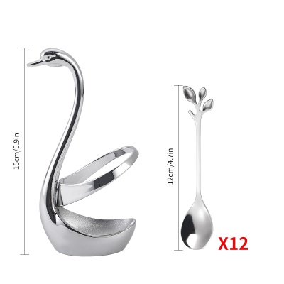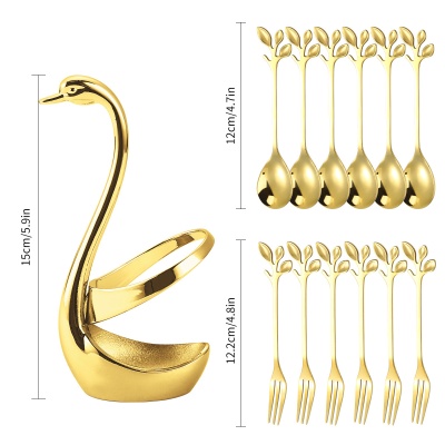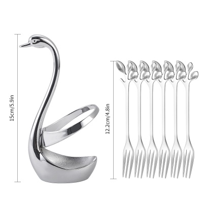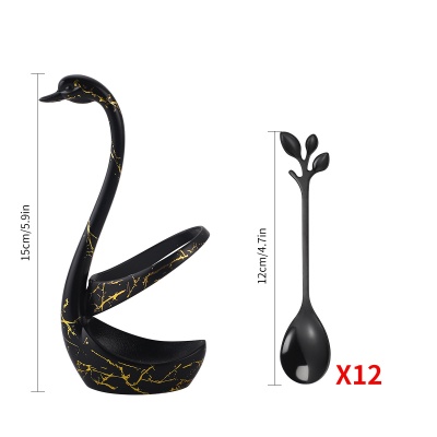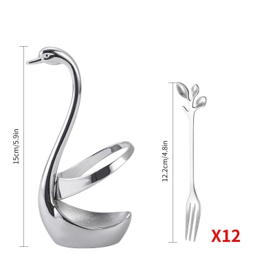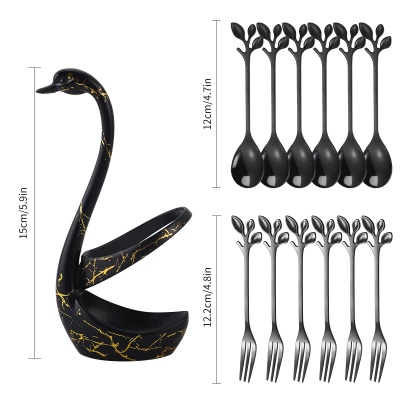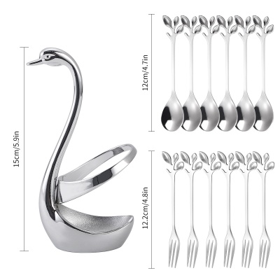 - 商品名稱:小号天鹅底座水果叉树叶咖啡勺套装不锈钢餐厅酒店摆件餐具收纳架