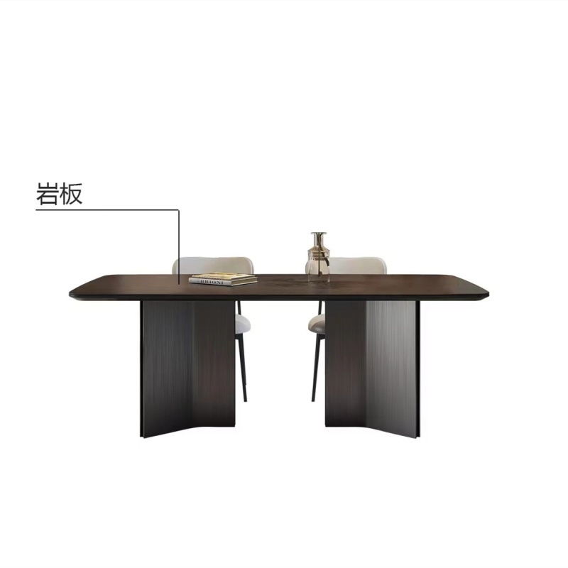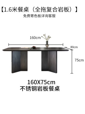 商品名稱:意式简约现代黑色岩板餐桌椅组合长方形复古小户型侘寂风家用饭桌