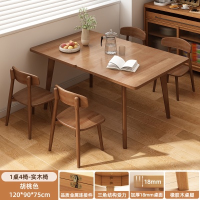 商品名稱:实木腿折叠餐桌家用小户型吃饭桌子简约现代客厅长方形餐桌椅组合