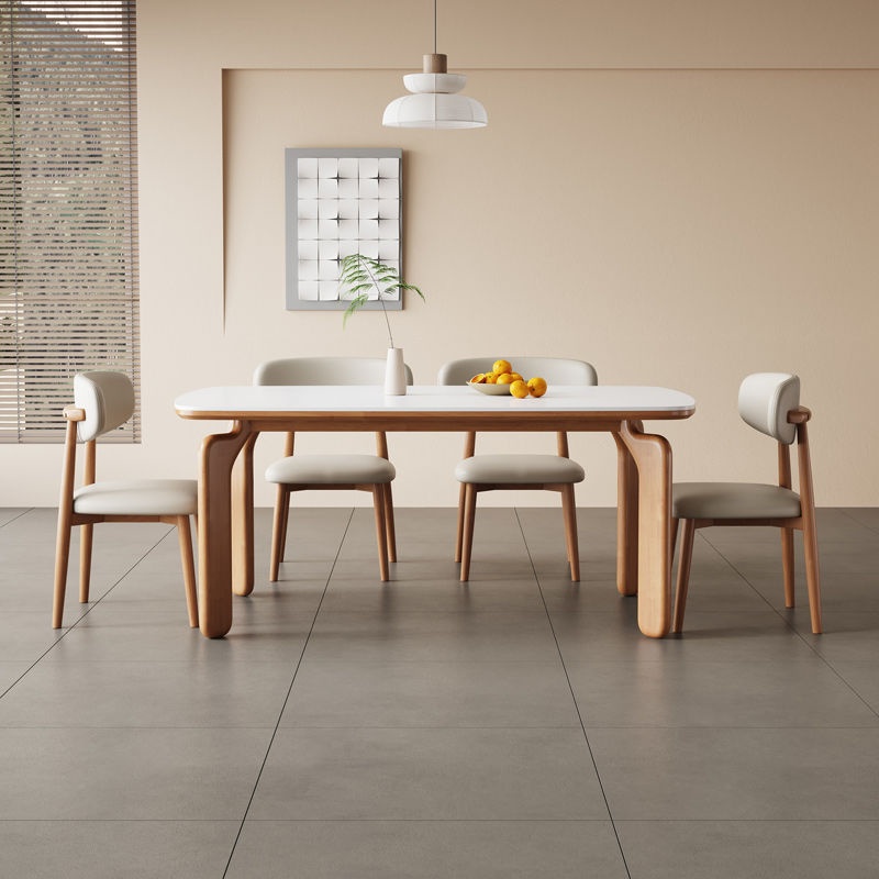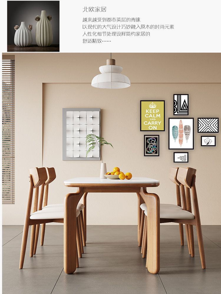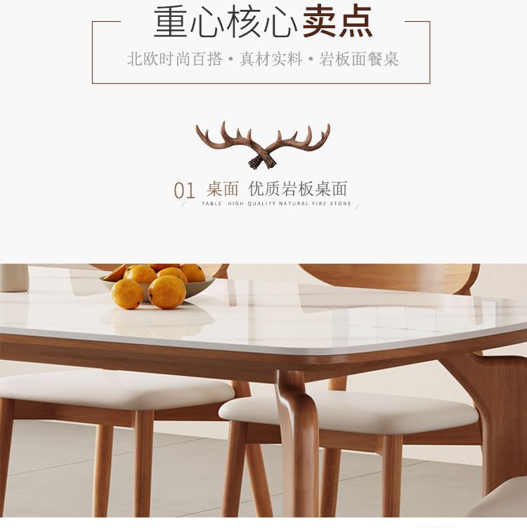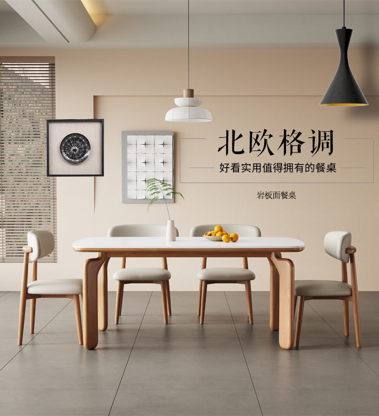 商品名稱:北欧轻奢实木岩板餐桌餐桌椅极简简约家用小户型长方形组合饭桌子