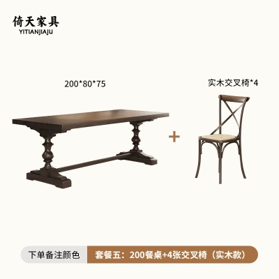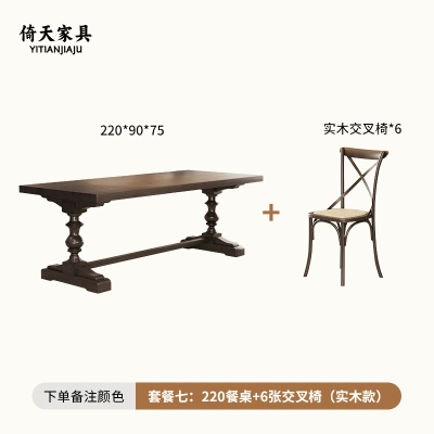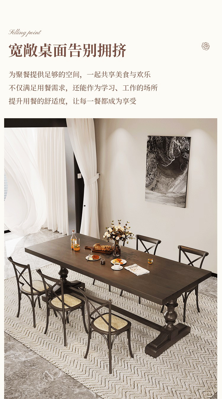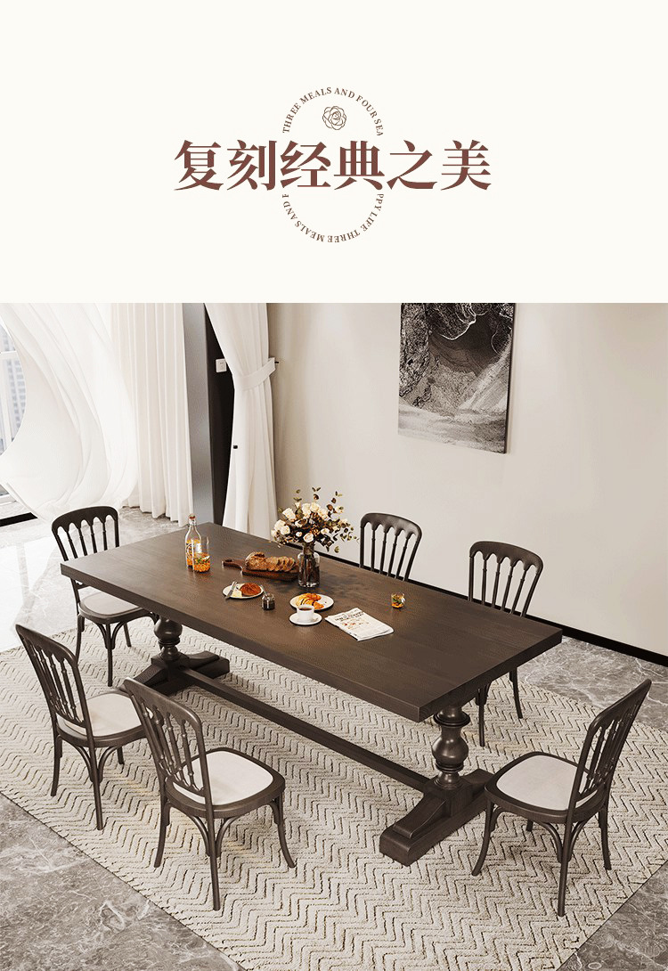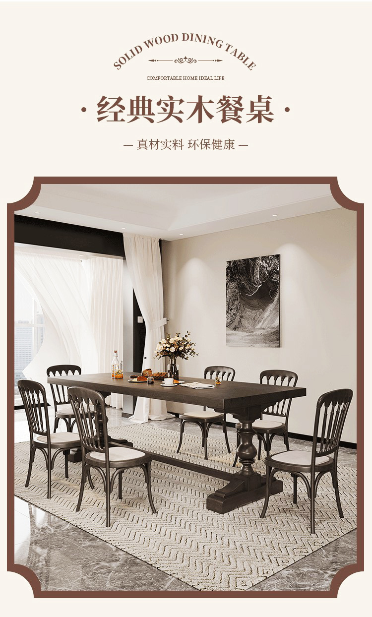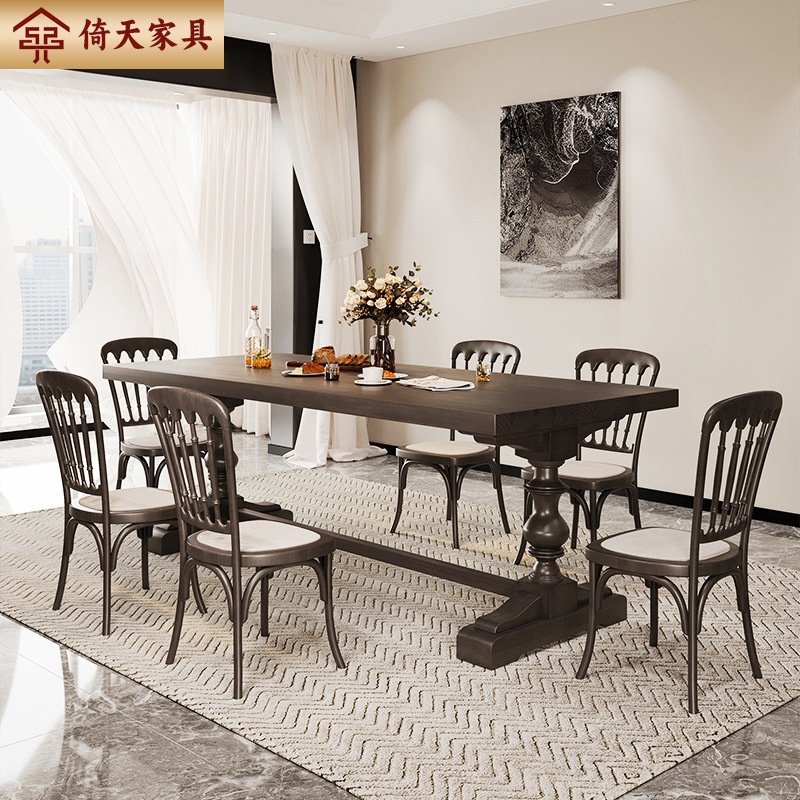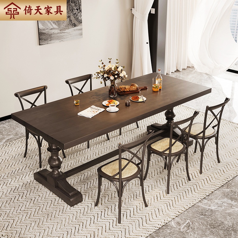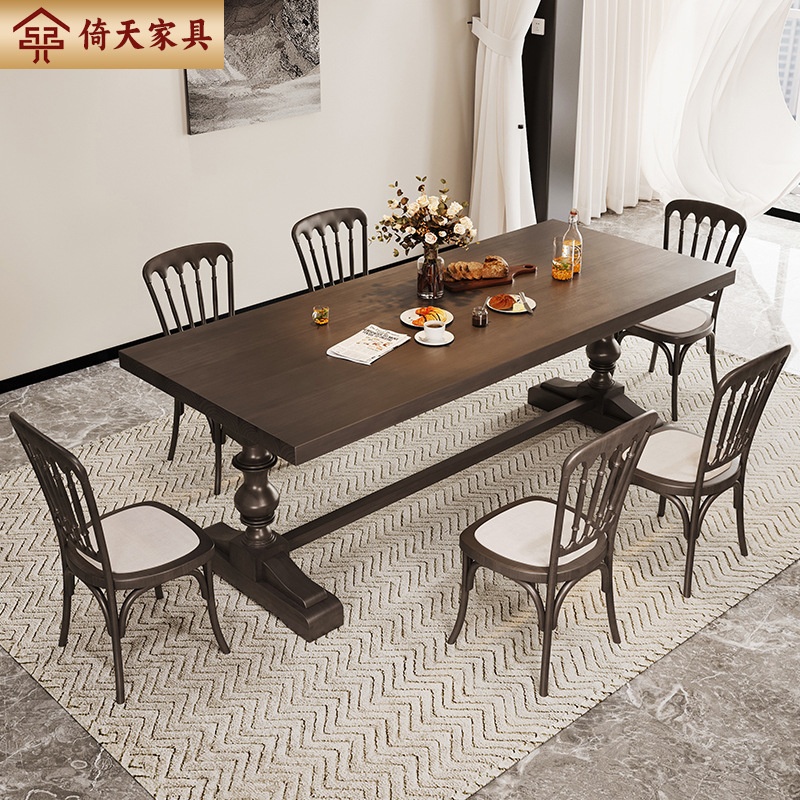 倚天美式复古实木餐桌家用高级感小户型长方形饭桌客厅长桌洽谈桌