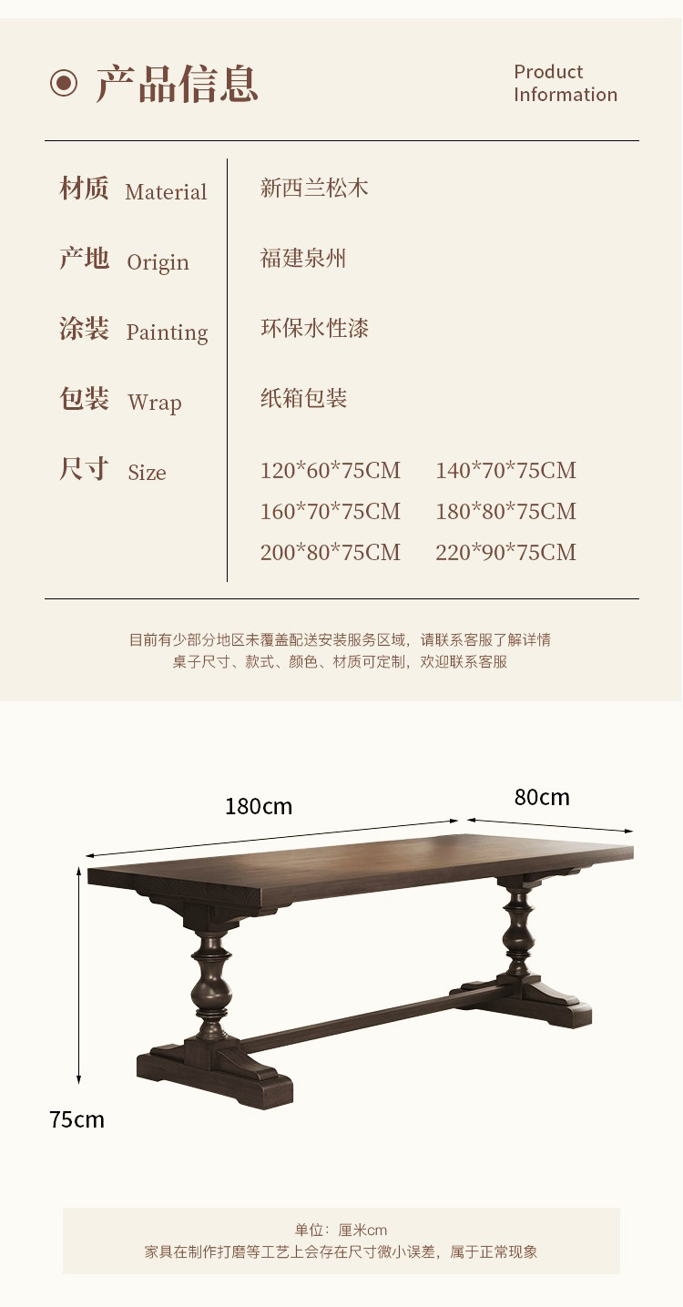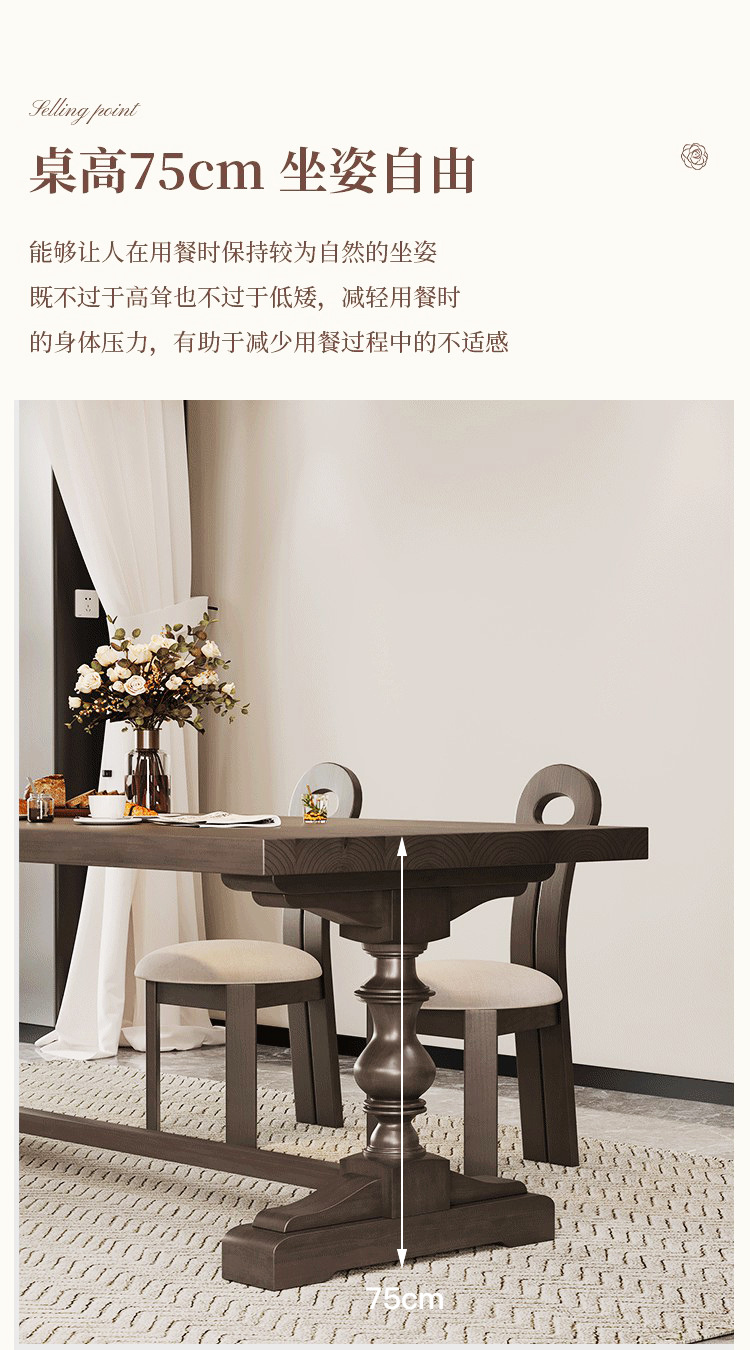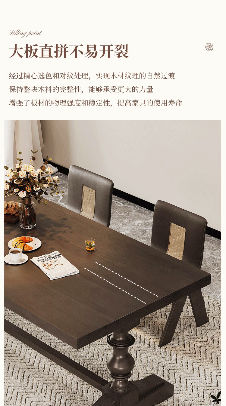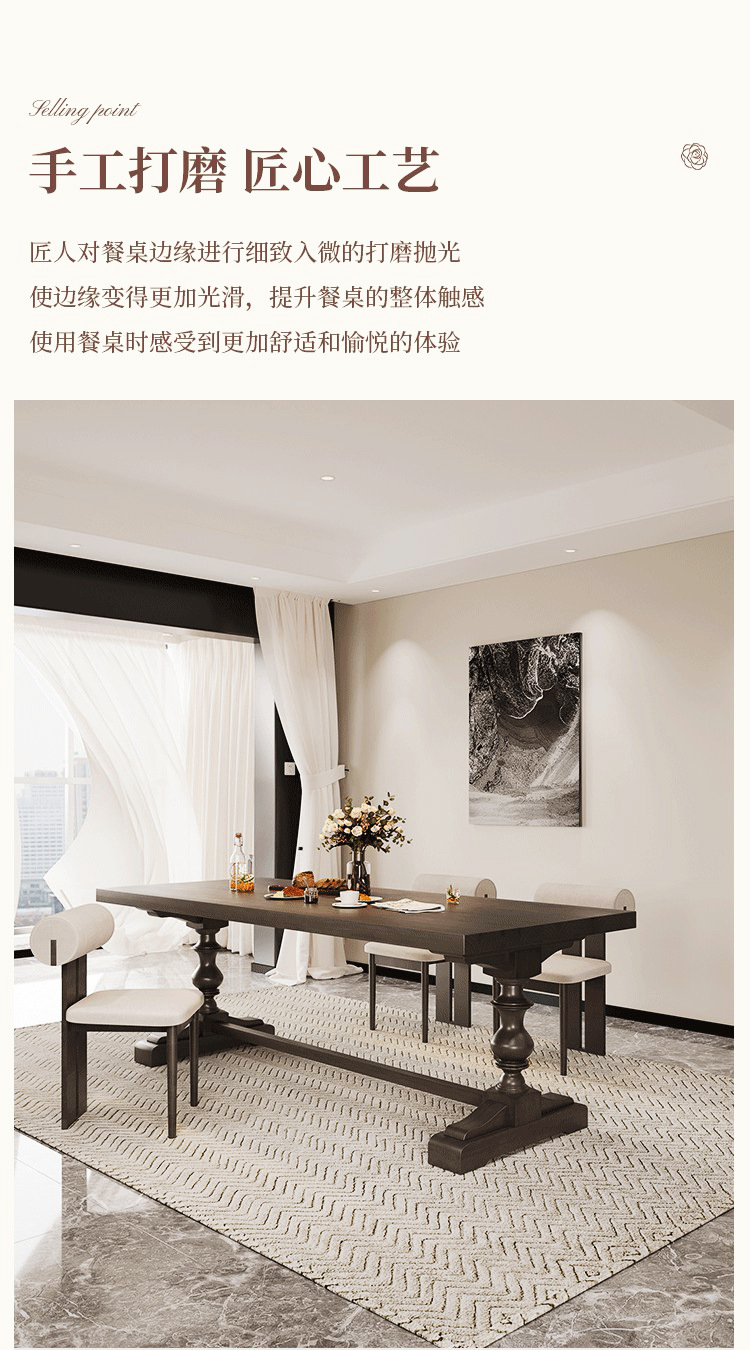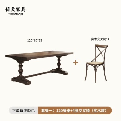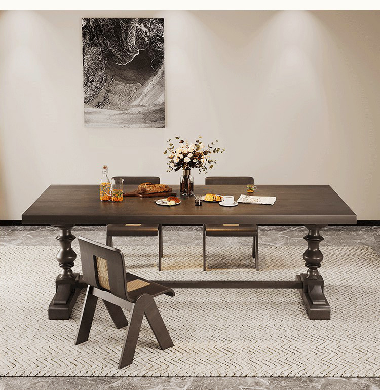 倚天美式复古实木餐桌家用高级感小户型长方形饭桌客厅长桌洽谈桌