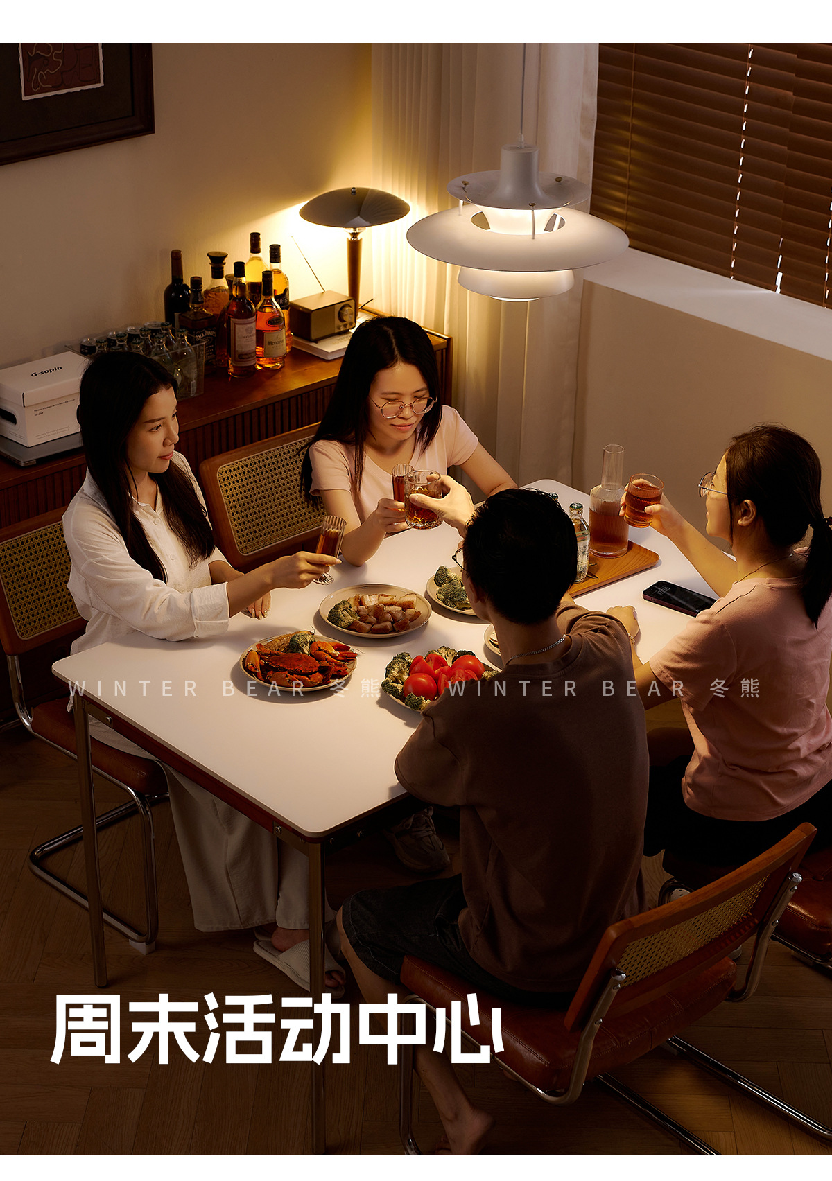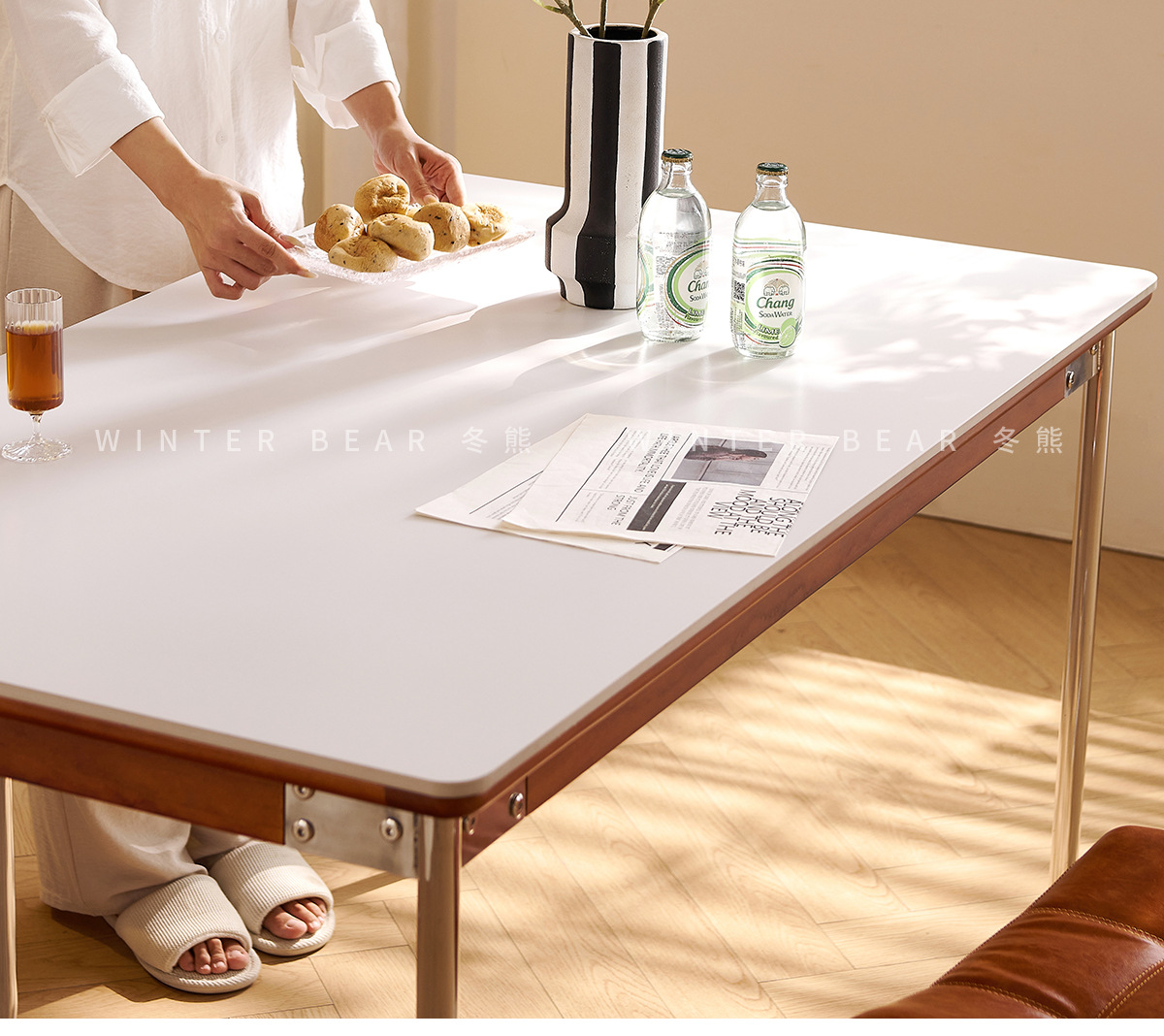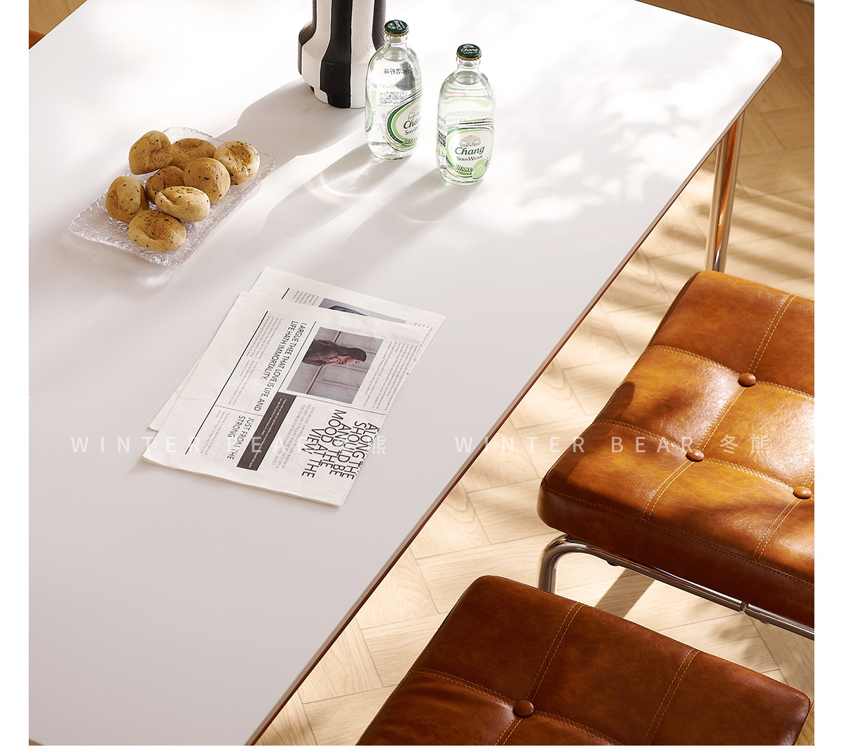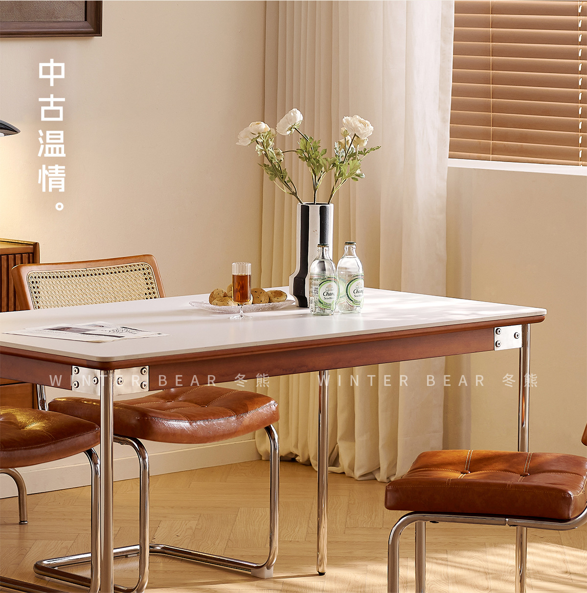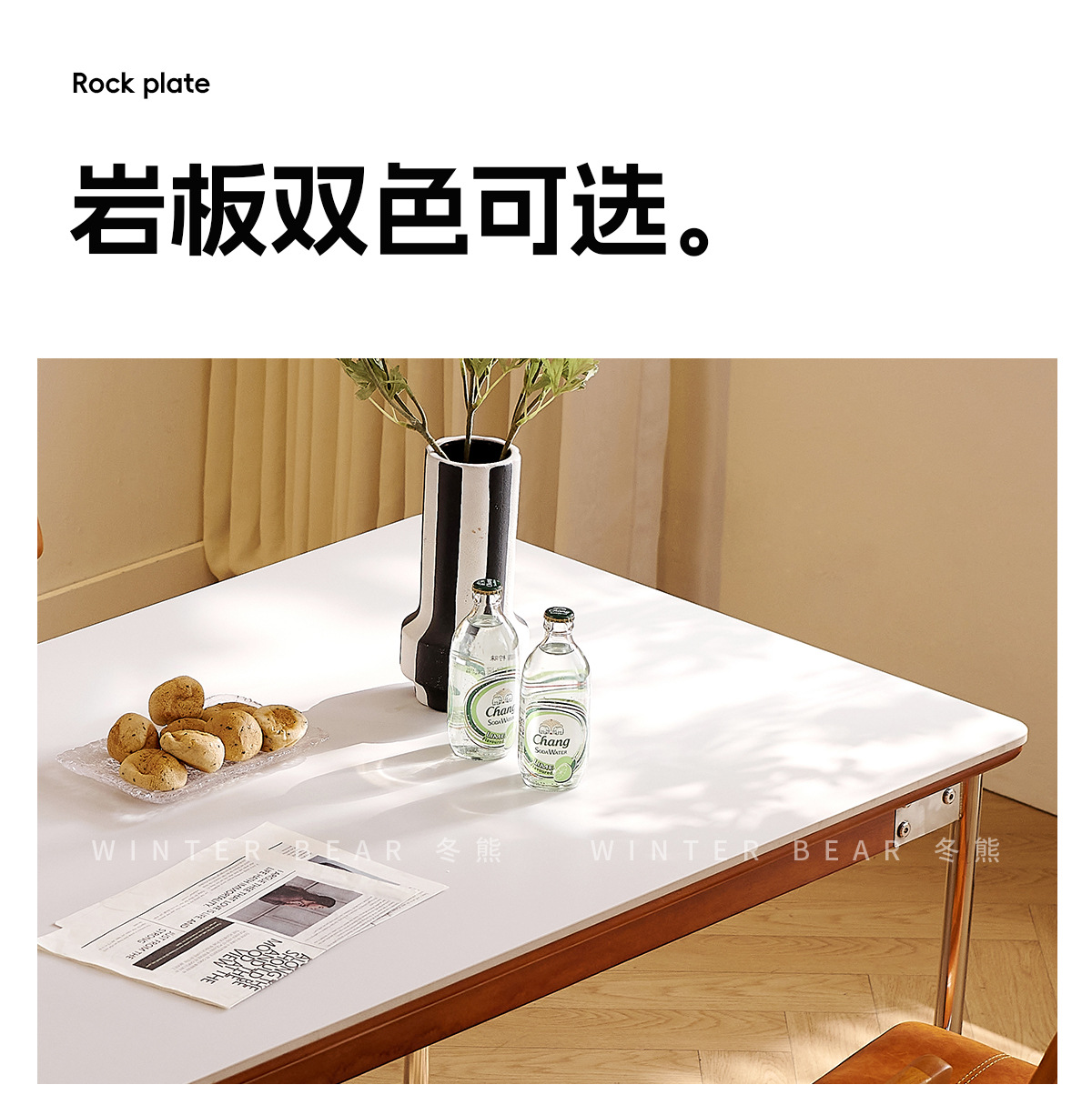 复古风五味岩板餐桌家用现代小户型日式不锈钢腿长方形吃饭餐桌椅