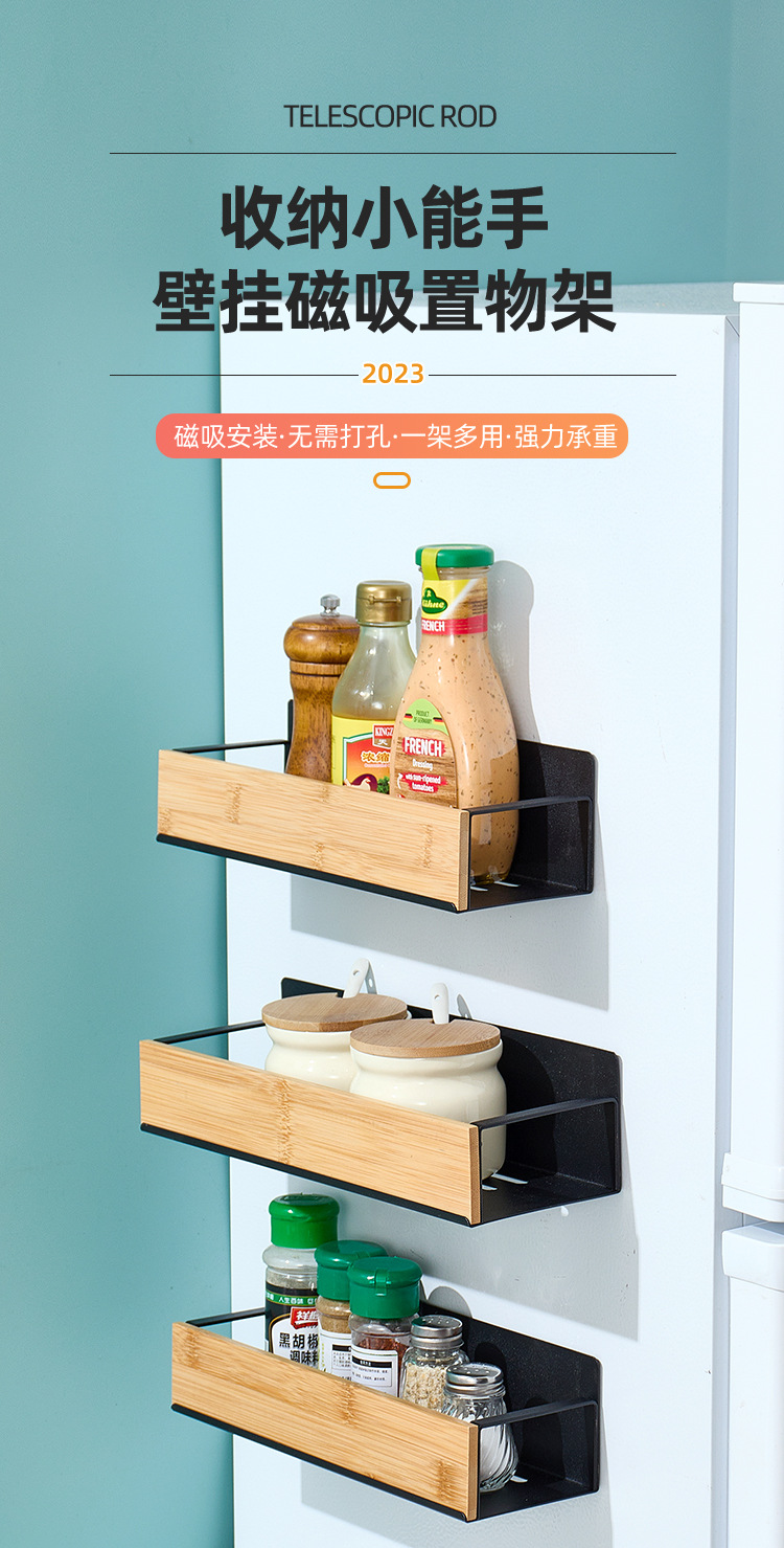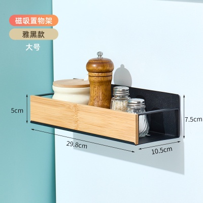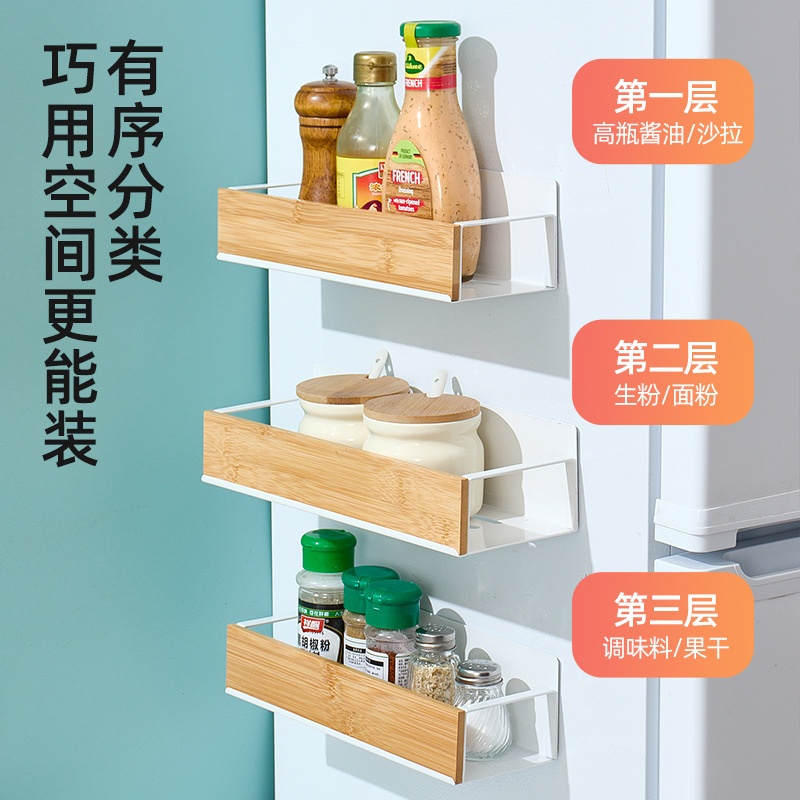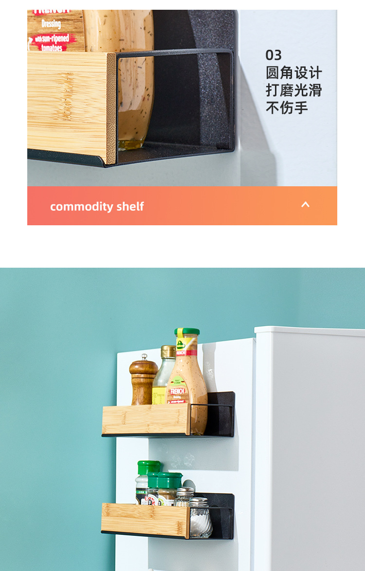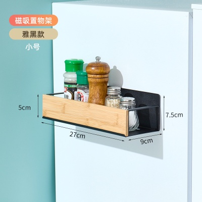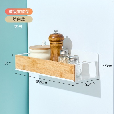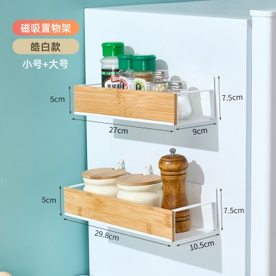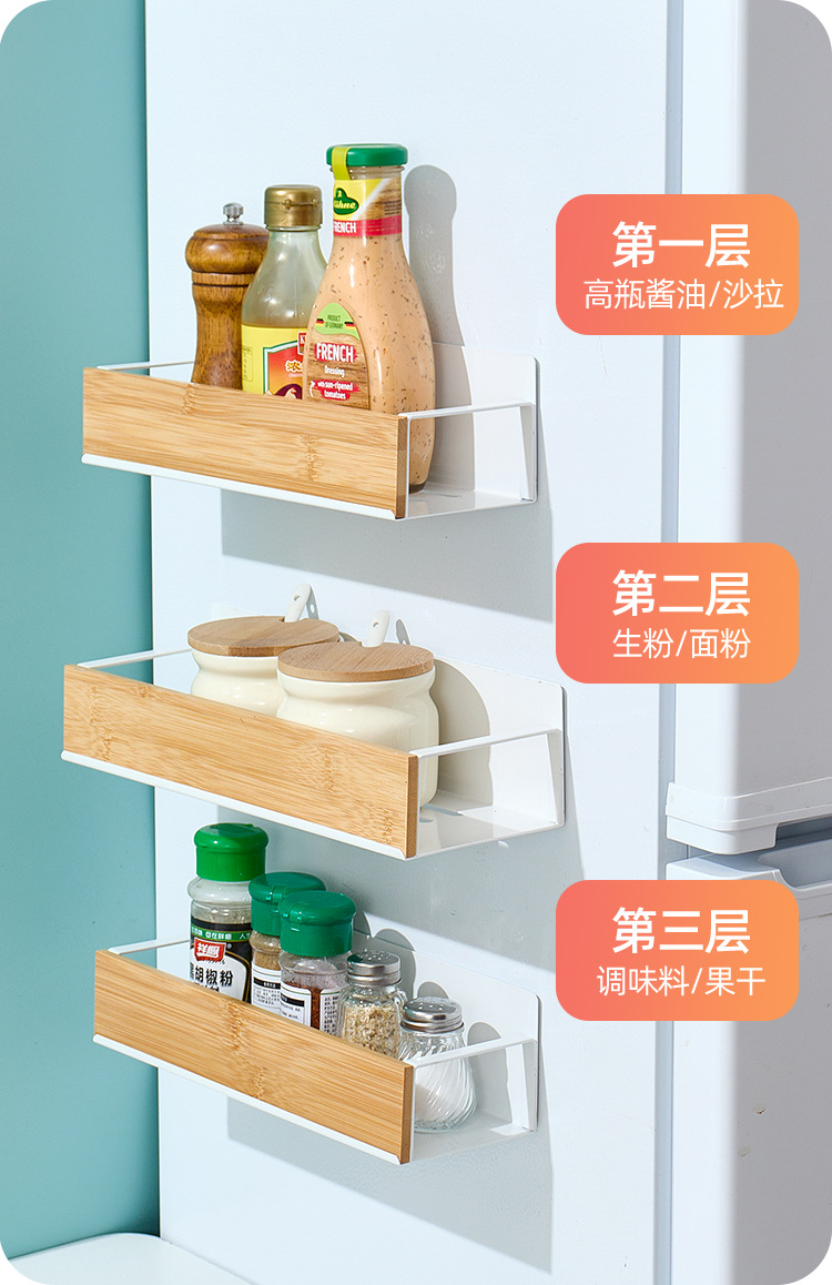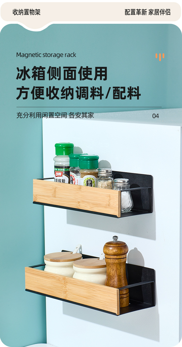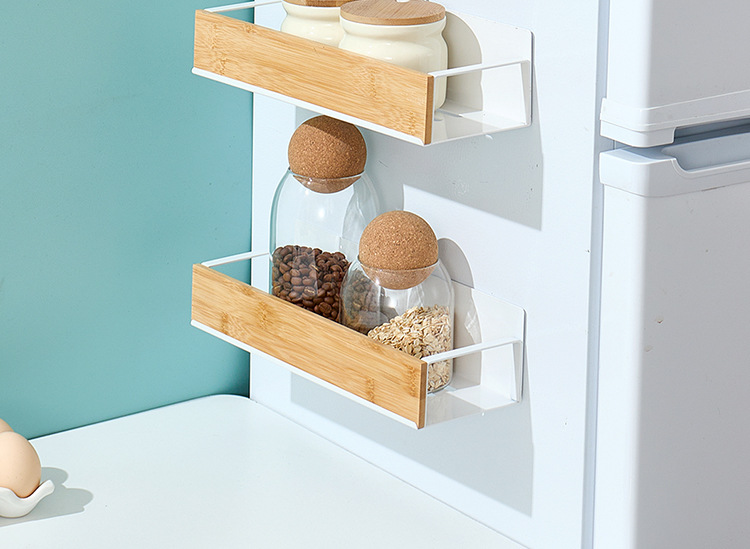 商品名稱:跨境厨房壁挂式竹木置物架磁吸式冰箱架侧挂收纳架免打孔调料架盒