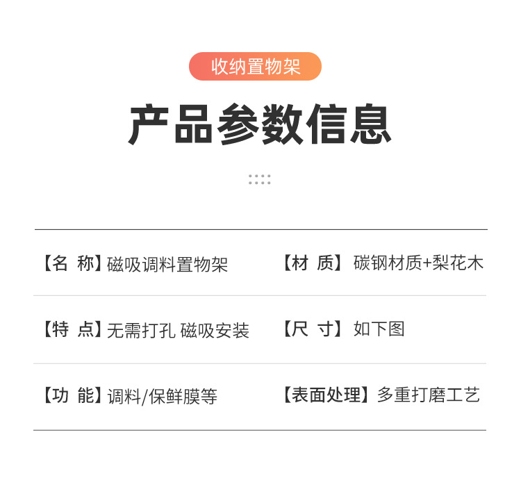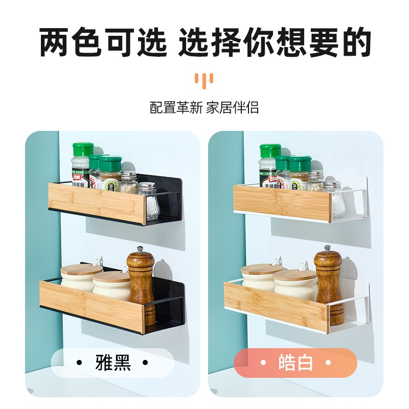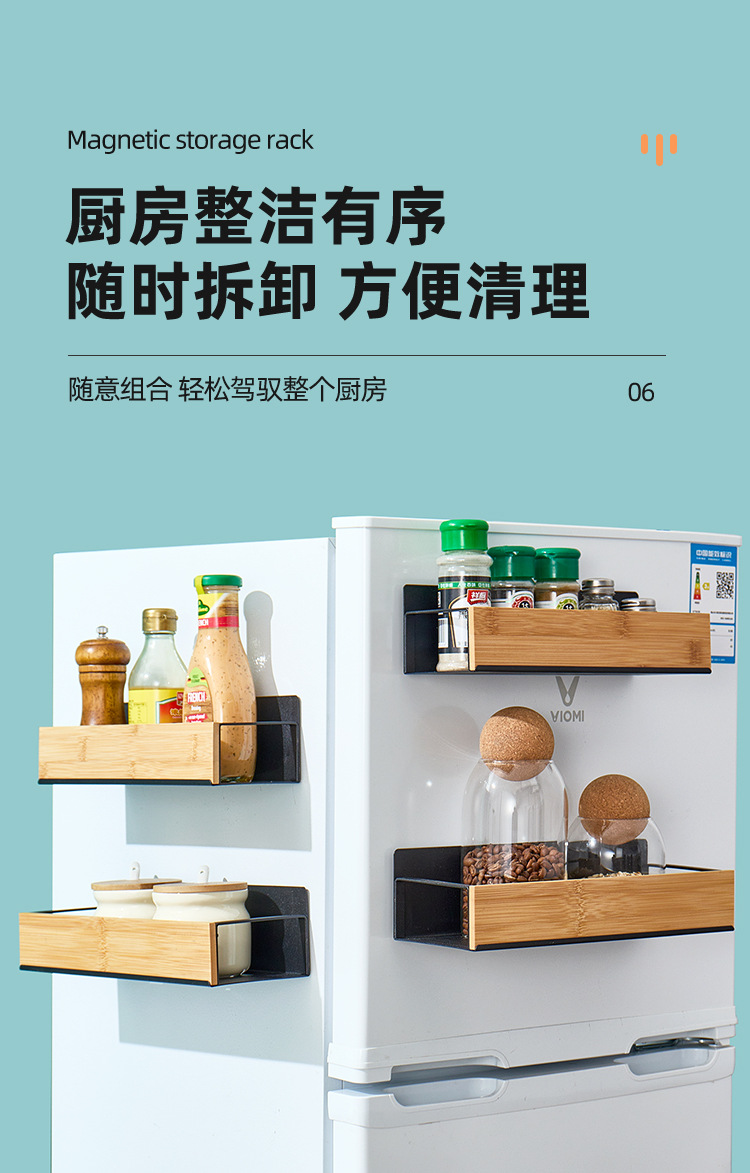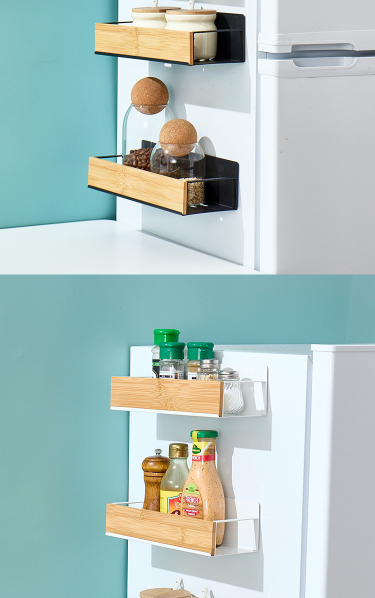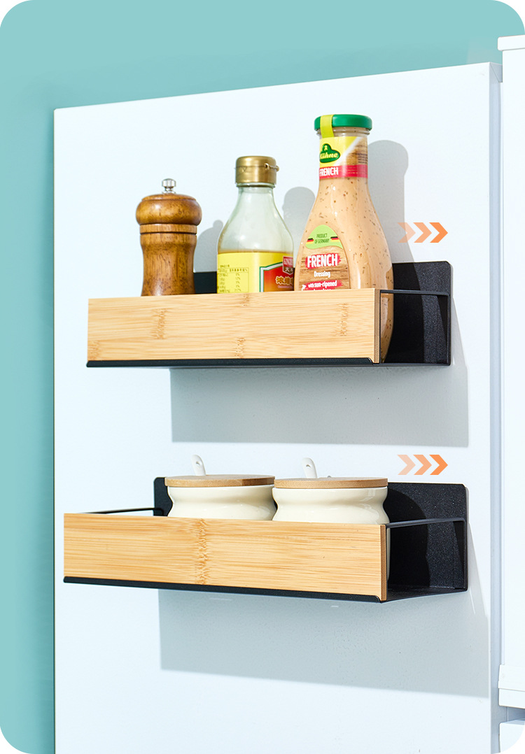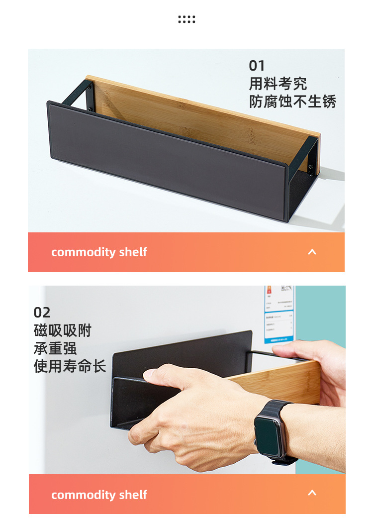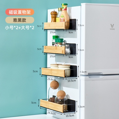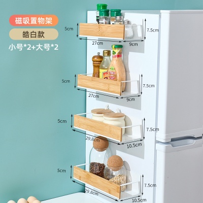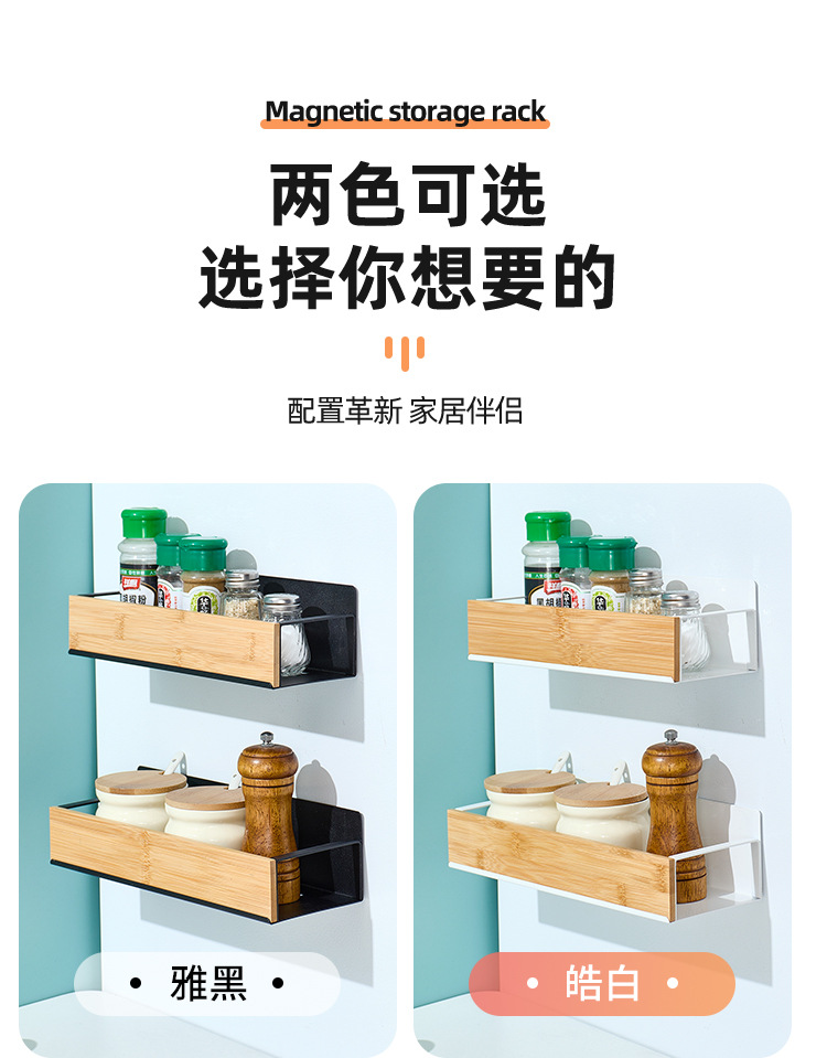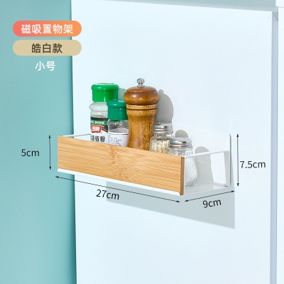商品名稱:跨境厨房壁挂式竹木置物架磁吸式冰箱架侧挂收纳架免打孔调料架盒
