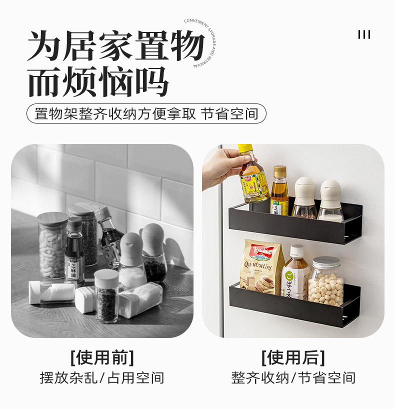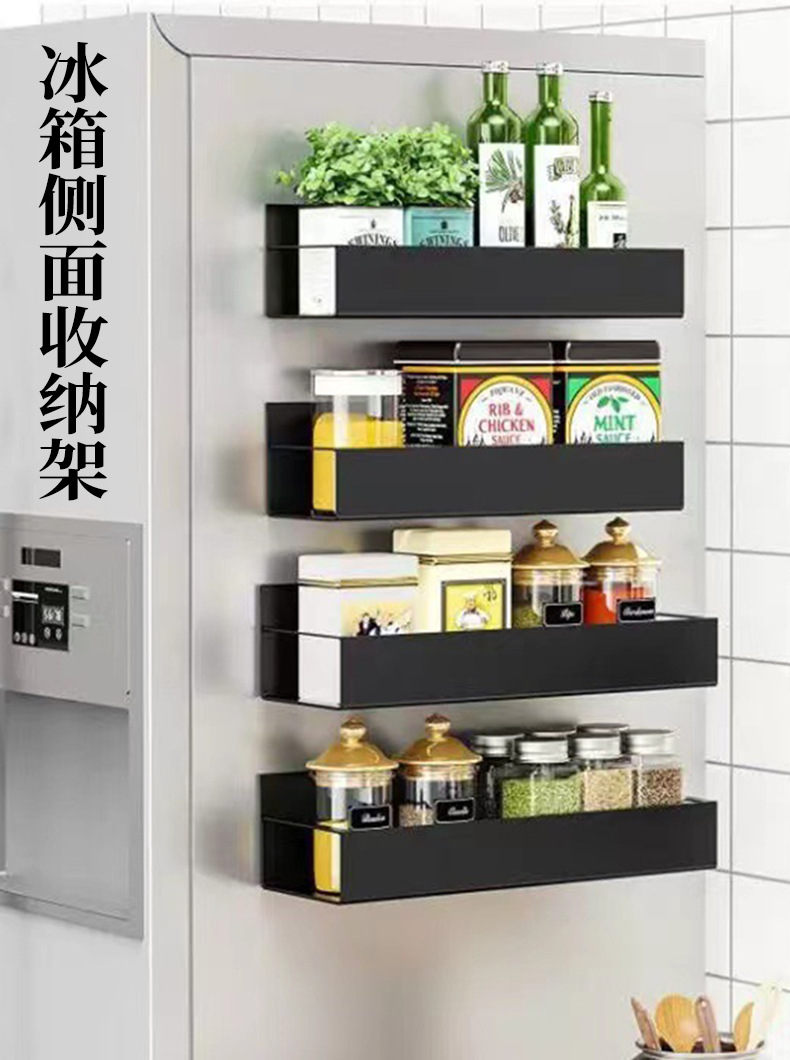跨境爆款冰箱收纳架厨房用品磁吸置物架免打孔侧面微波炉烤箱挂架