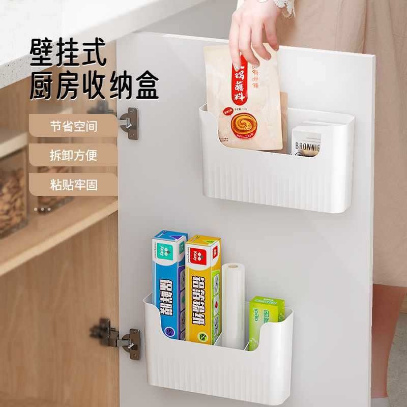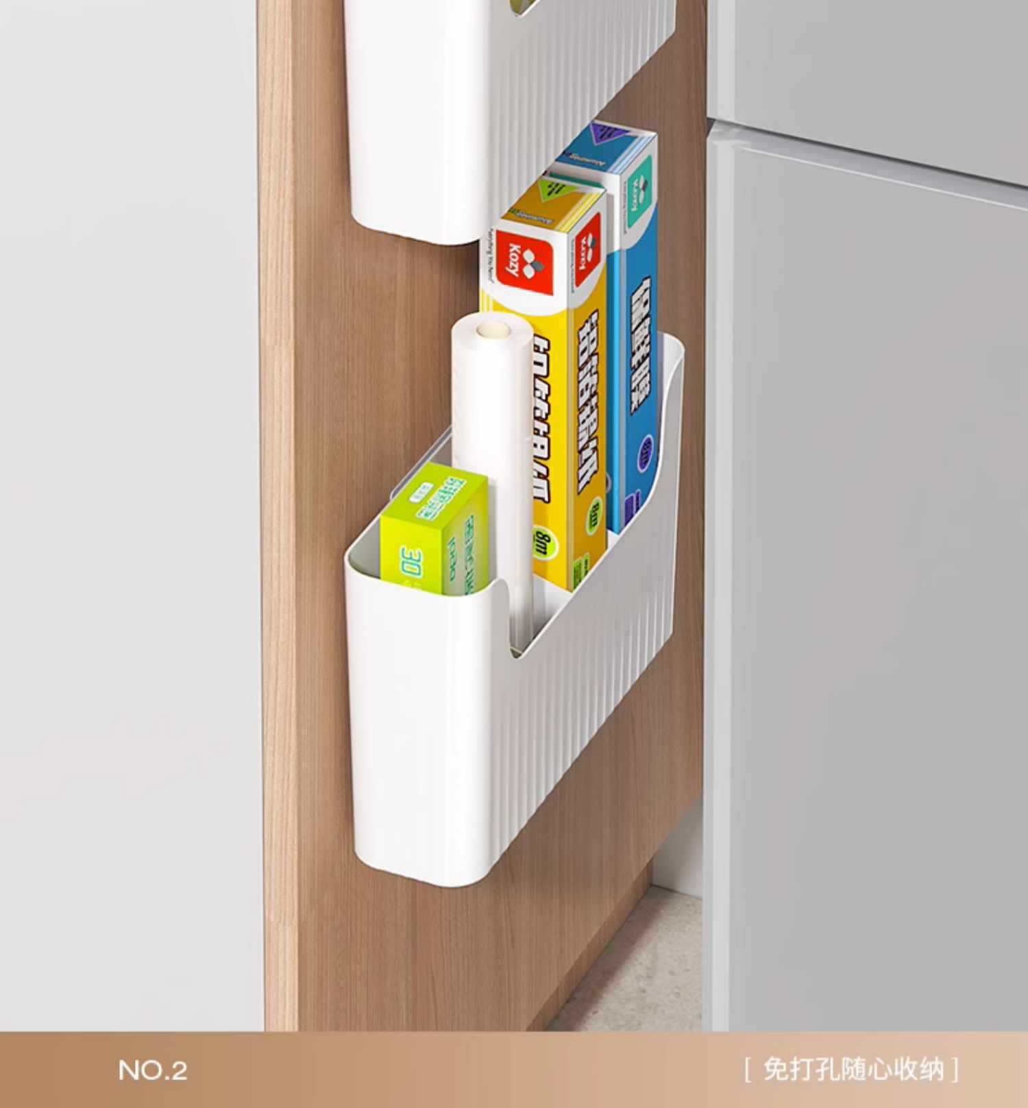 商品名稱:厨房柜门保鲜膜收纳架收纳盒壁挂式橱柜门内侧冰箱置物架侧收纳