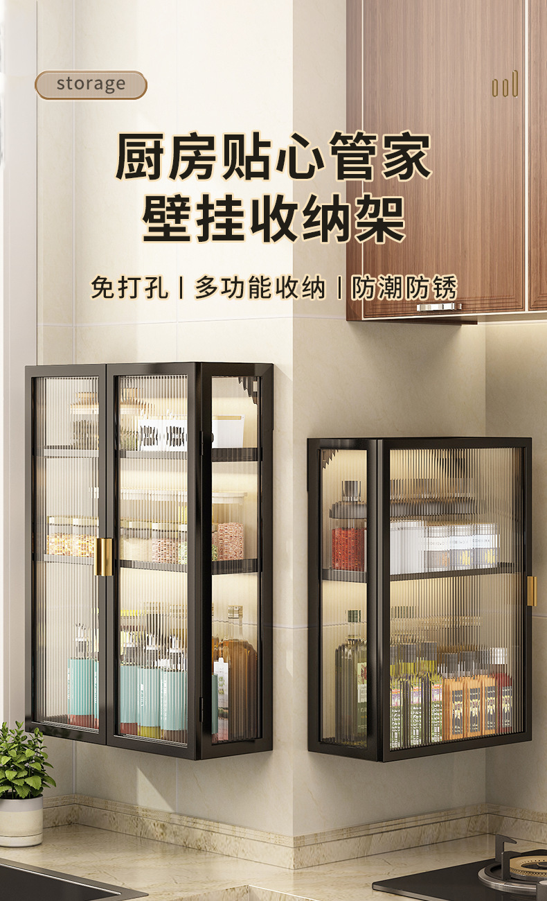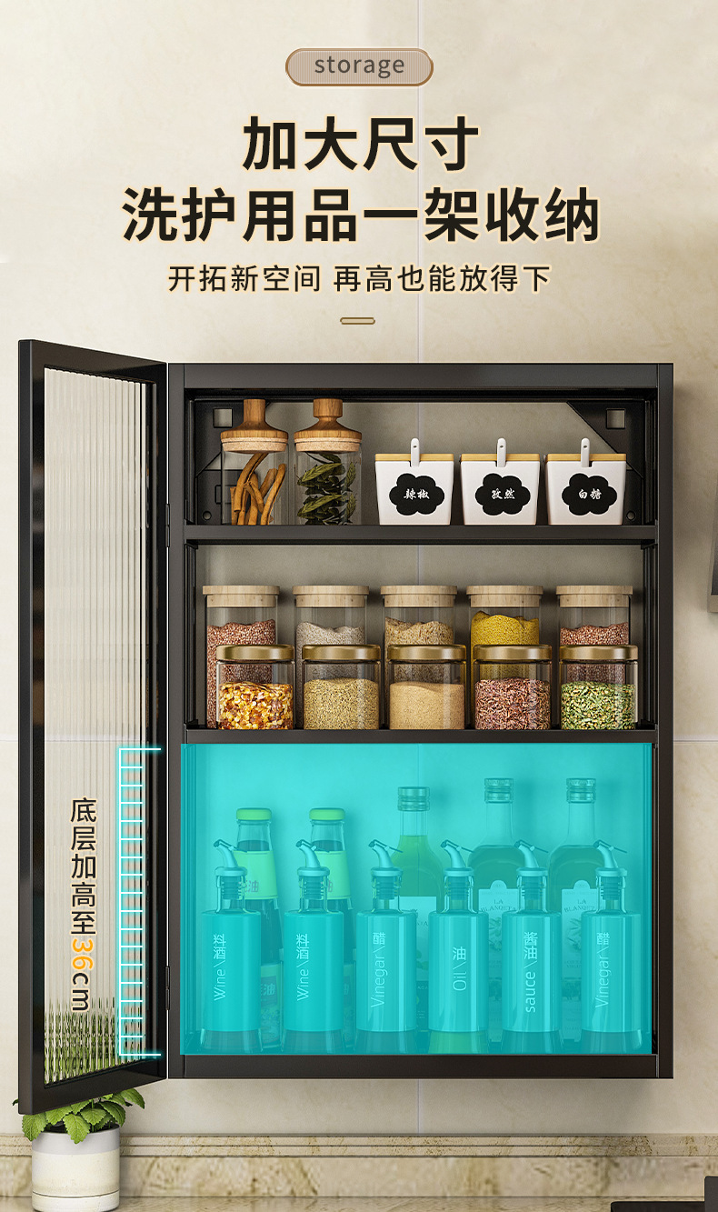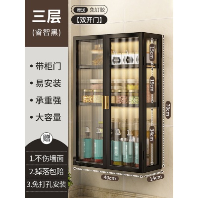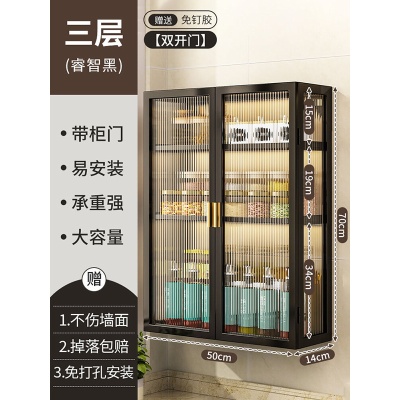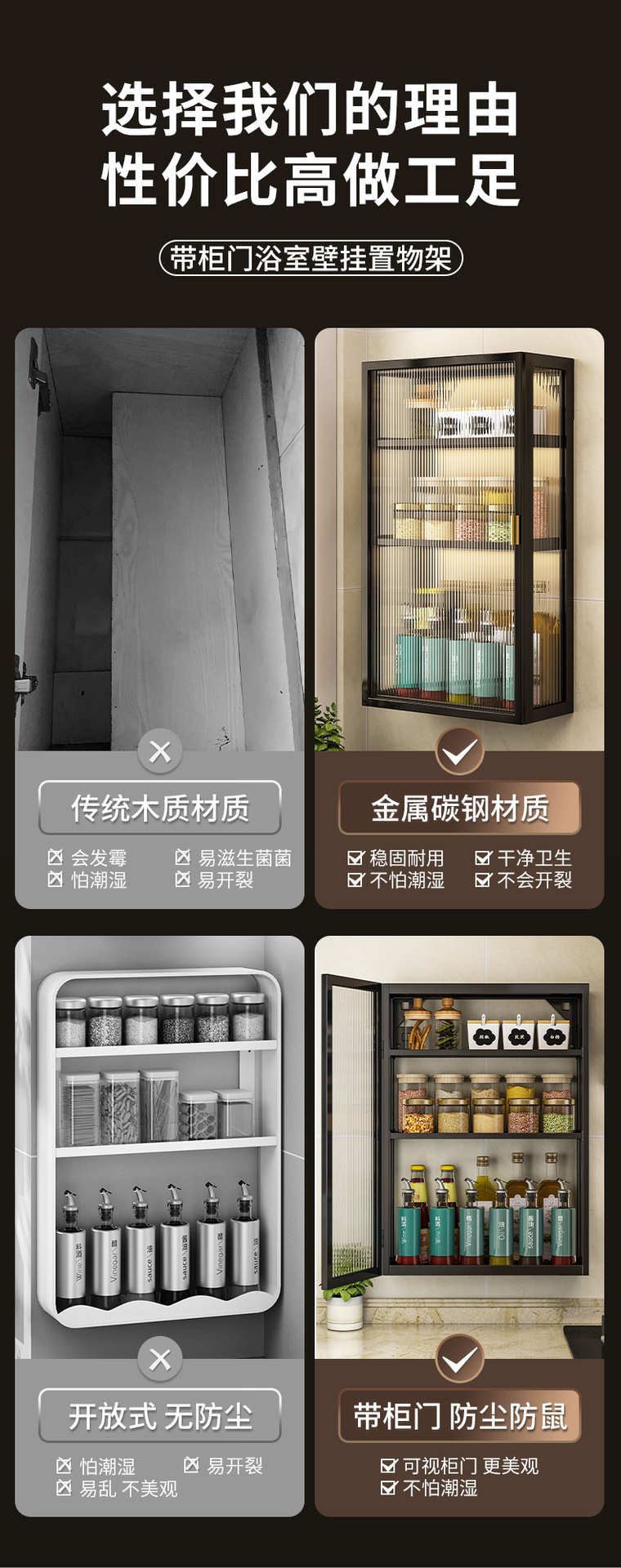 厨房壁挂收纳架浴室免打孔碳钢收纳神器多功能家用调味瓶置物架