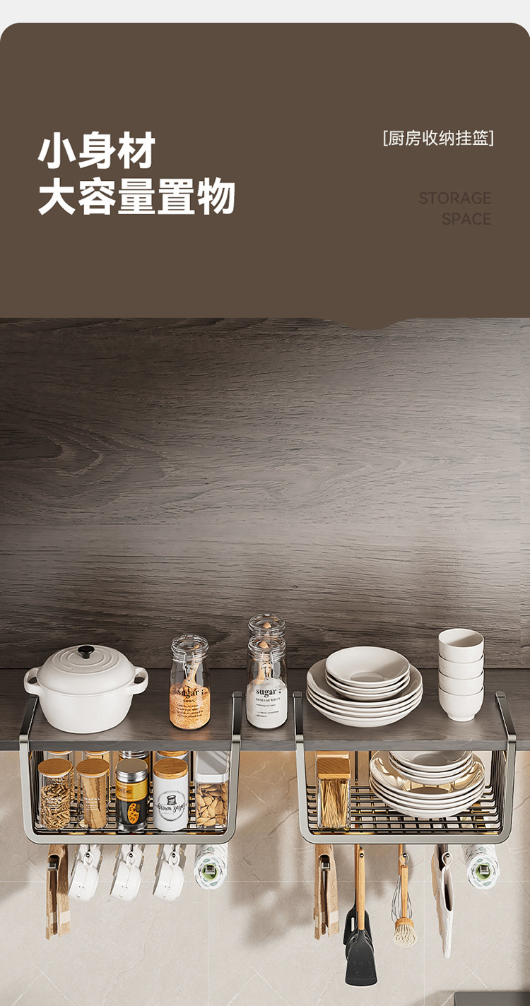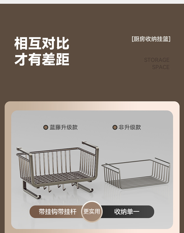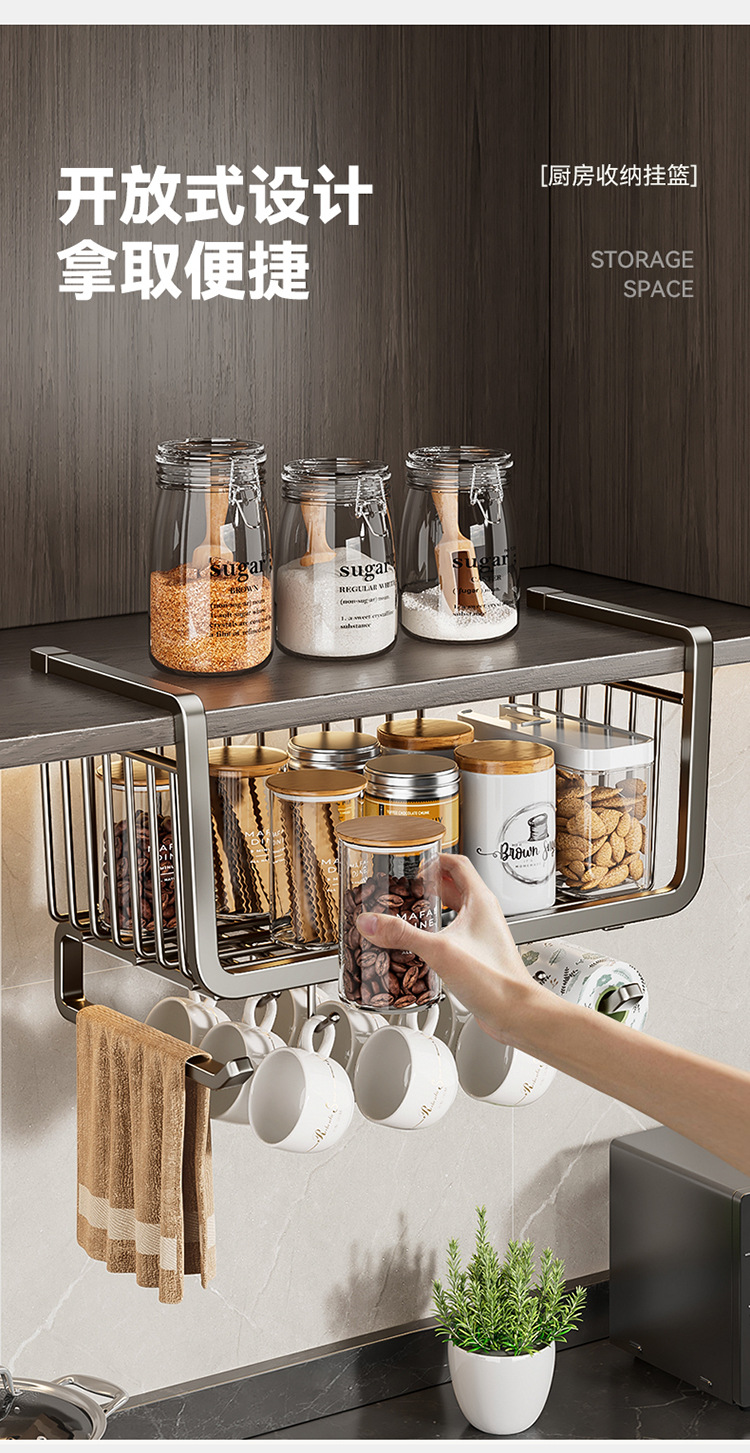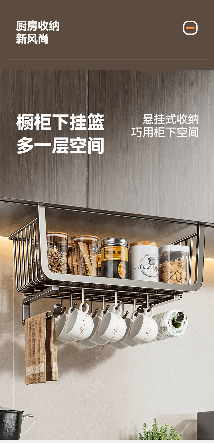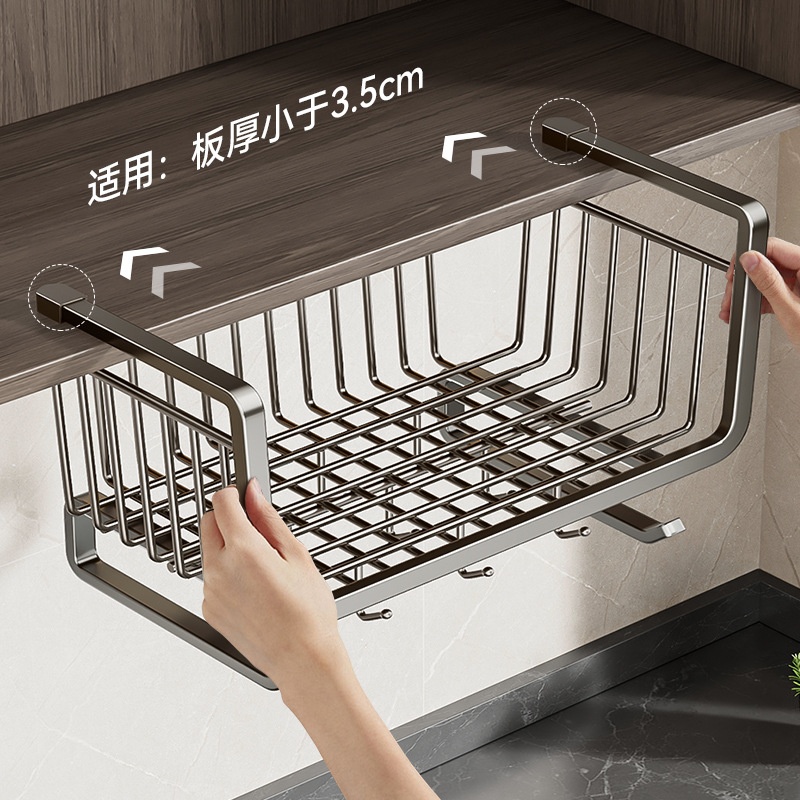 蓝藤厨房置物架收纳悬挂分层挂篮免打孔橱柜内吊柜下挂篮挂架
