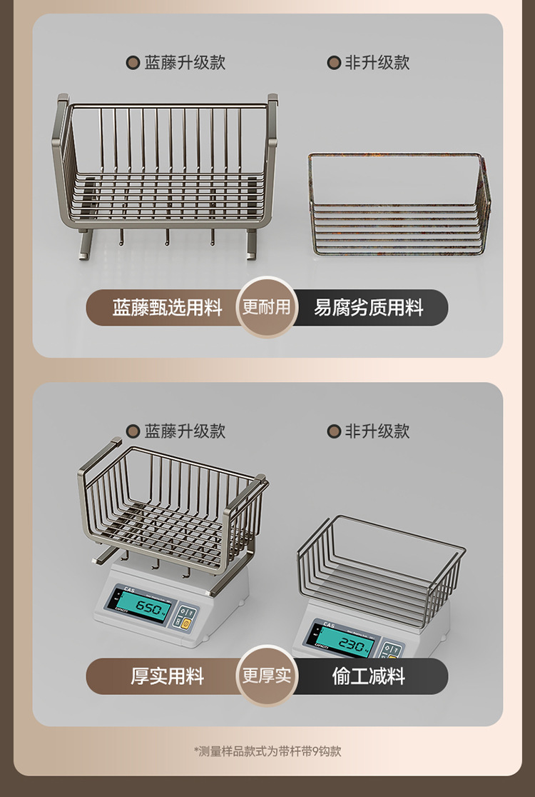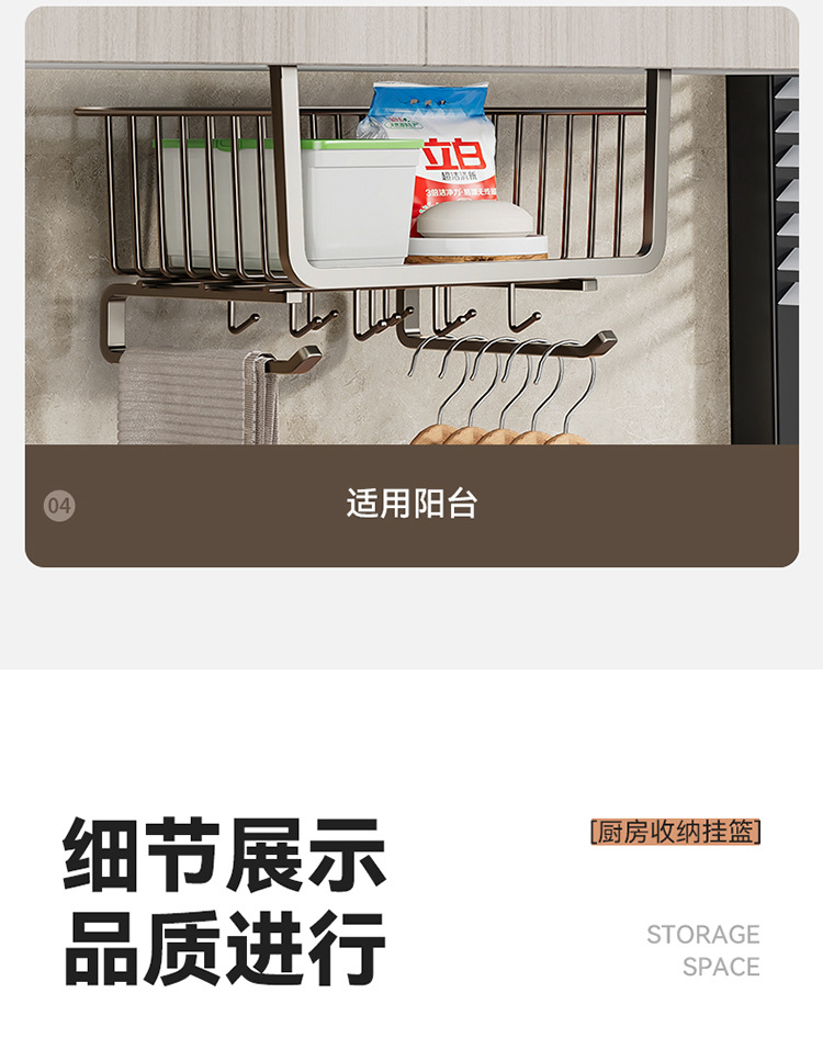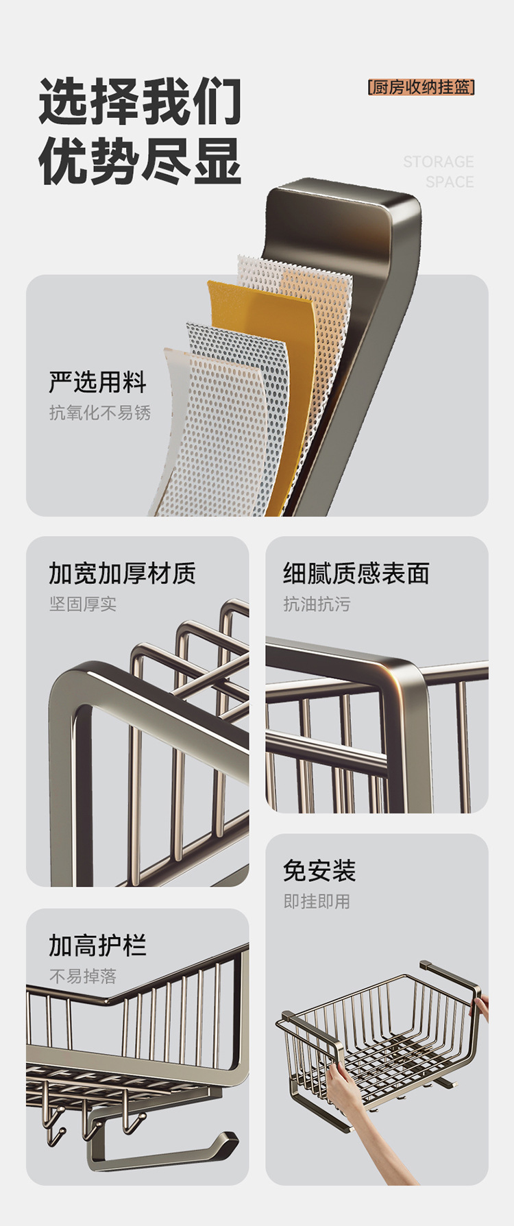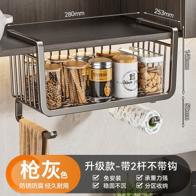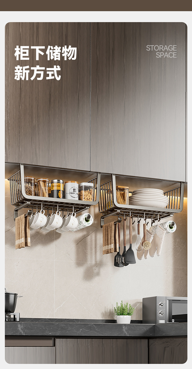 蓝藤厨房置物架收纳悬挂分层挂篮免打孔橱柜内吊柜下挂篮挂架