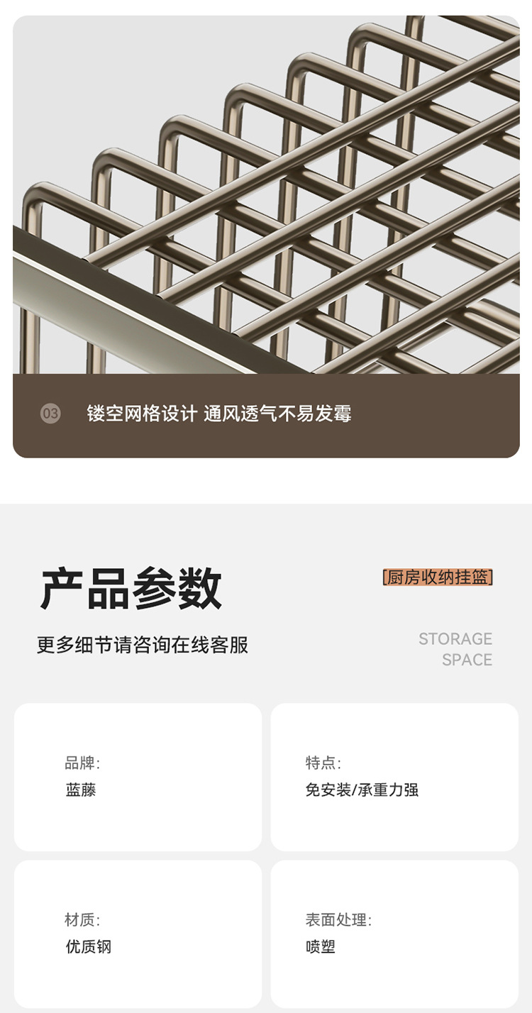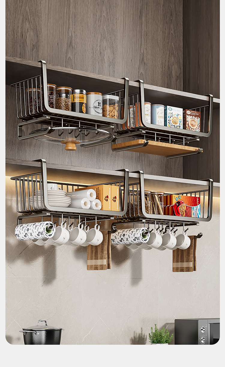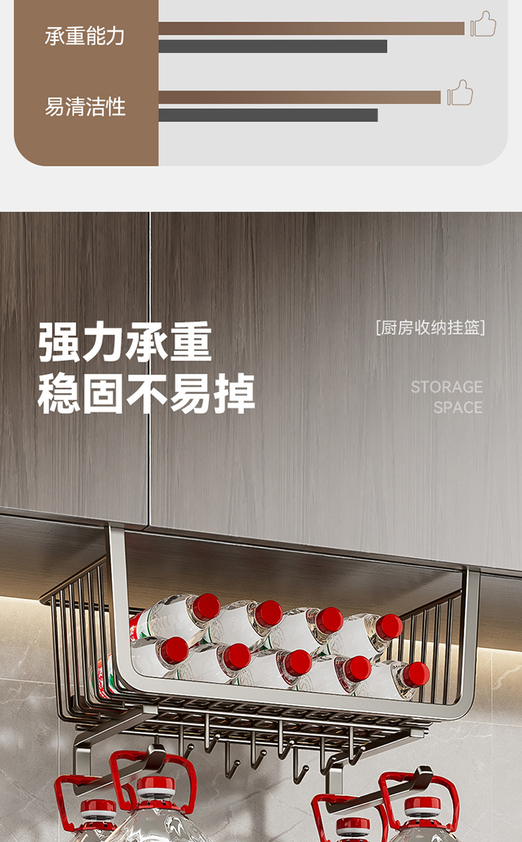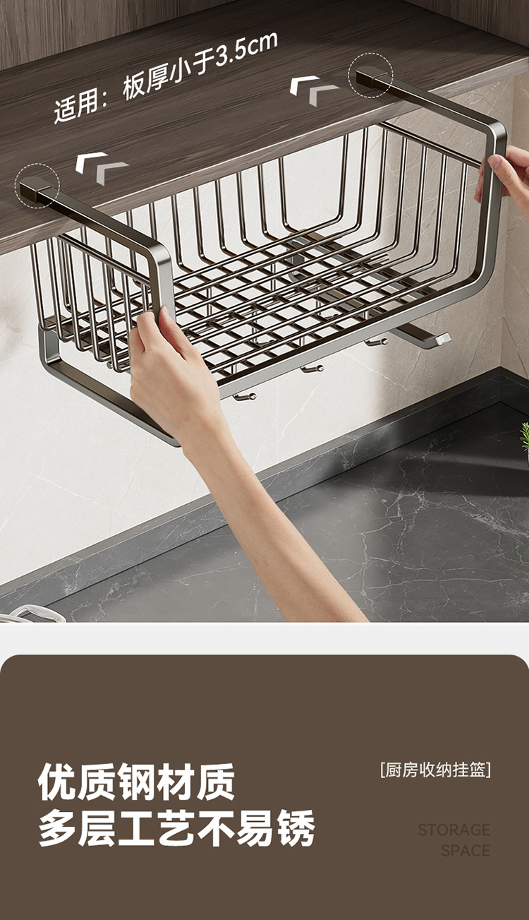 商品名稱:蓝藤厨房置物架收纳悬挂分层挂篮免打孔橱柜内吊柜下挂篮挂架