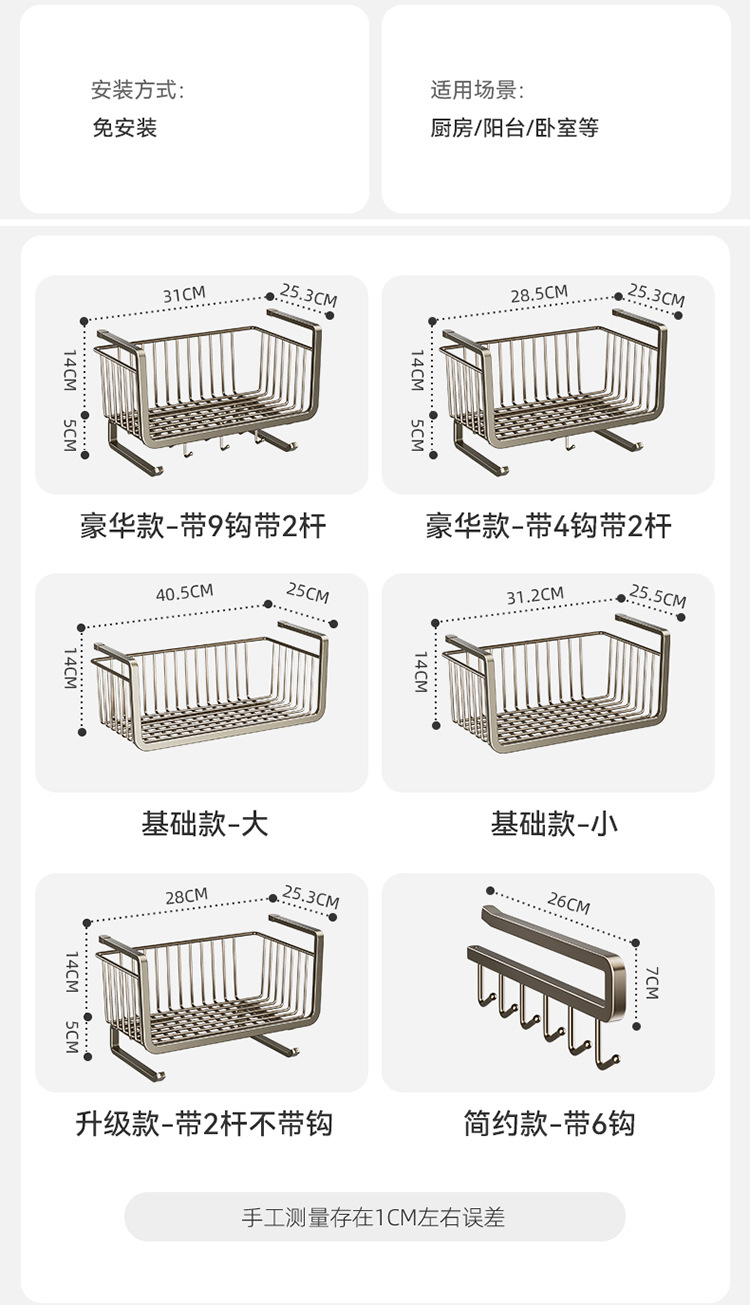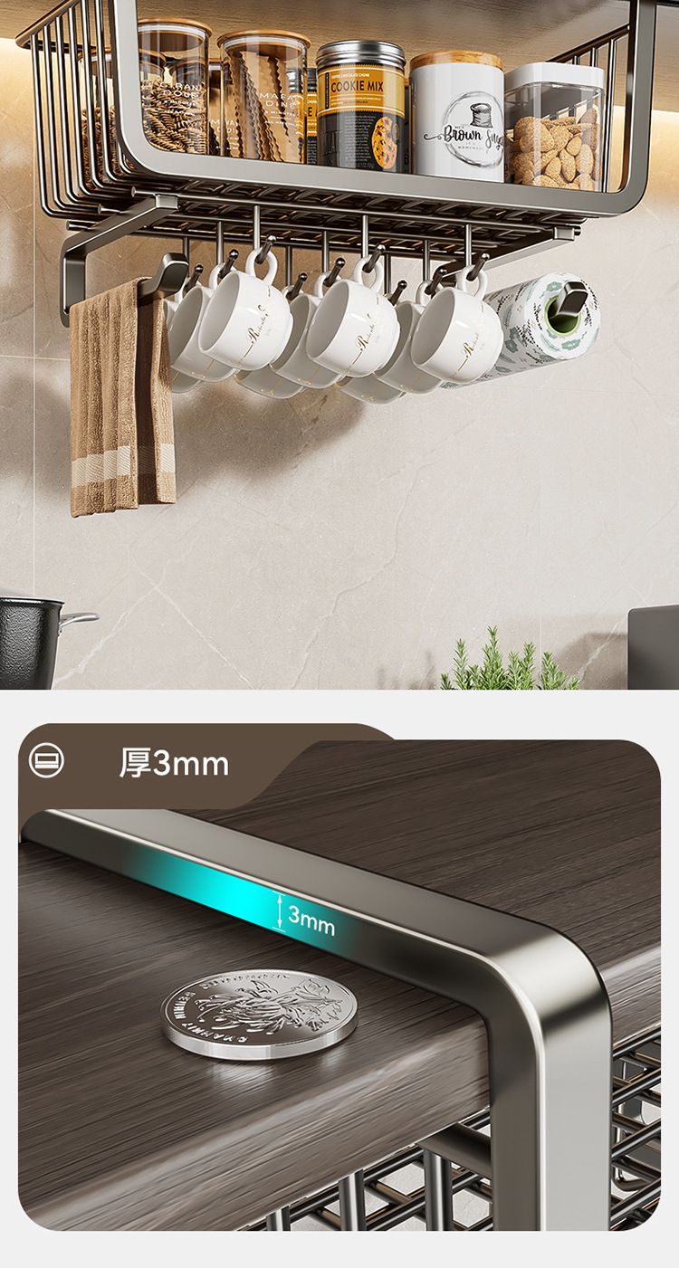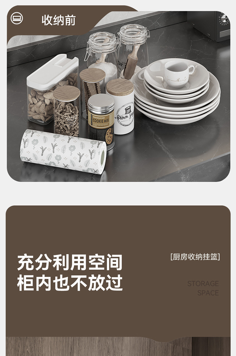 商品名稱:蓝藤厨房置物架收纳悬挂分层挂篮免打孔橱柜内吊柜下挂篮挂架