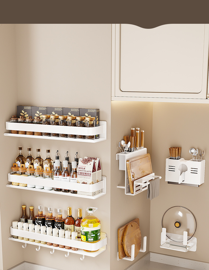 商品名稱:厨房置物架调味料品罐收纳架子墙上免打孔壁挂式家用多功能佐料架