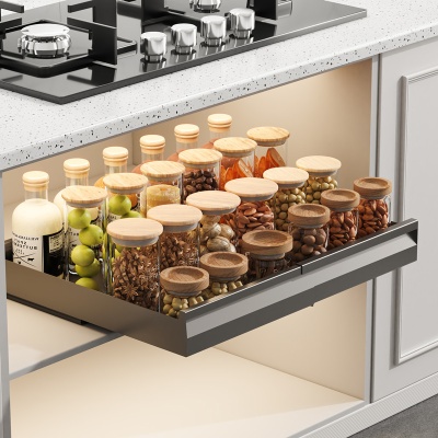 - 商品名稱:厨房可伸缩收纳架免打孔抽屉式橱柜碗碟调料拉篮下水槽抽拉置物架