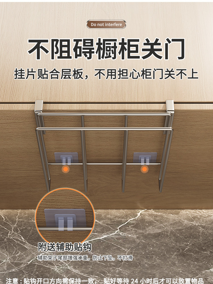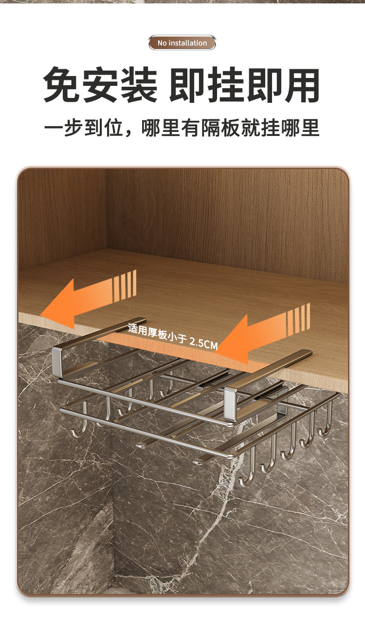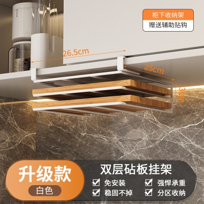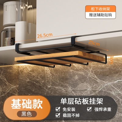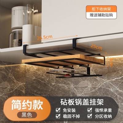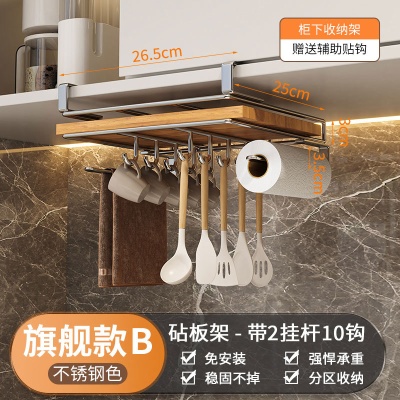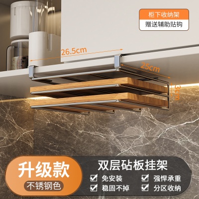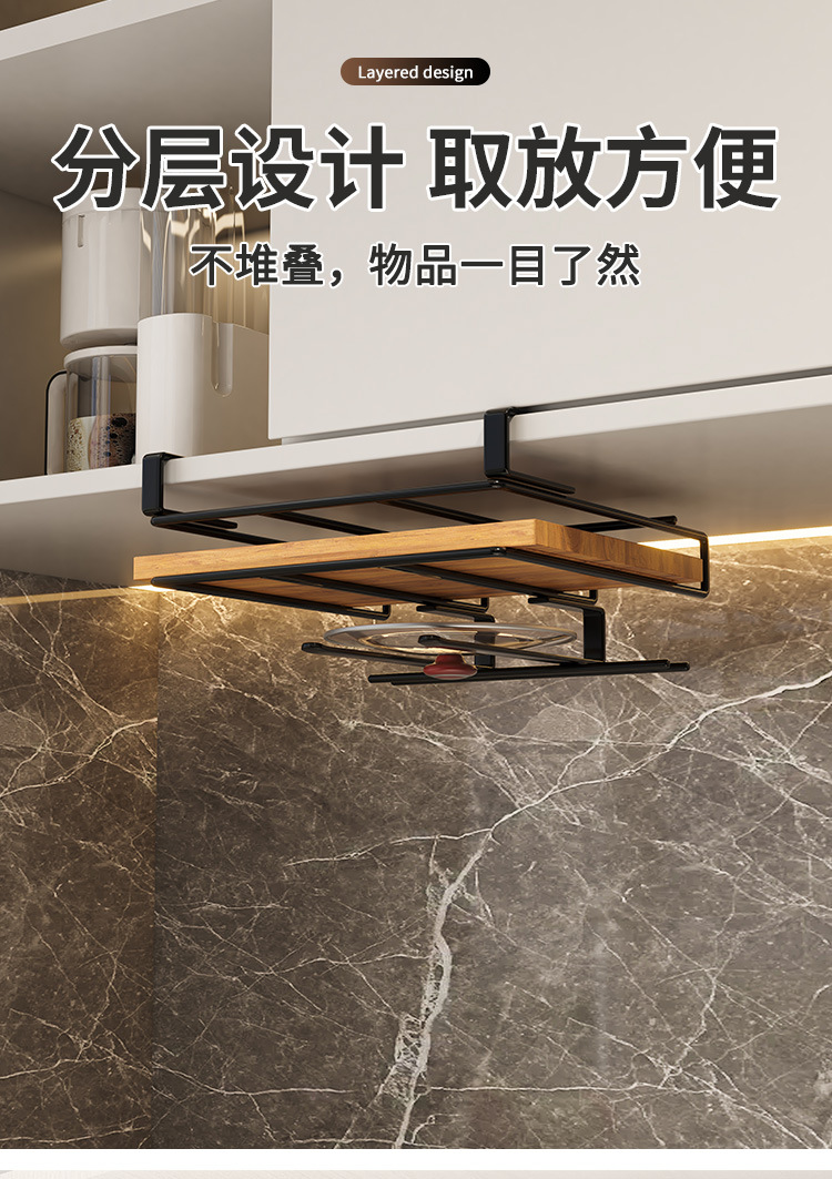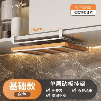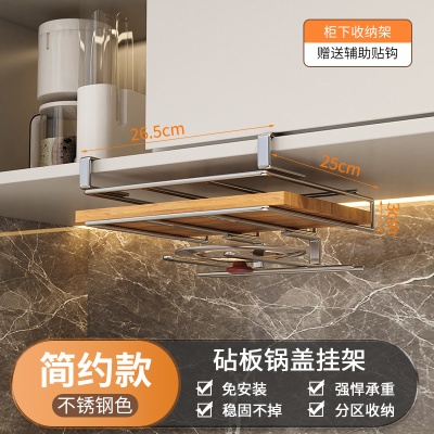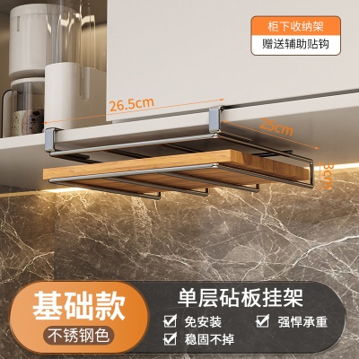 免打孔厨房置物架橱柜吊柜下挂架不锈钢砧板架锅盖纸巾菜板收纳架