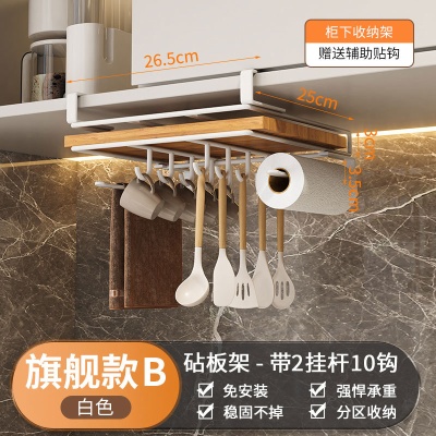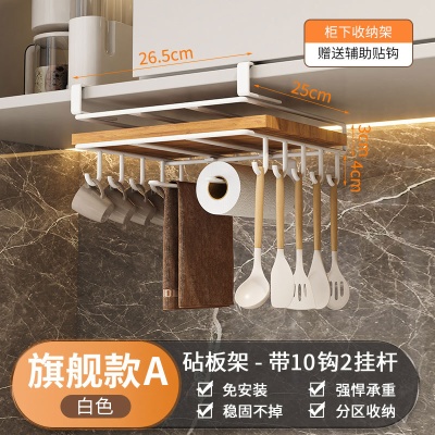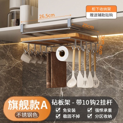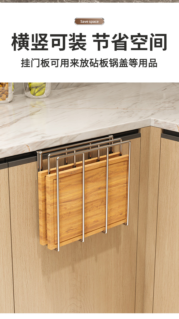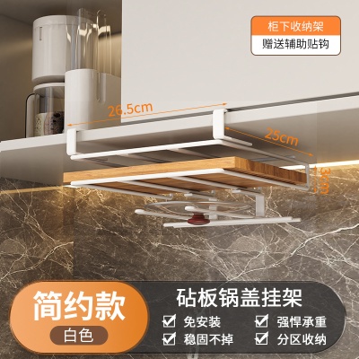 商品名稱:免打孔厨房置物架橱柜吊柜下挂架不锈钢砧板架锅盖纸巾菜板收纳架