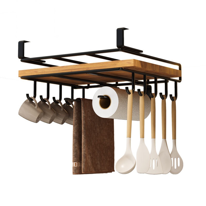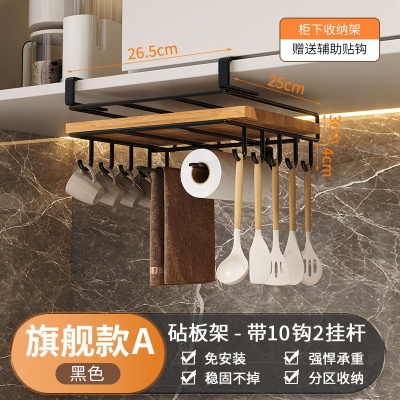(黑色)双层砧板架+保鲜膜架+挂钩中间