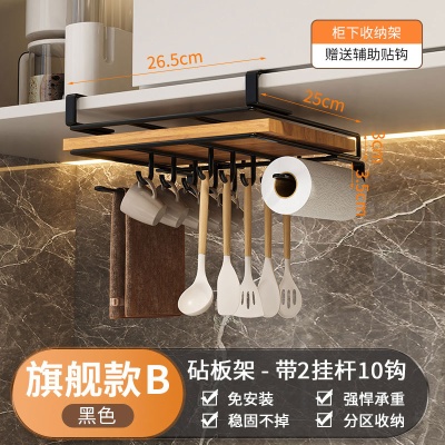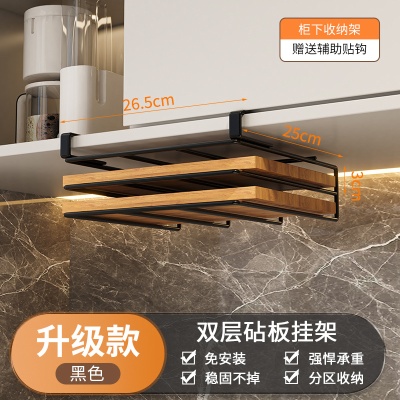 (黑色)双层砧板架+保鲜膜架+挂钩两边