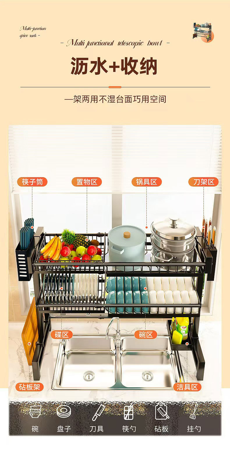 商品名稱:厨房水槽置物架上方碗架沥水架水池放碗盘架水龙头放碗碟收纳架