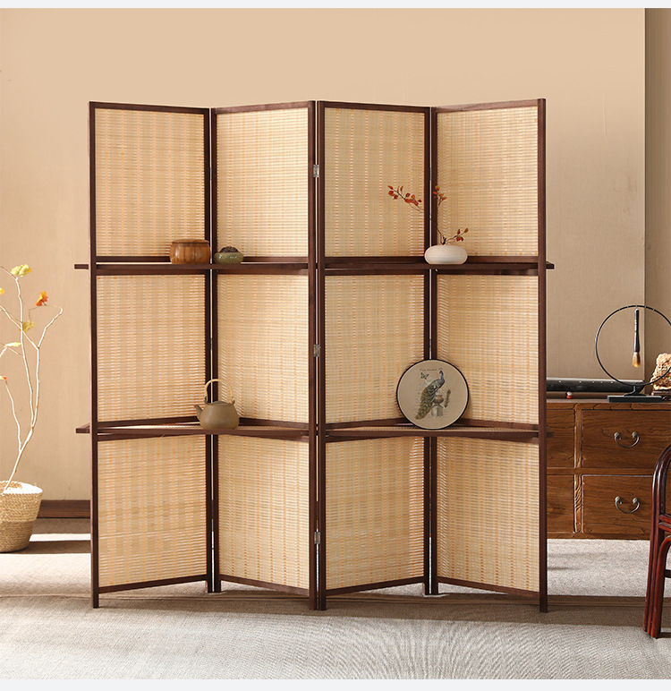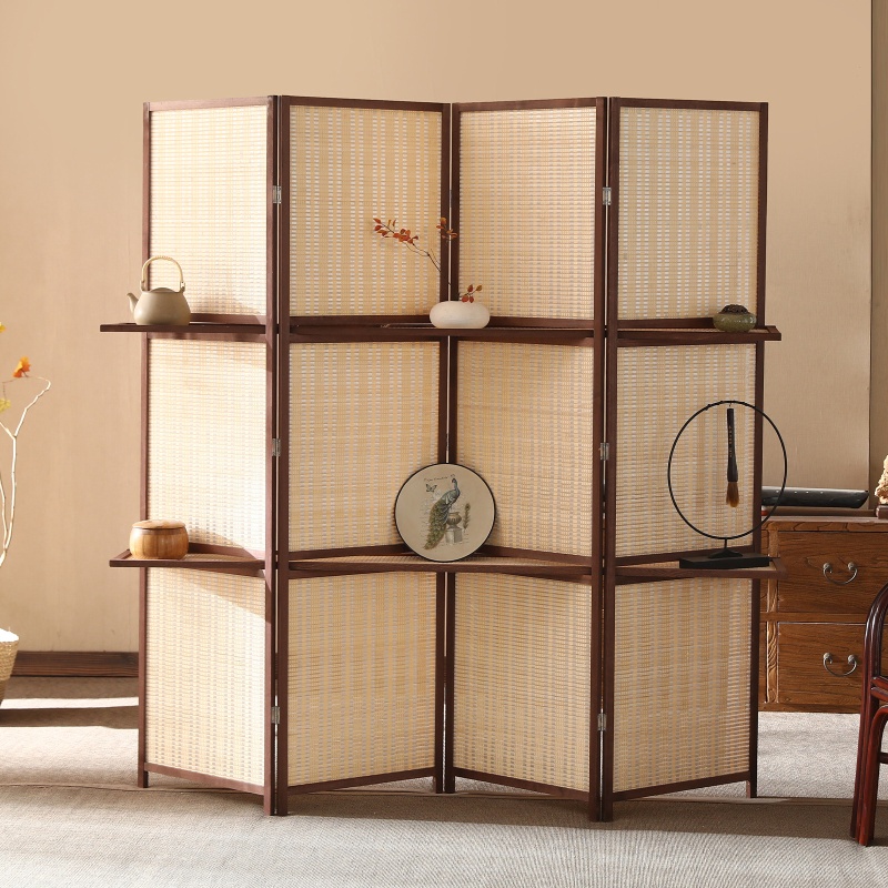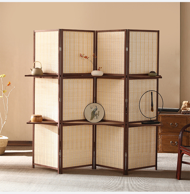 可置物隔板屏风批发松木楠竹编简约家居酒店办公室可移动折叠屏风