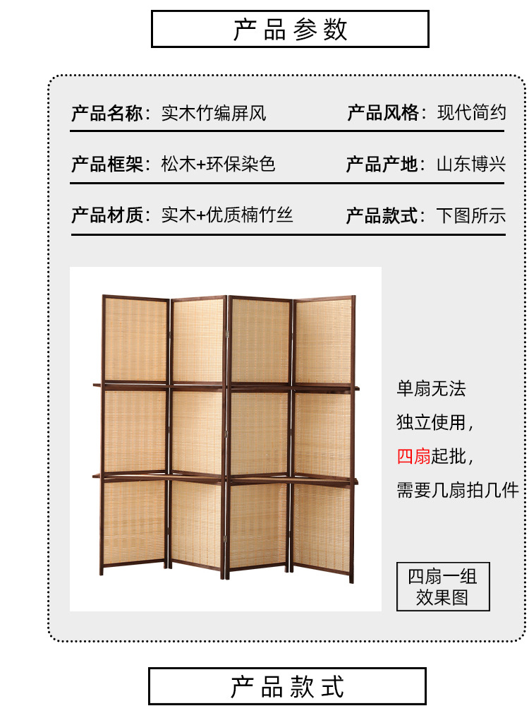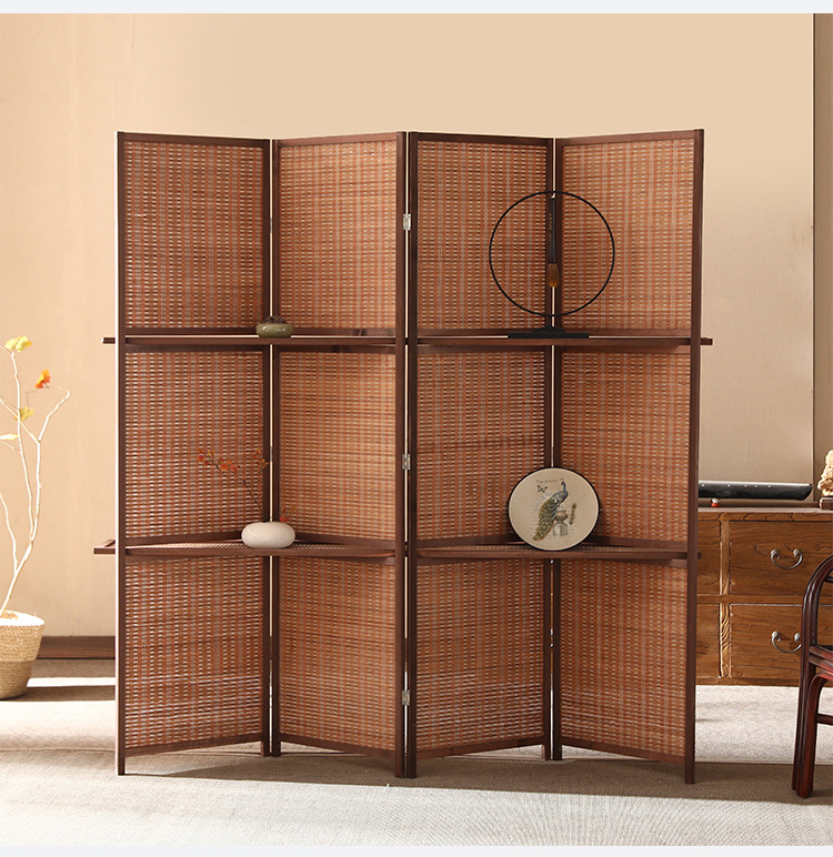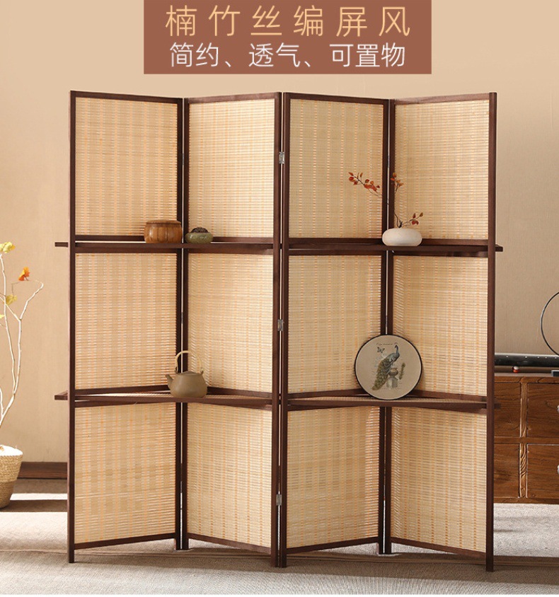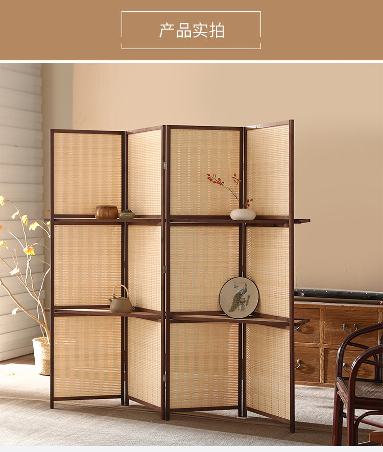 商品名稱:可置物隔板屏风批发松木楠竹编简约家居酒店办公室可移动折叠屏风