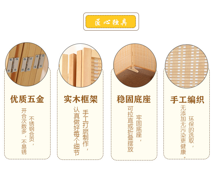 商品名稱:中式竹编屏风隔断墙客厅卧室折叠移动推拉折屏帘遮挡家用移动便捷