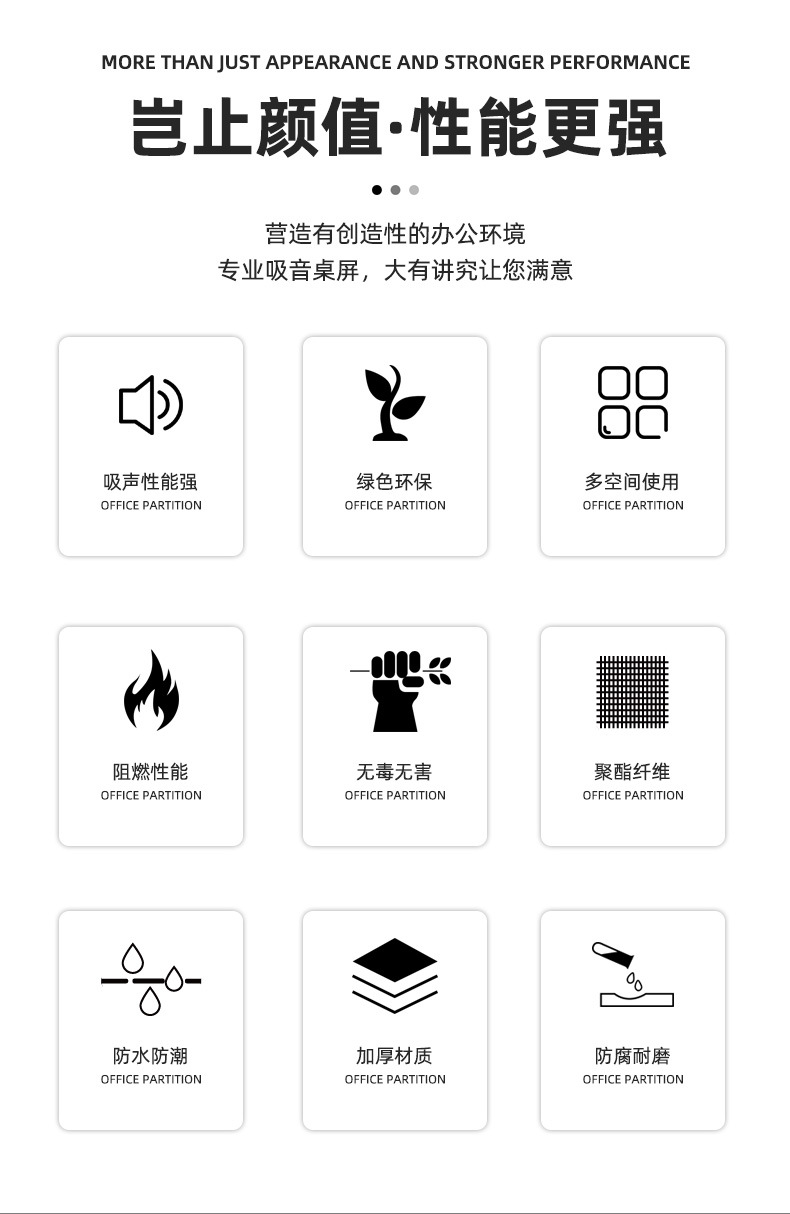 商品名稱:办公桌吸音屏风隔断桌上桌下挡板免打孔安装桌面隔板商业办公家具