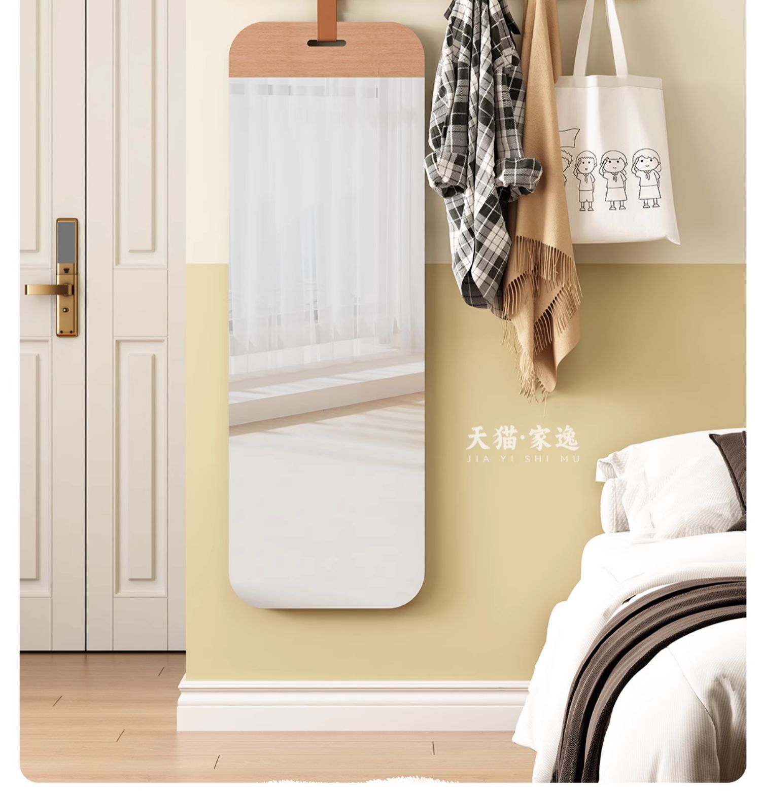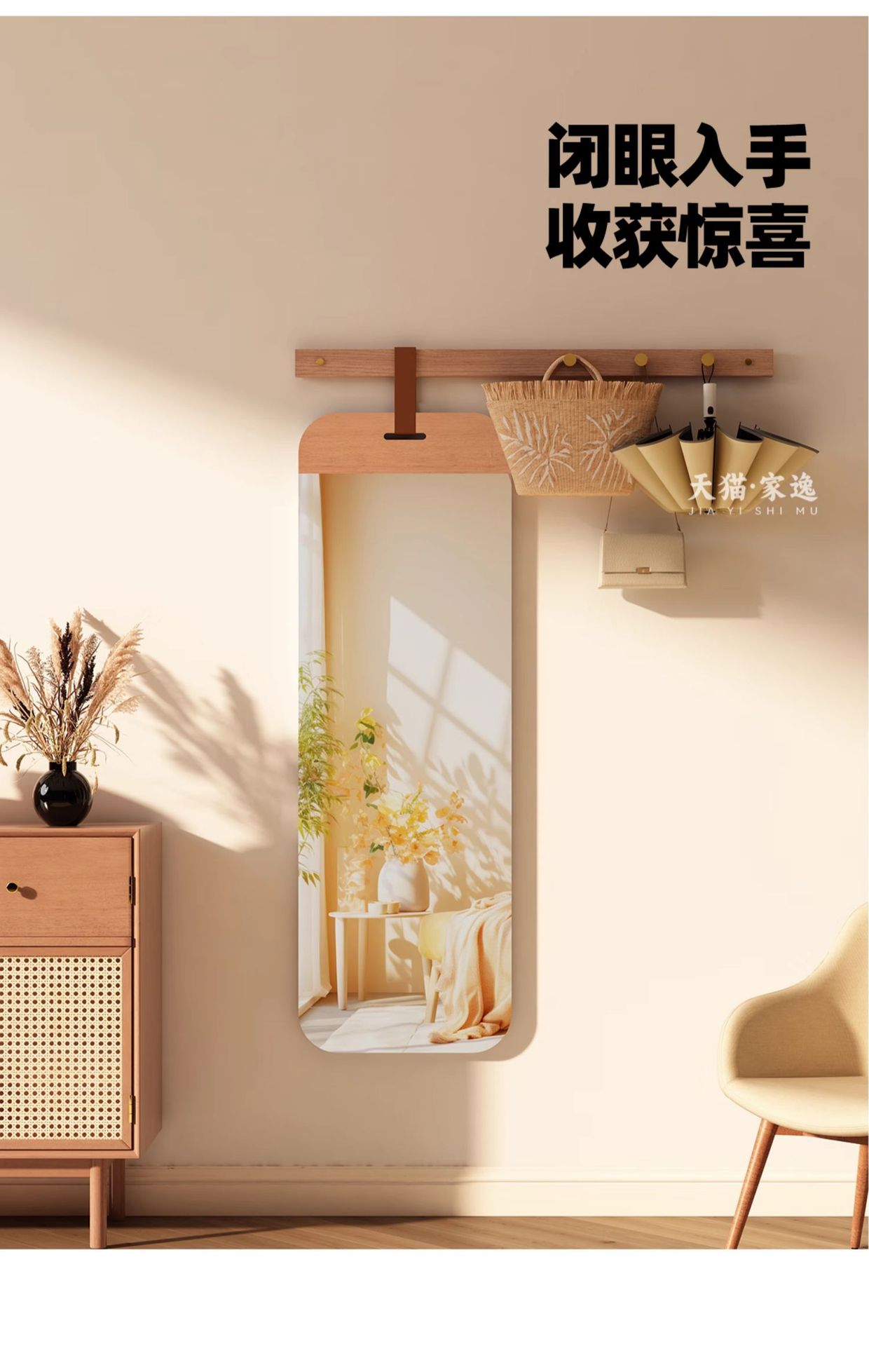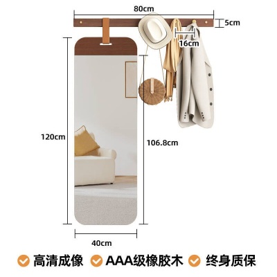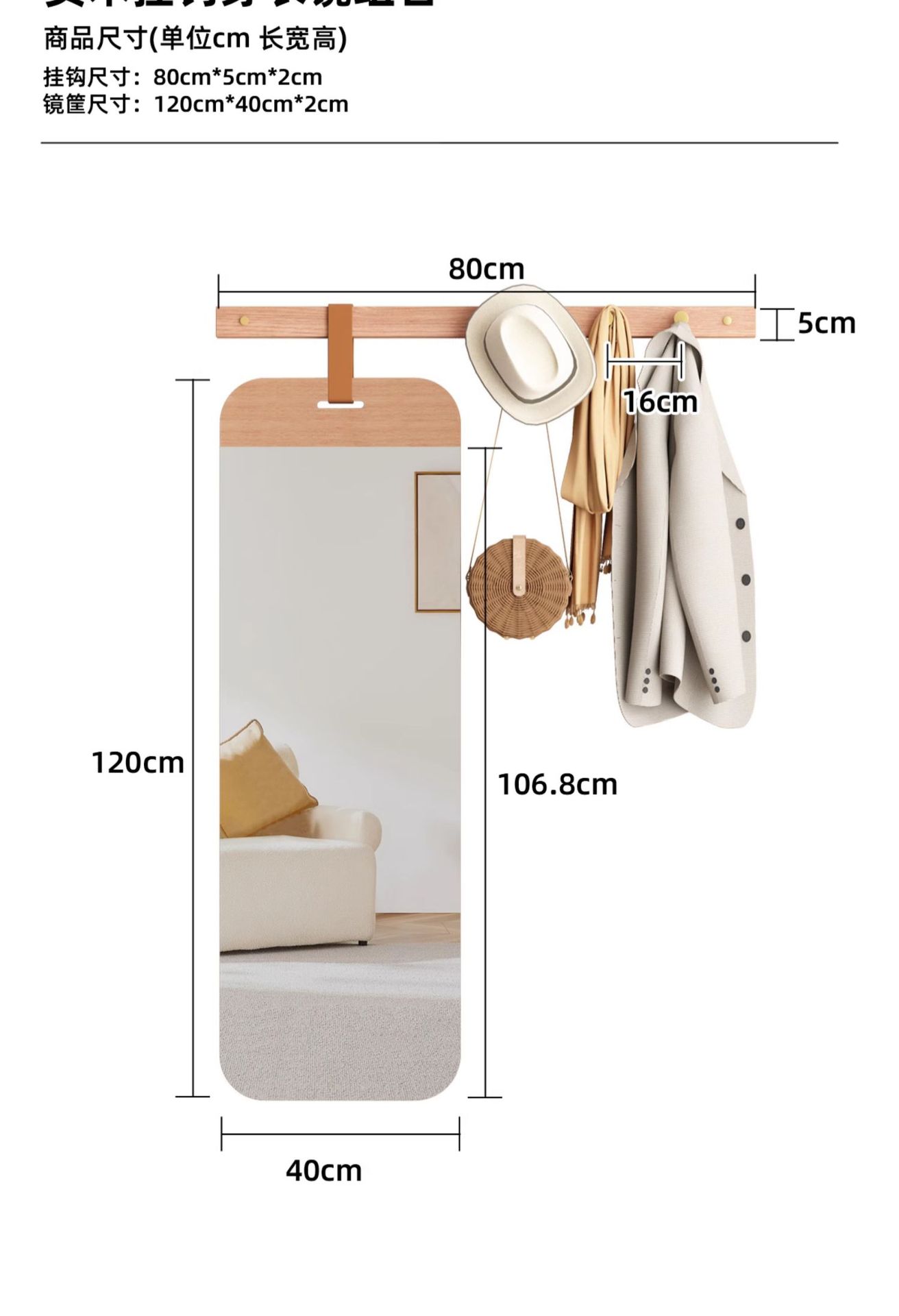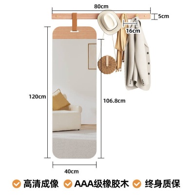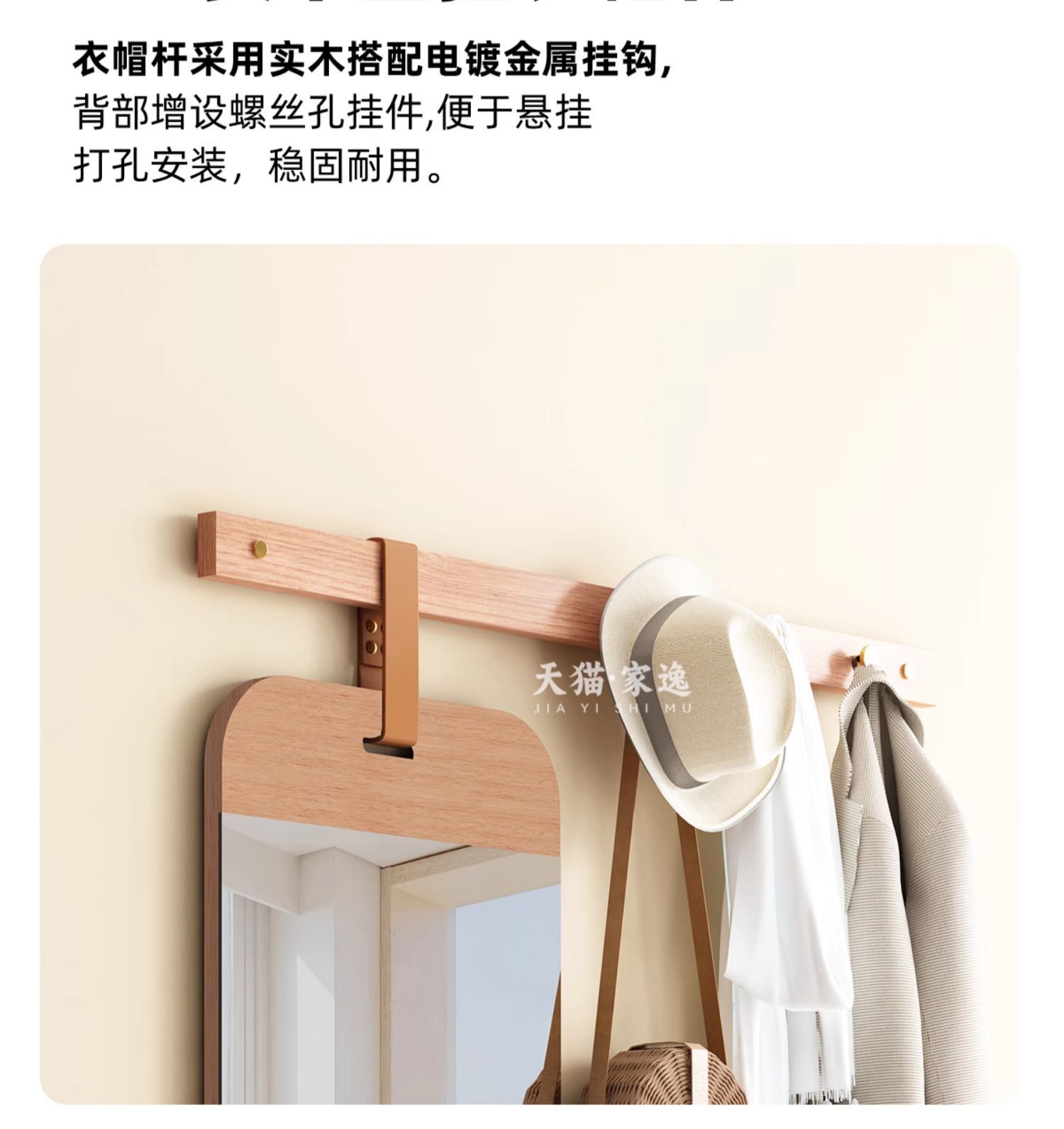 商品名稱:家逸实木壁挂穿衣镜贴墙全身镜女生卧室试衣服镜子挂衣架一体镜子