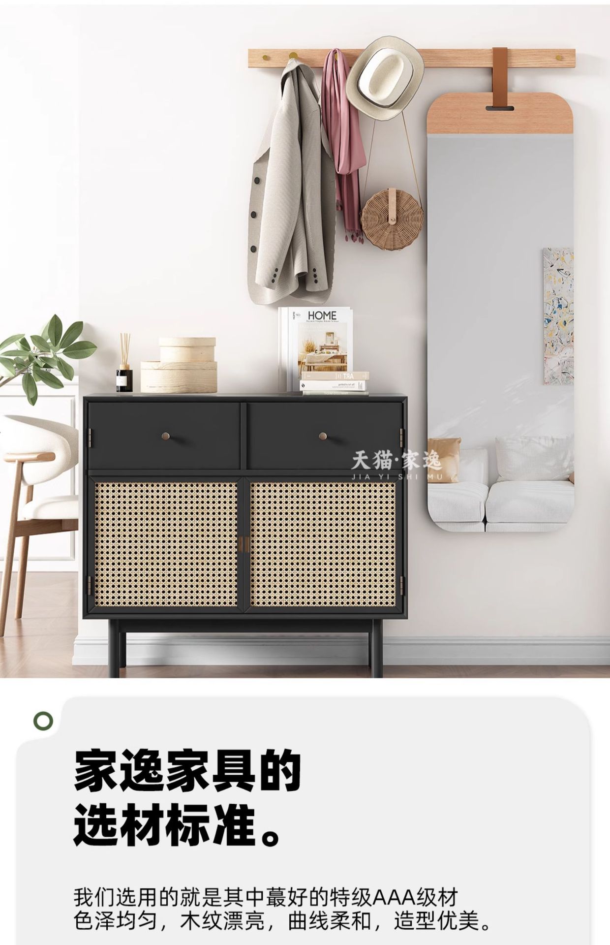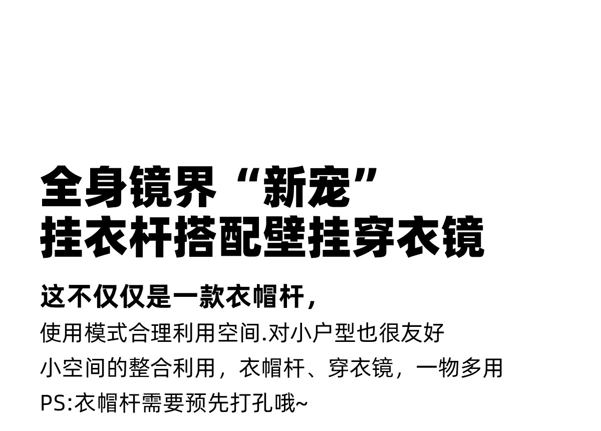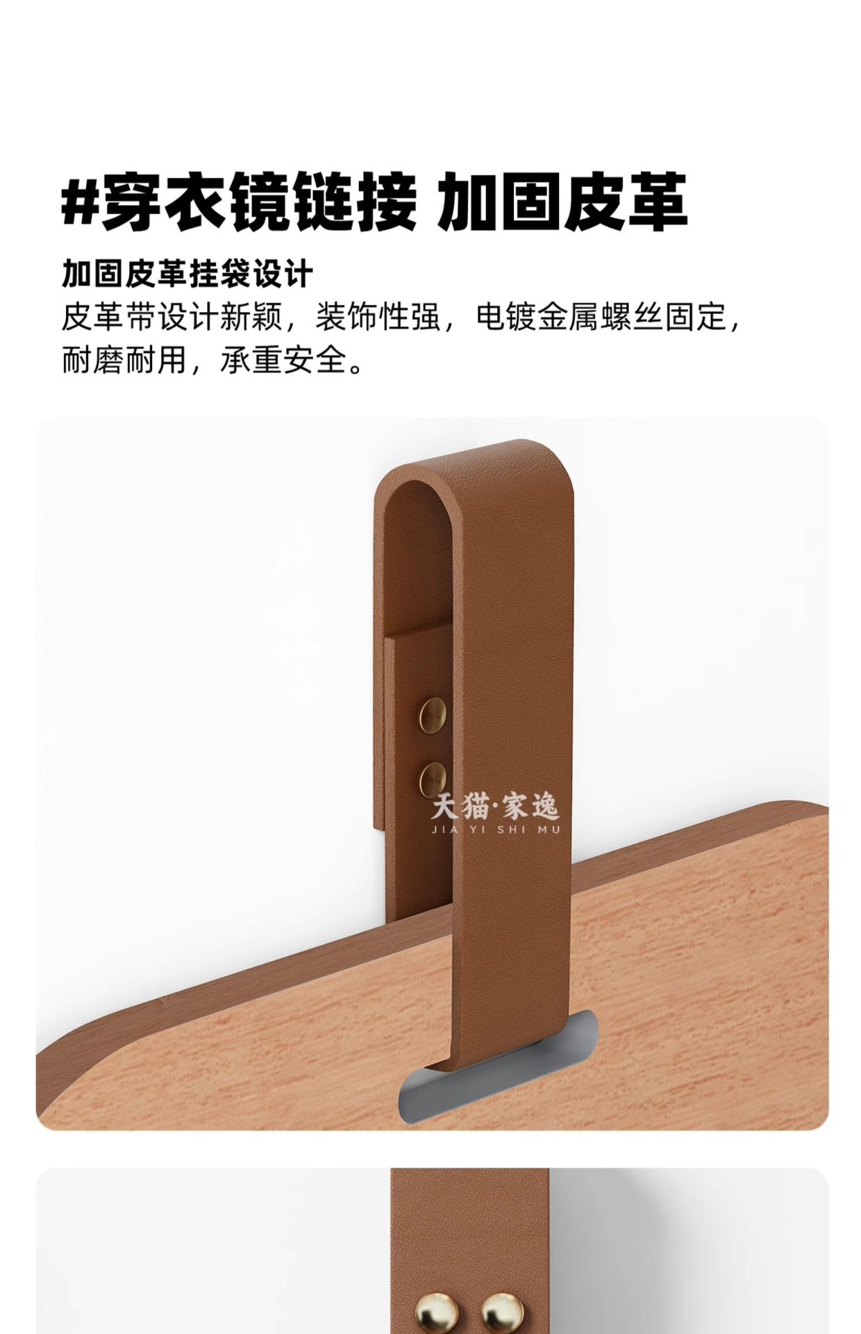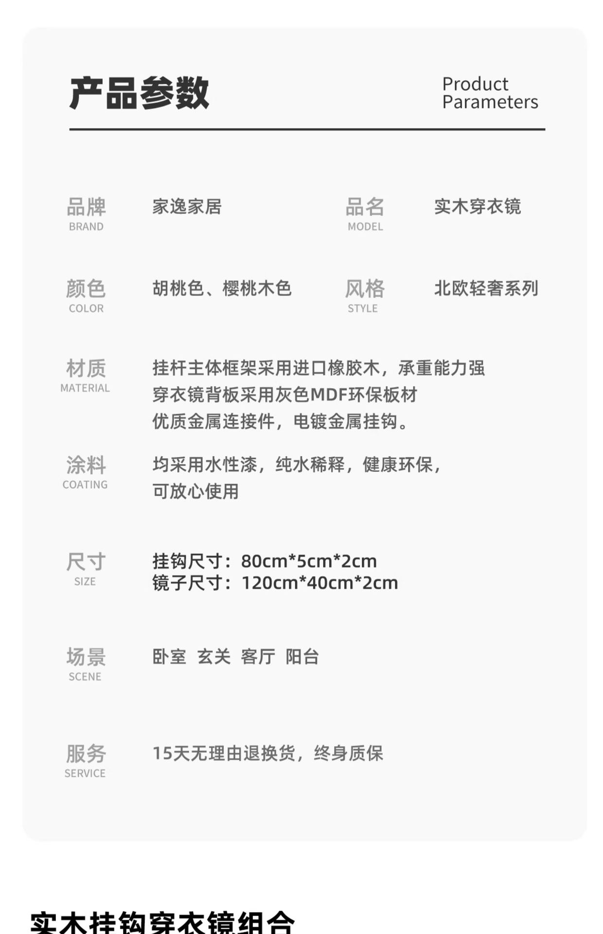 商品名稱:家逸实木壁挂穿衣镜贴墙全身镜女生卧室试衣服镜子挂衣架一体镜子