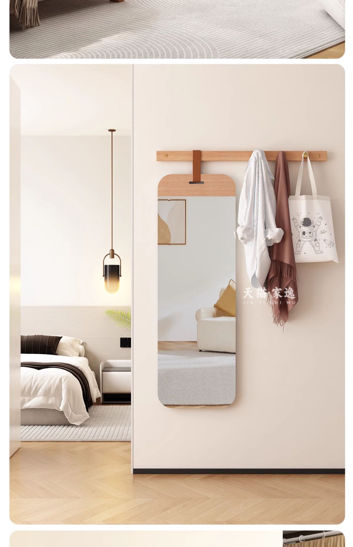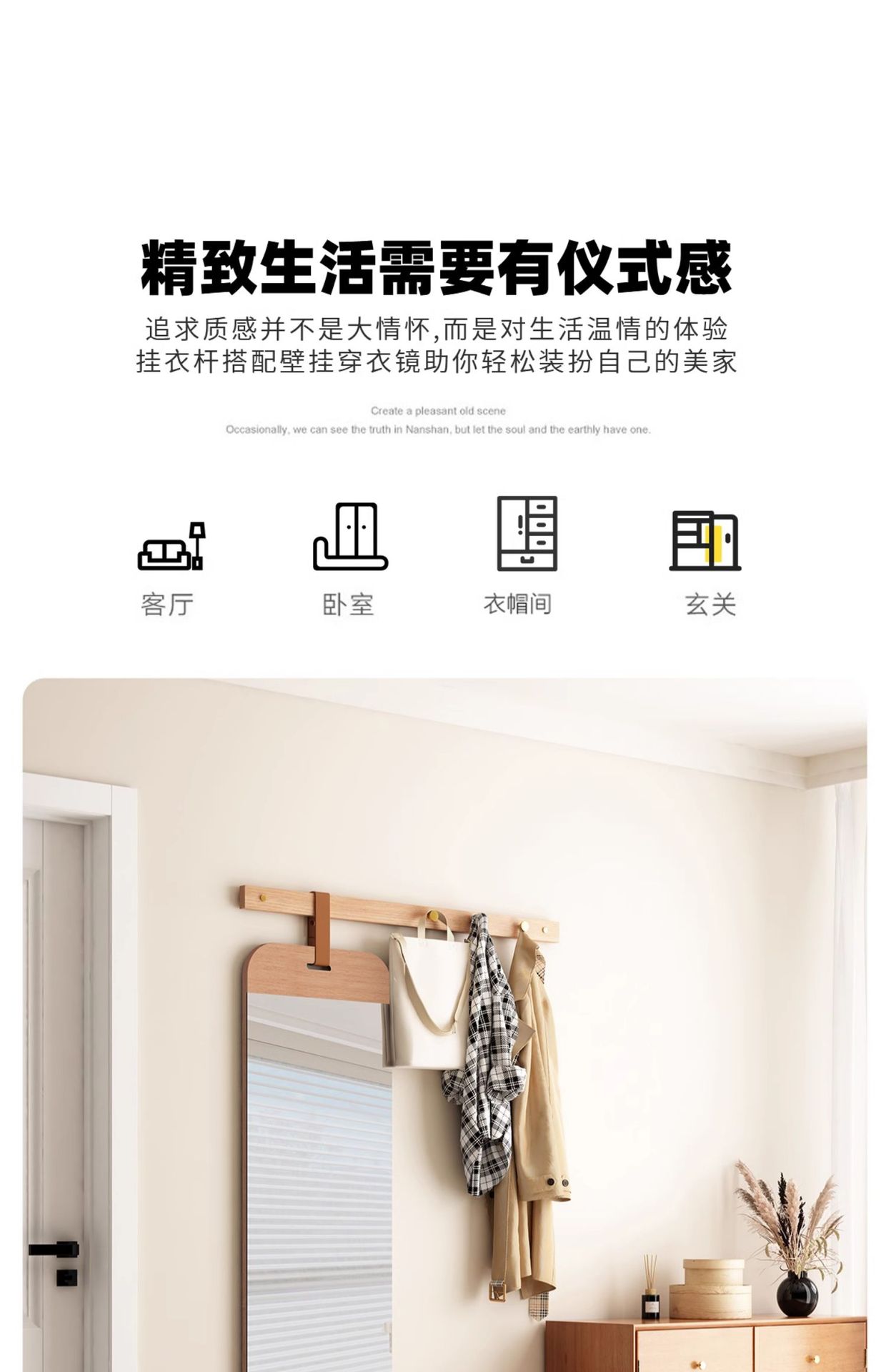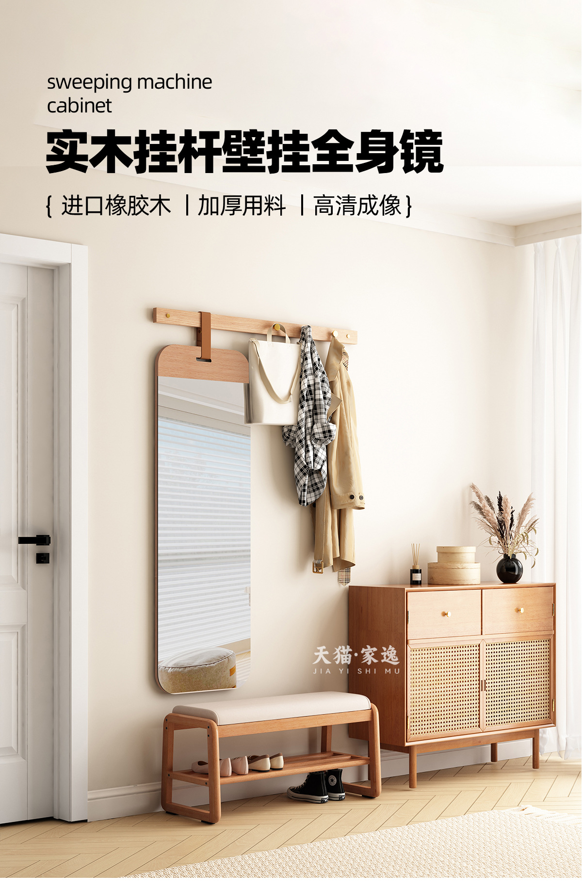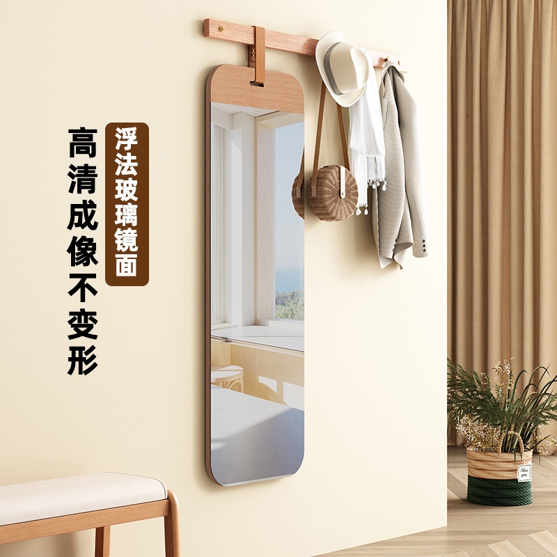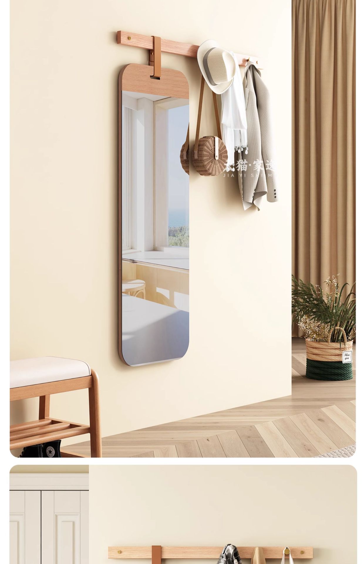 家逸实木壁挂穿衣镜贴墙全身镜女生卧室试衣服镜子挂衣架一体镜子