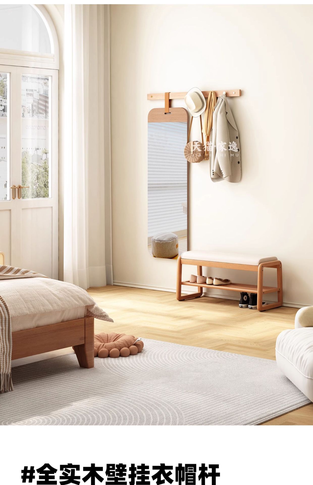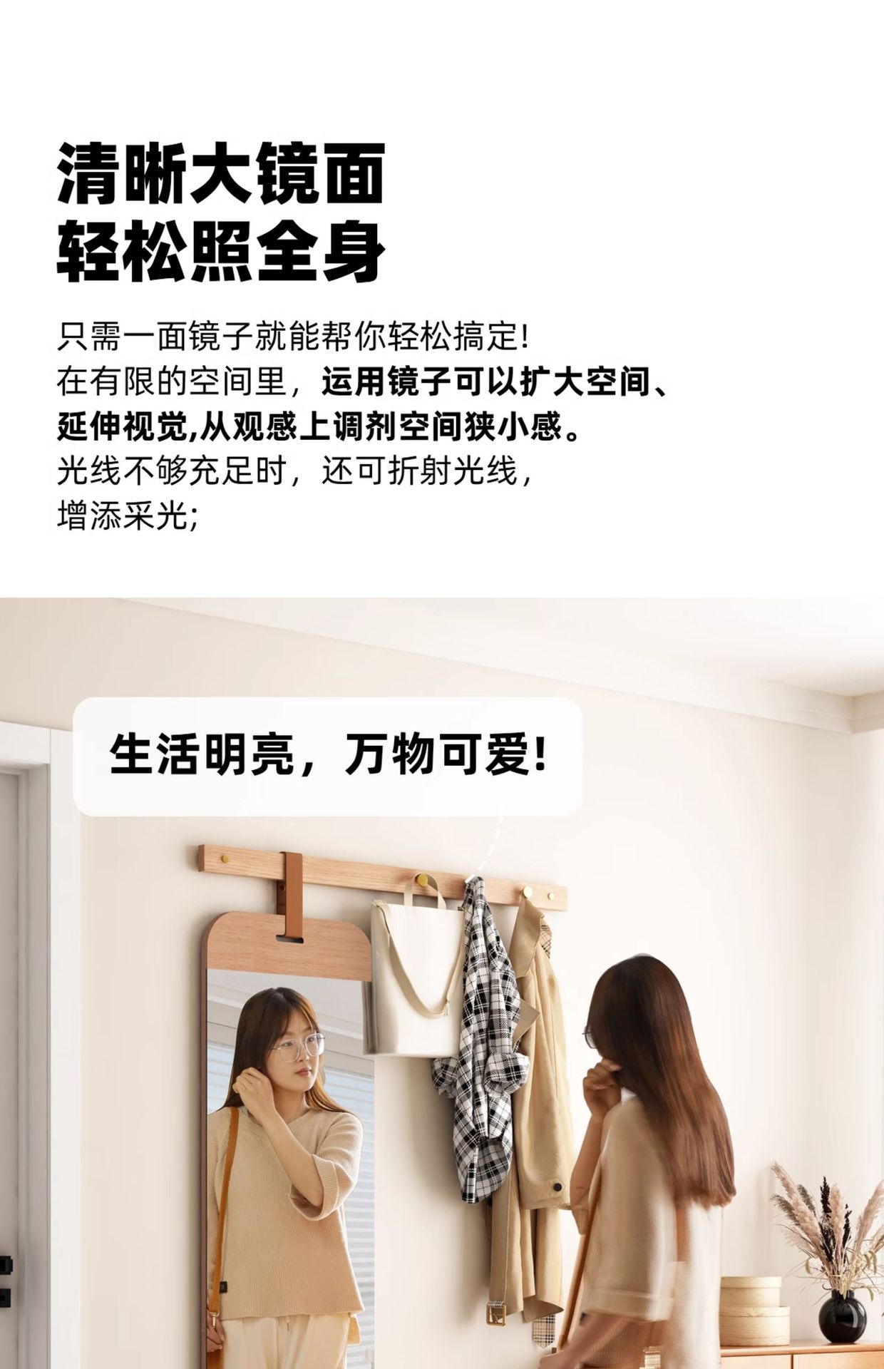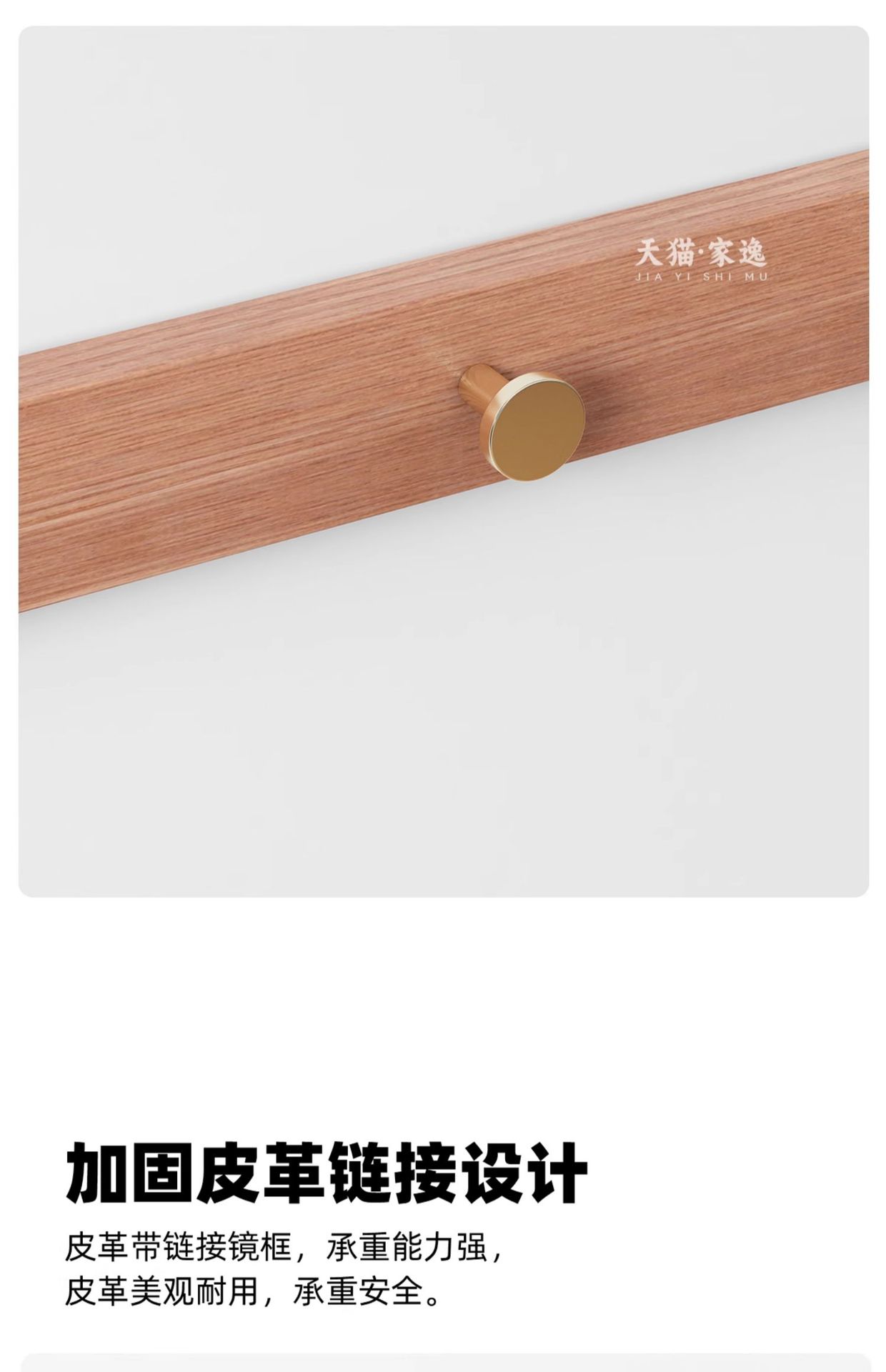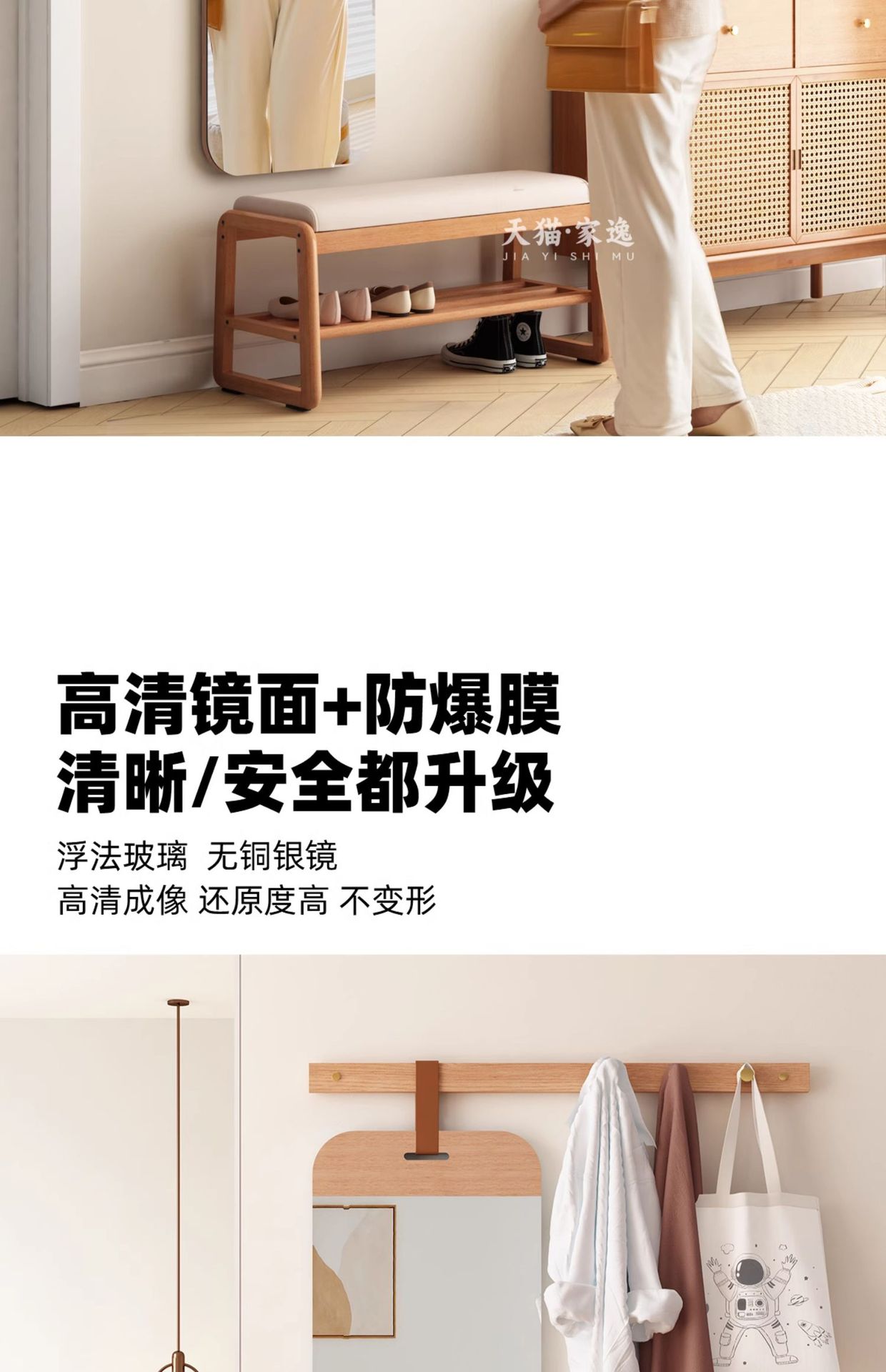 家逸实木壁挂穿衣镜贴墙全身镜女生卧室试衣服镜子挂衣架一体镜子