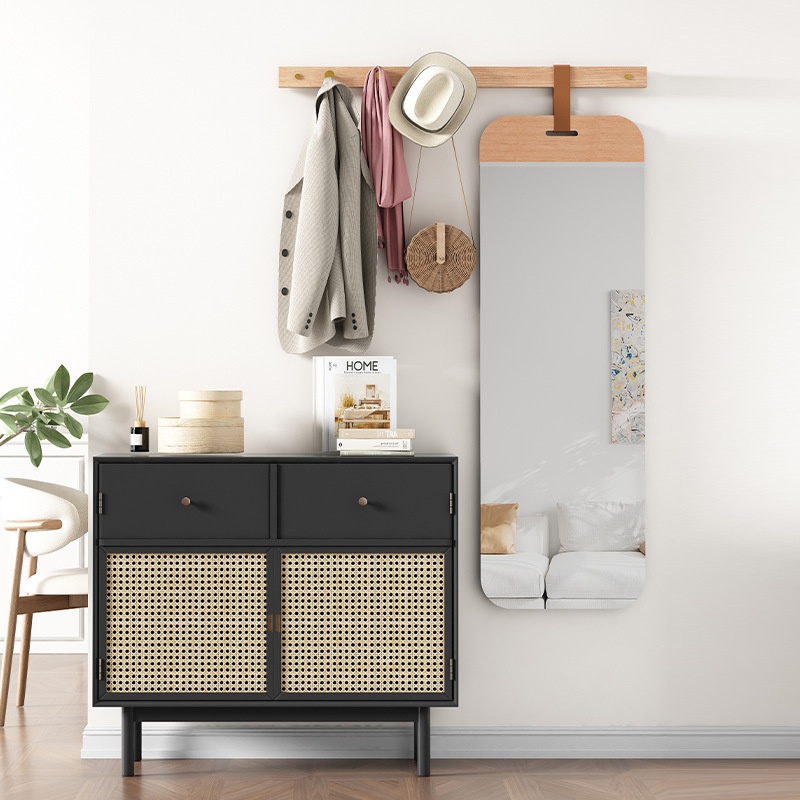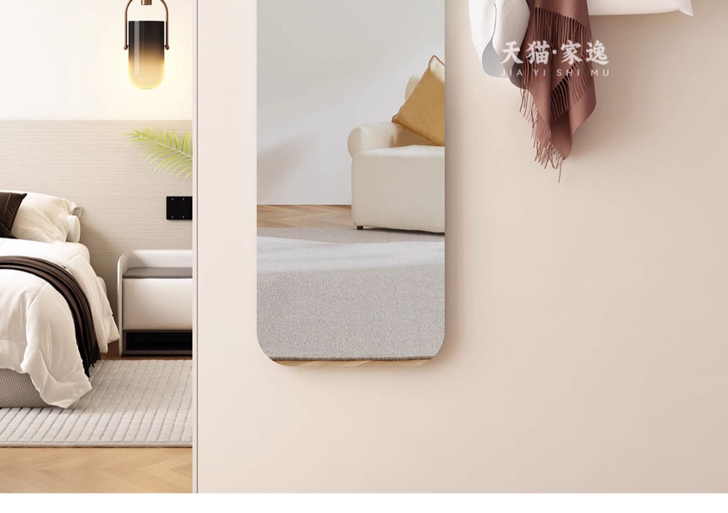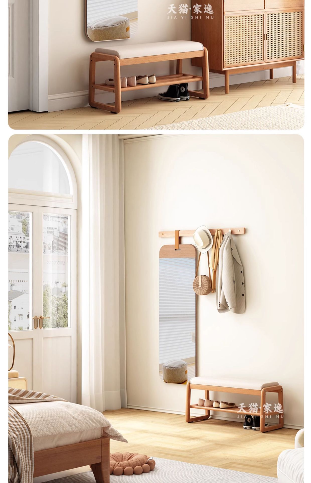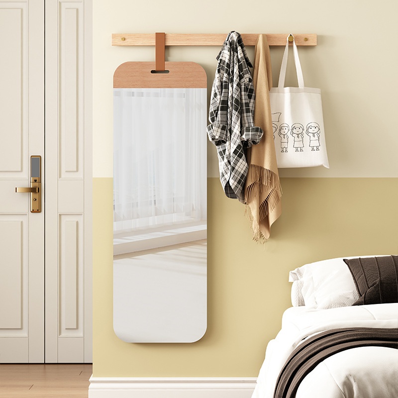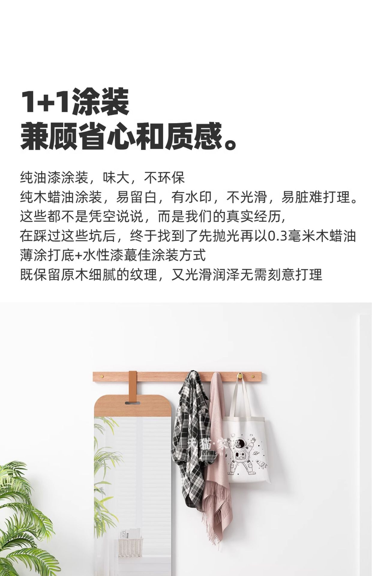 家逸实木壁挂穿衣镜贴墙全身镜女生卧室试衣服镜子挂衣架一体镜子