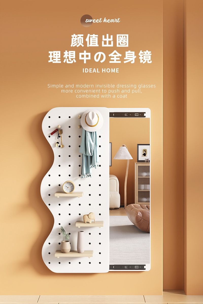 商品名稱:隐形穿衣镜推拉关闭隐藏全身镜子贴墙可遮挡壁挂洞洞板玄关试衣镜