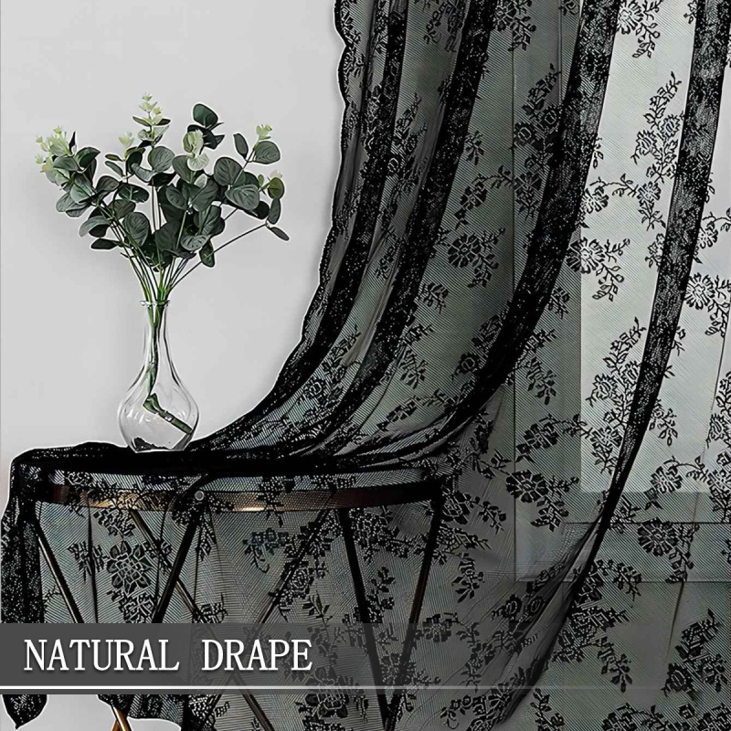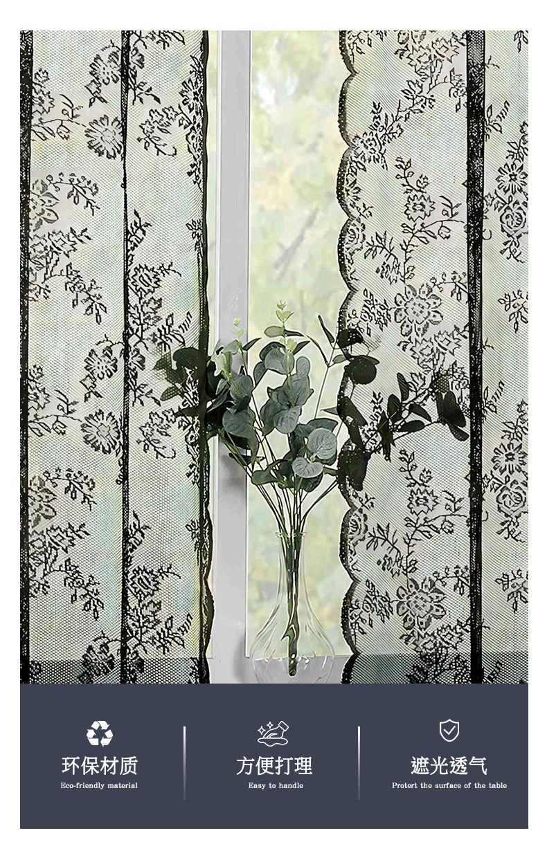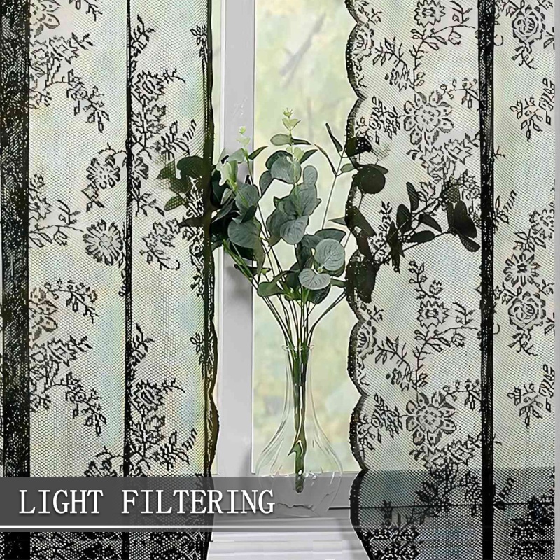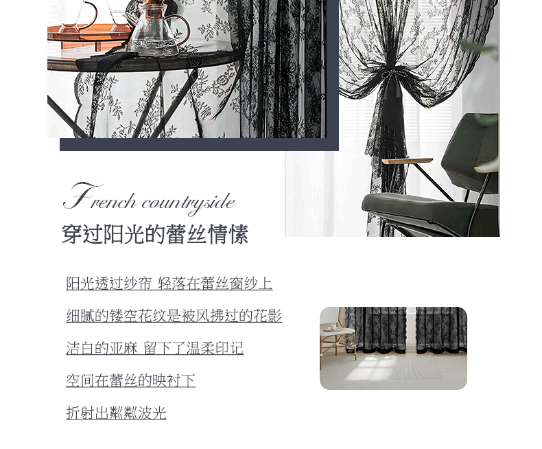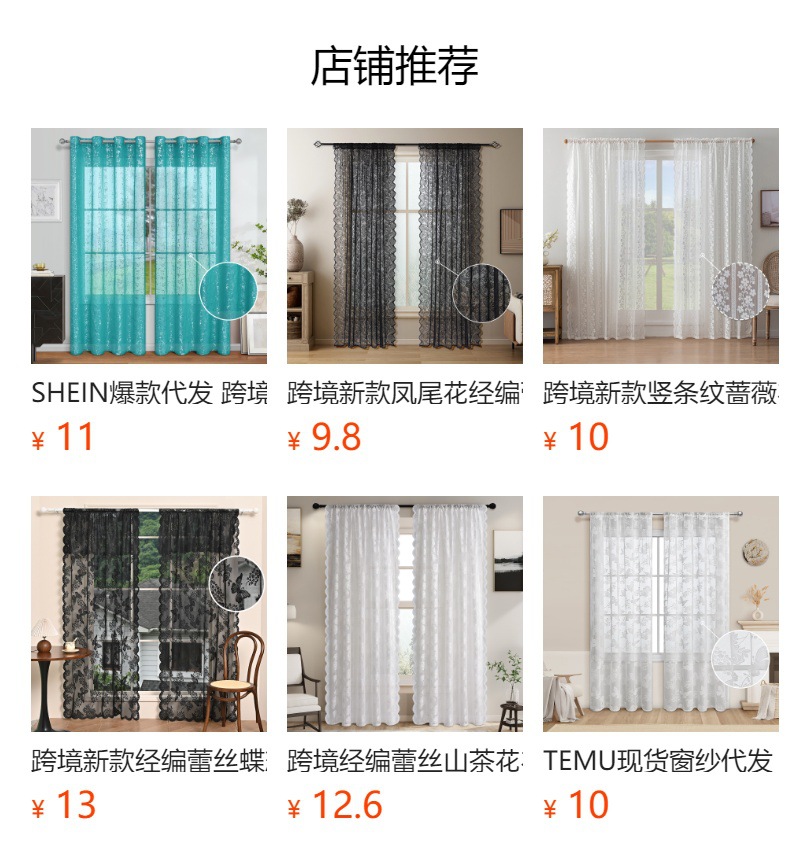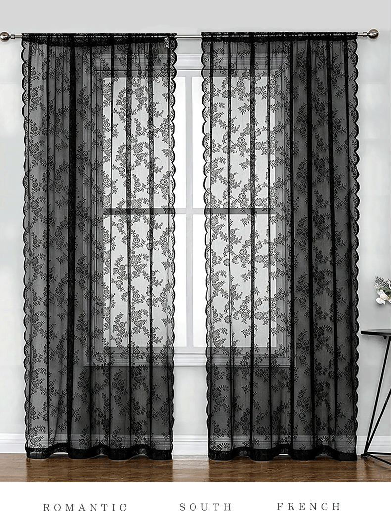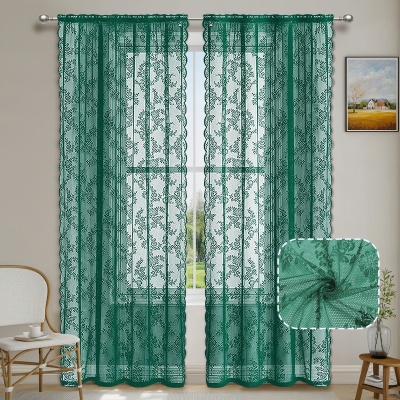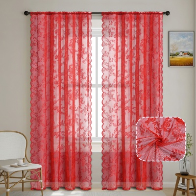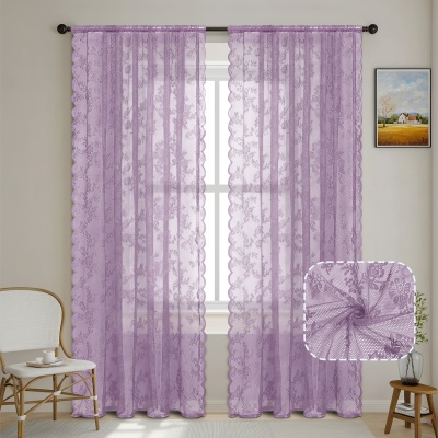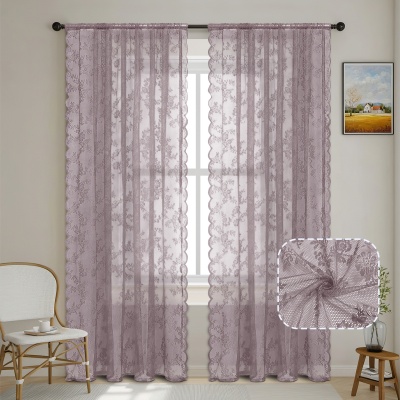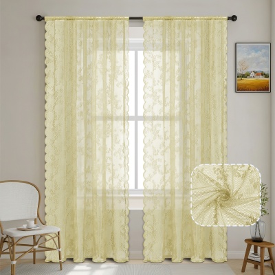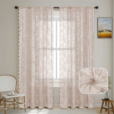 跨境法式蕾丝窗纱纱帘半遮光花边德帘穿杆窗帘成品 TEMU现货代发