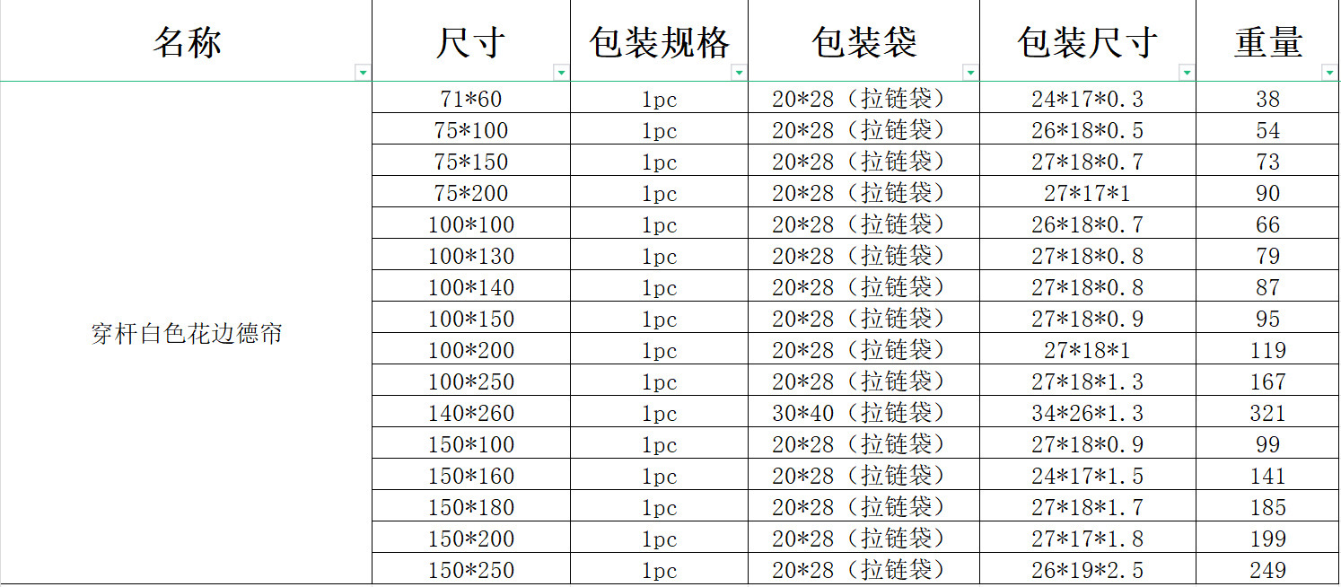 W:75cm*L:150cm(穿杆一片)