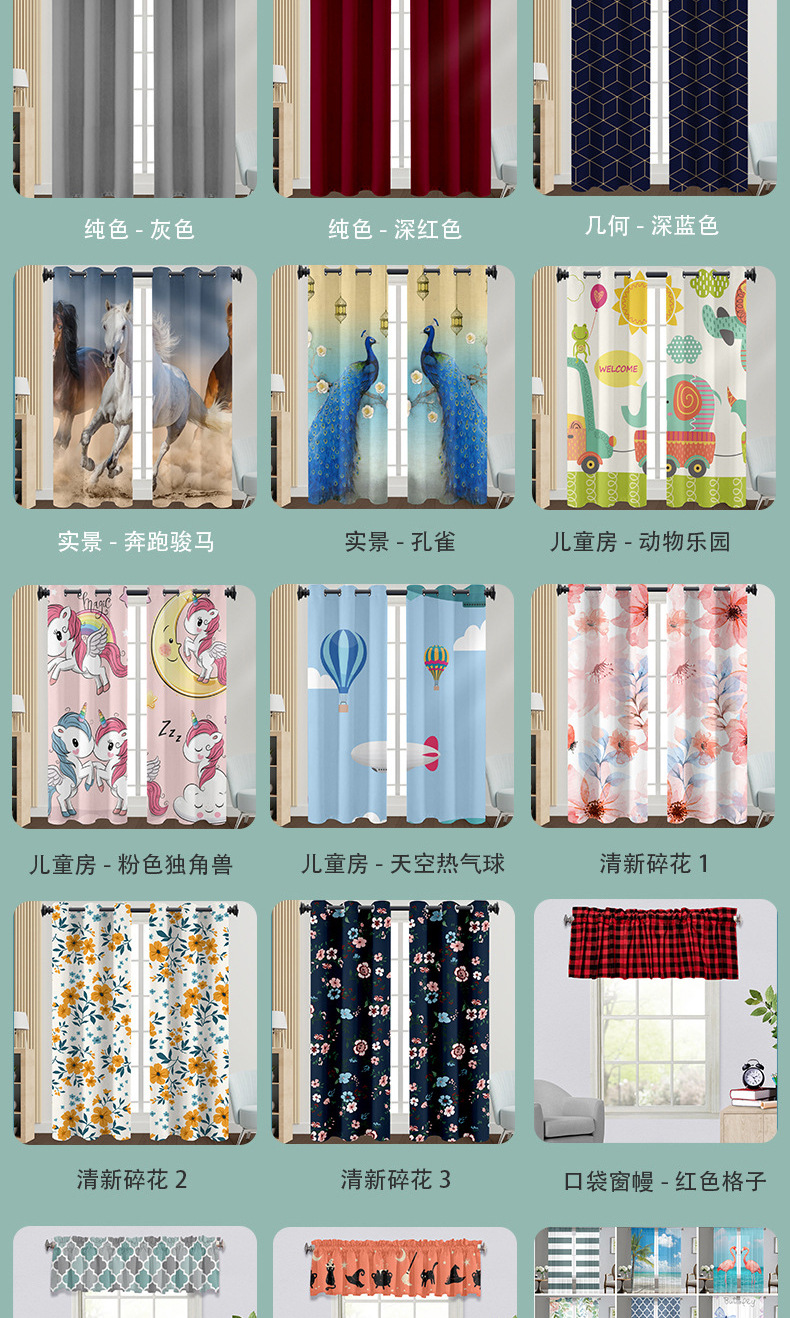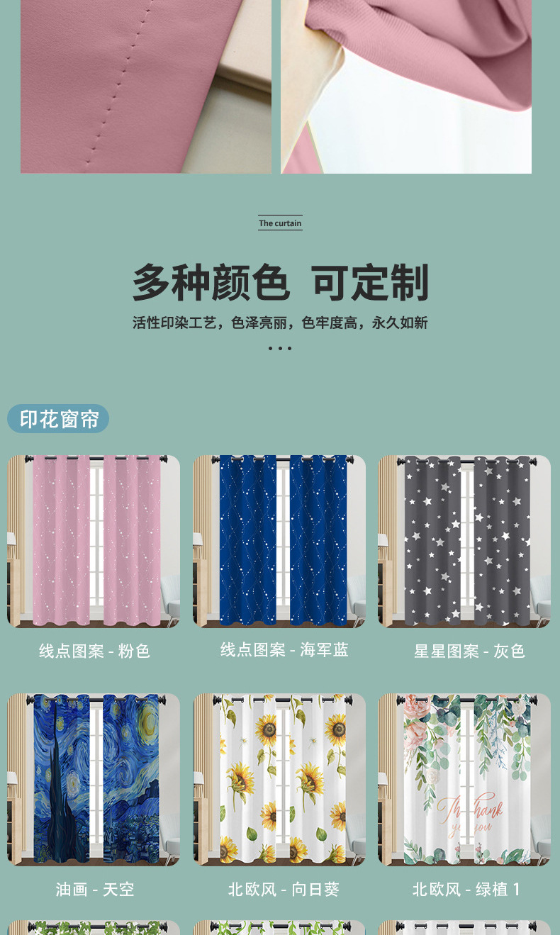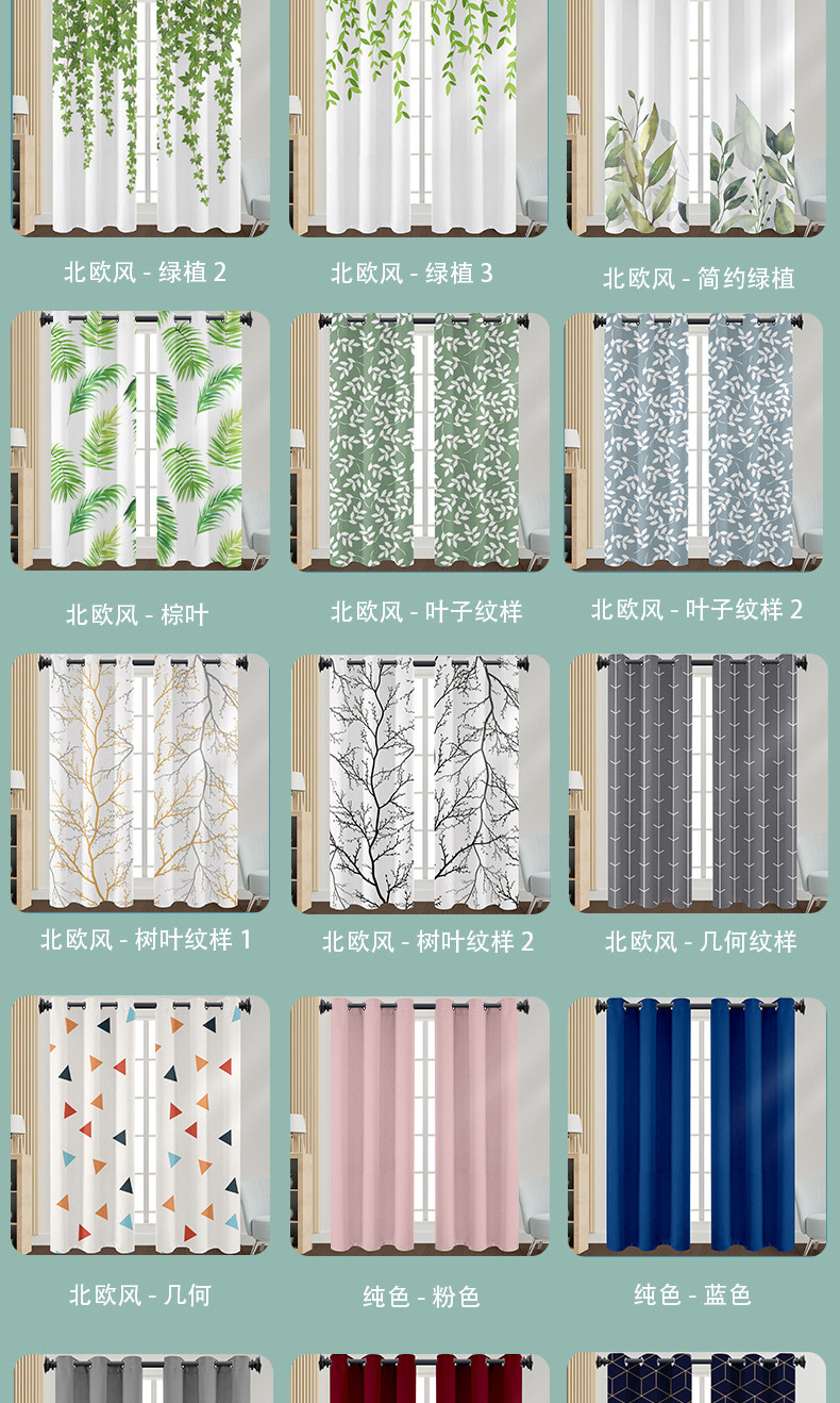 窗帘跨境北欧数码印花窗帘免打孔安装全遮光来图定制柯桥窗帘工厂