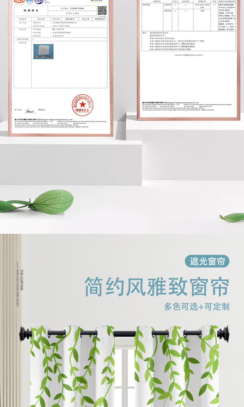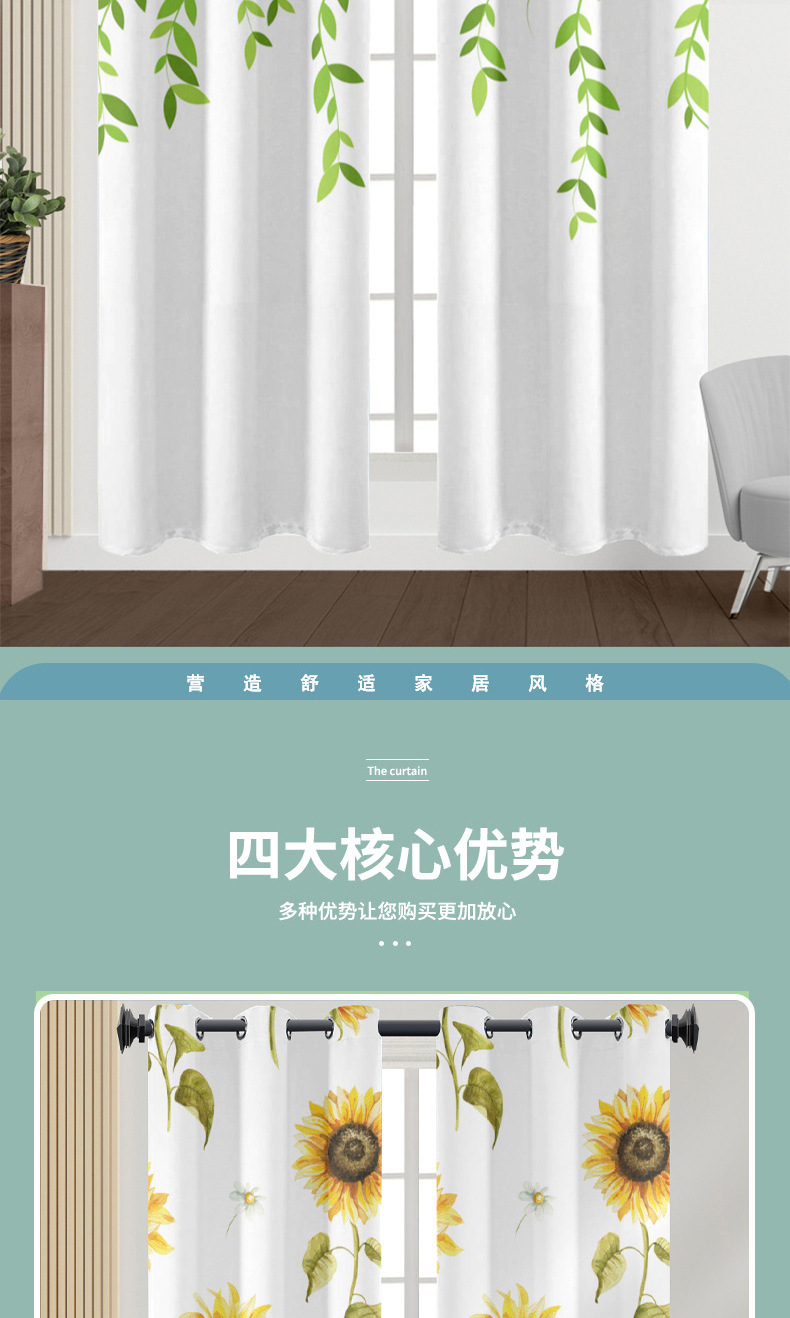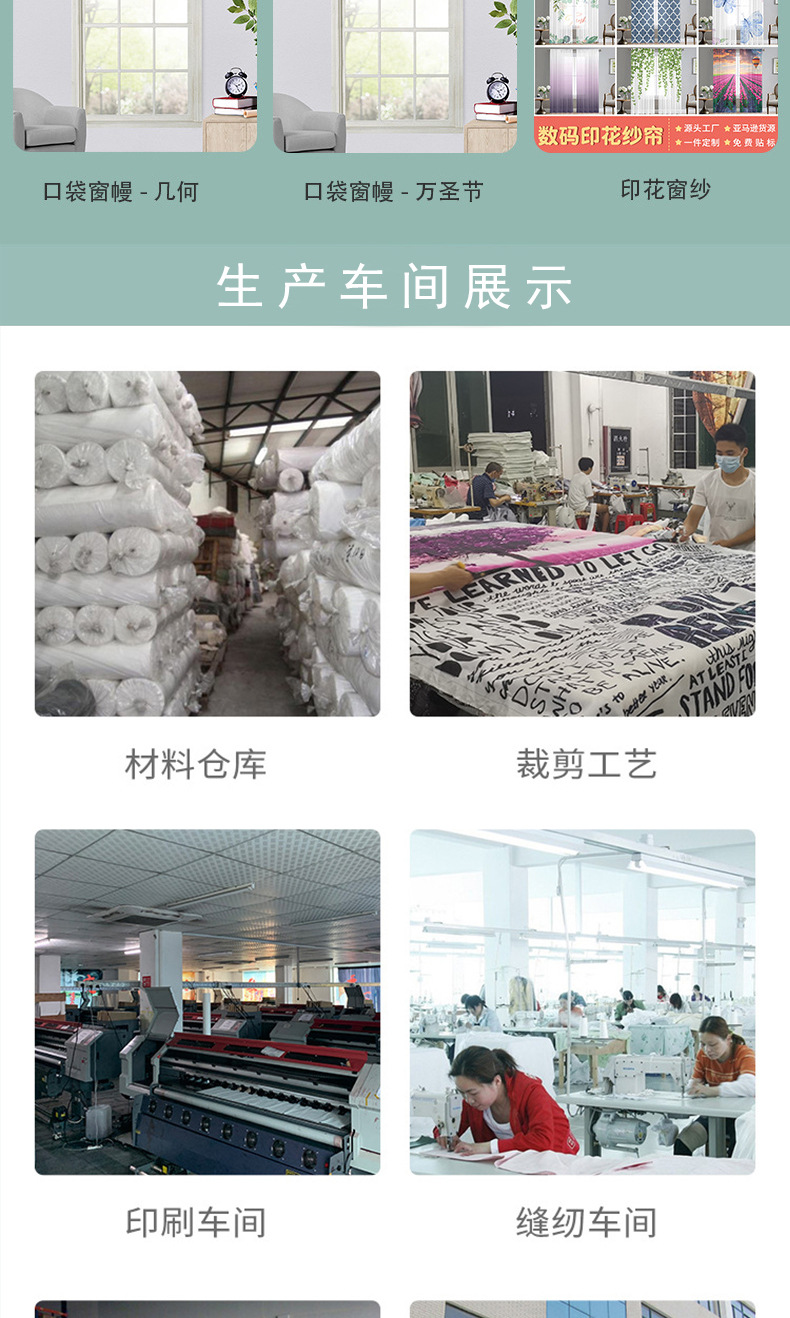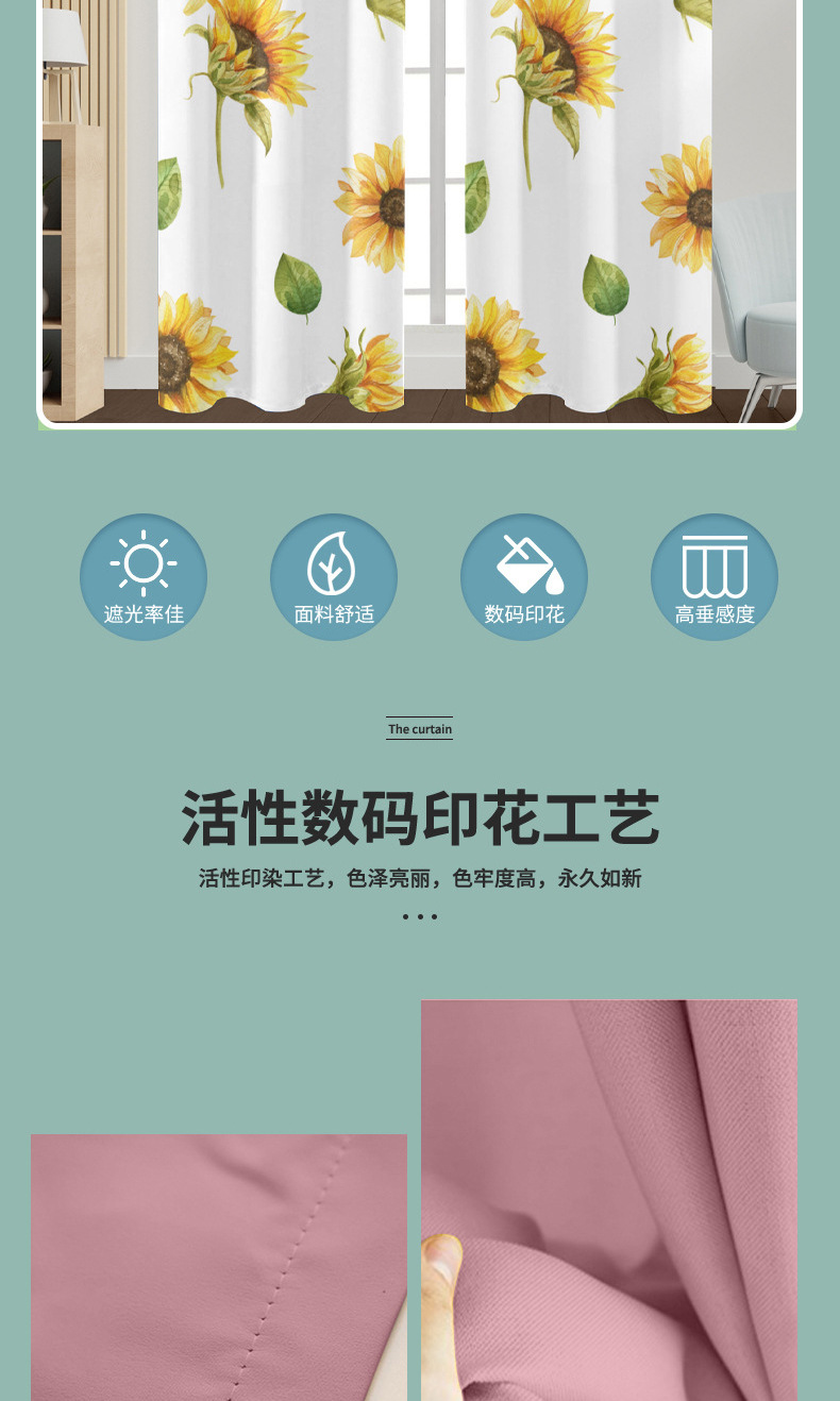 窗帘跨境北欧数码印花窗帘免打孔安装全遮光来图定制柯桥窗帘工厂
