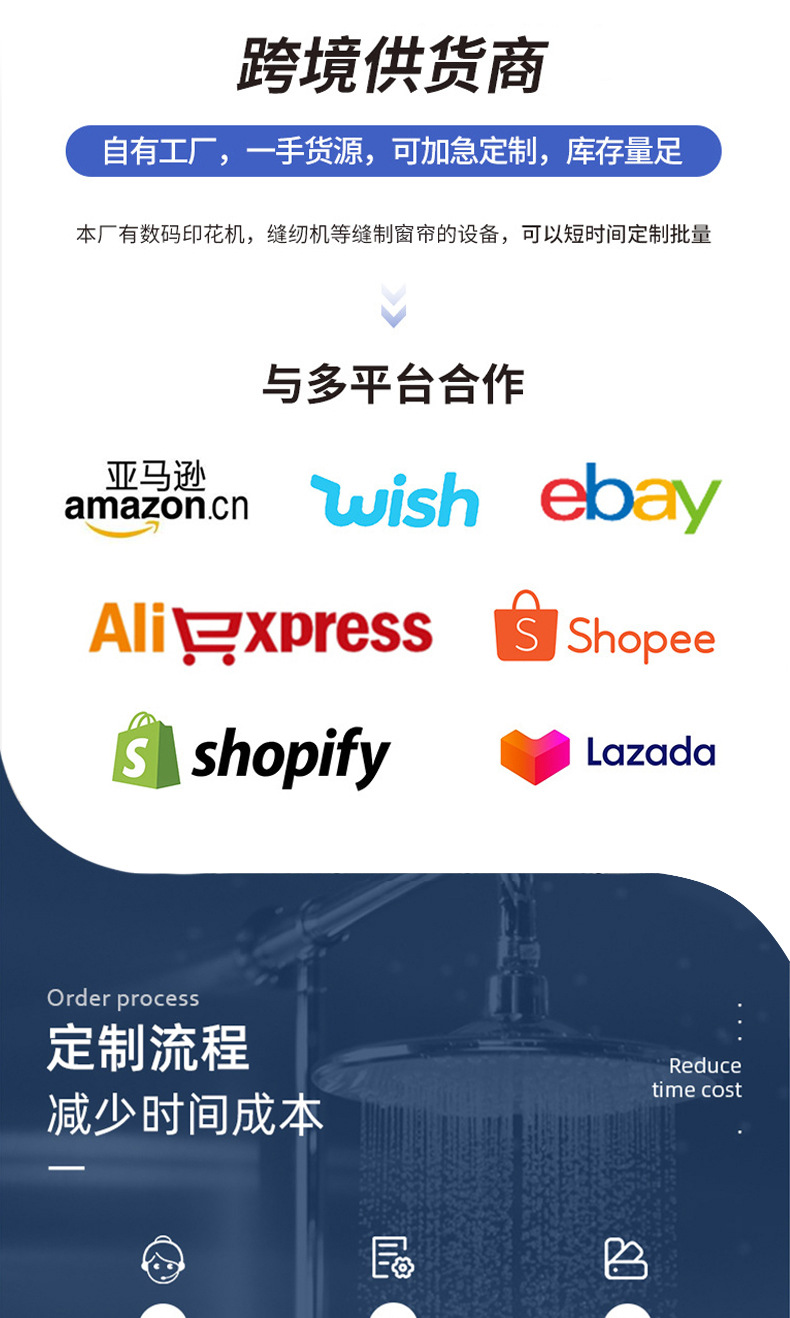 商品名稱:窗帘跨境北欧数码印花窗帘免打孔安装全遮光来图定制柯桥窗帘工厂