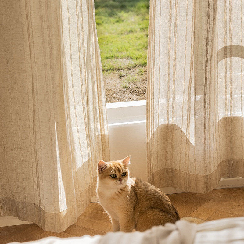 商品名稱:日式亚麻云栖纱客厅书房卧室高级感纱帘窗帘透光不透人绍兴批发布