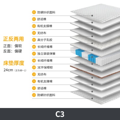 卡丽雅E 独立袋弹簧+3E椰棕 正反两用