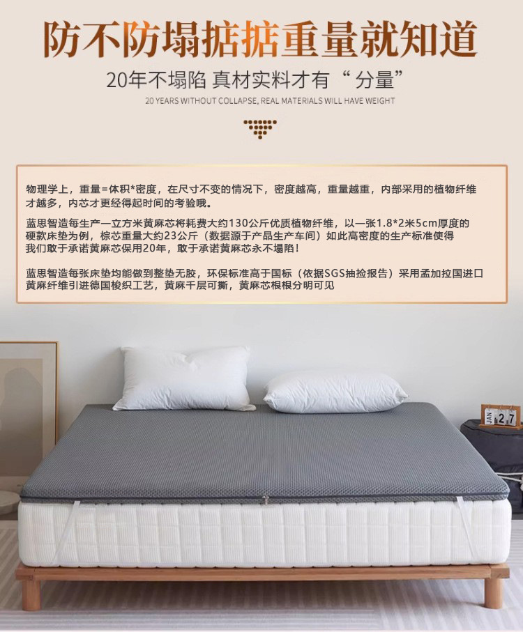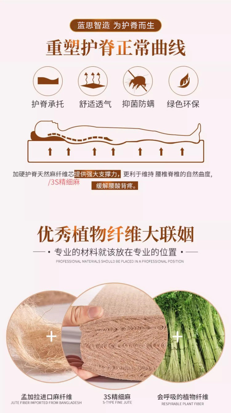 商品名稱:蓝思智造护脊加硬S型精细黄麻棕垫薄款硬乳胶儿童加硬床垫家用