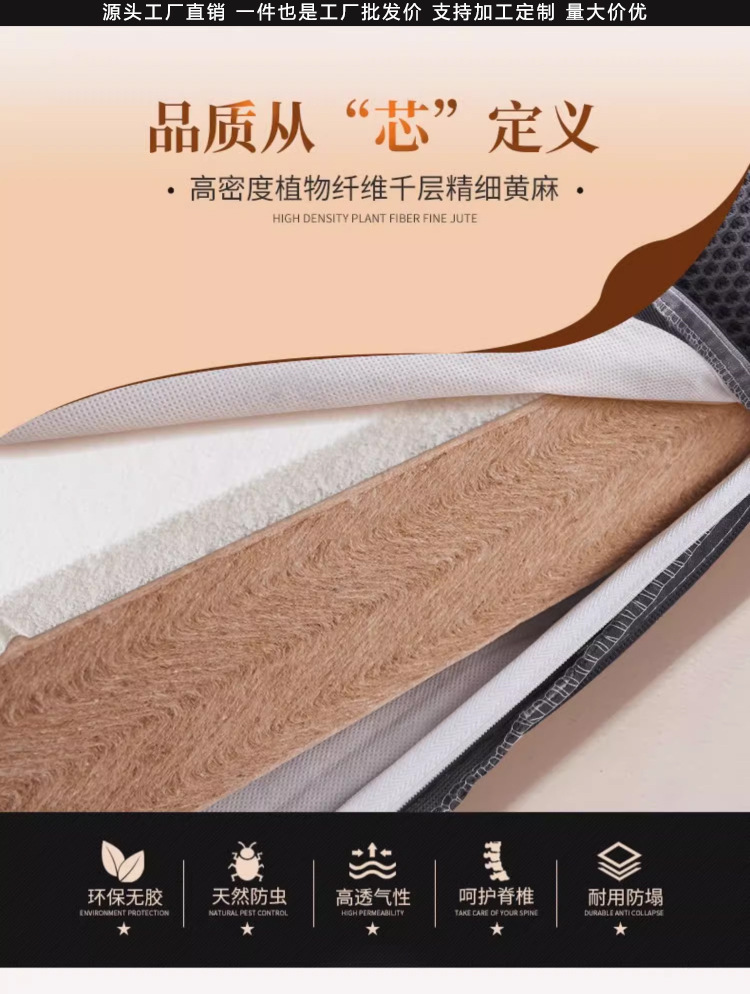 A款7.6CM厚=5cm黄麻+2CM乳胶+双层6D