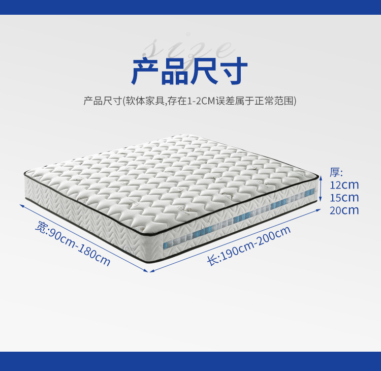 商品名稱:家用独立弹簧床垫乳胶袋装20cm偏软厚大厅酒店民宿学生用席梦思