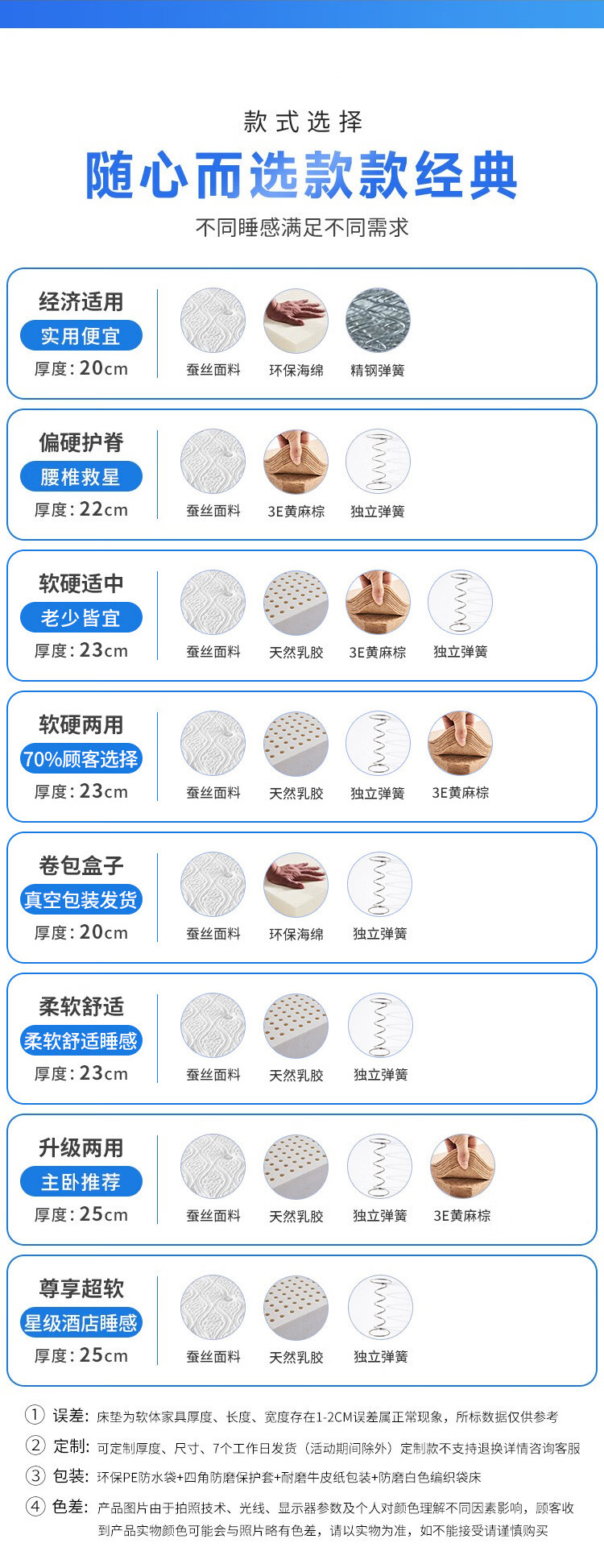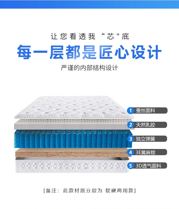 商品名稱:蓝思智造家具席梦思垫天然乳胶椰棕独立弹簧软硬两用床垫家护脊
