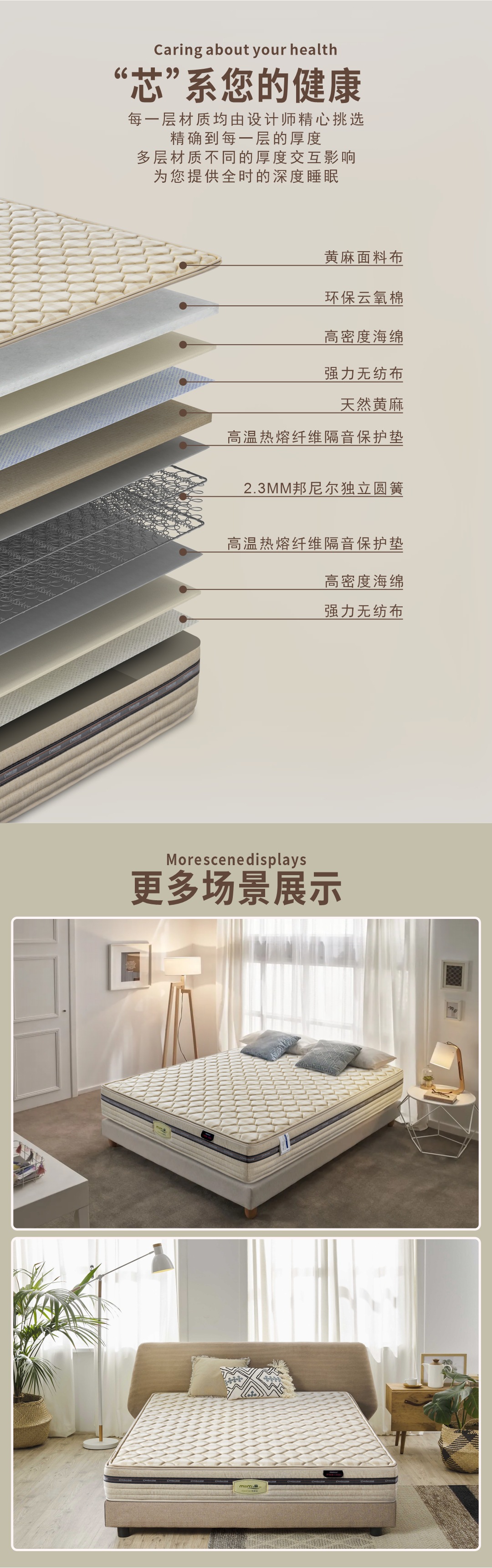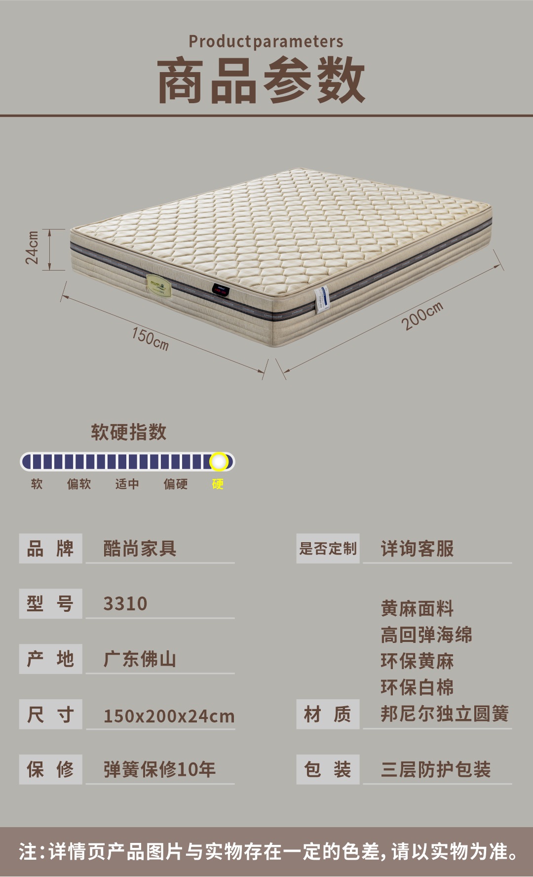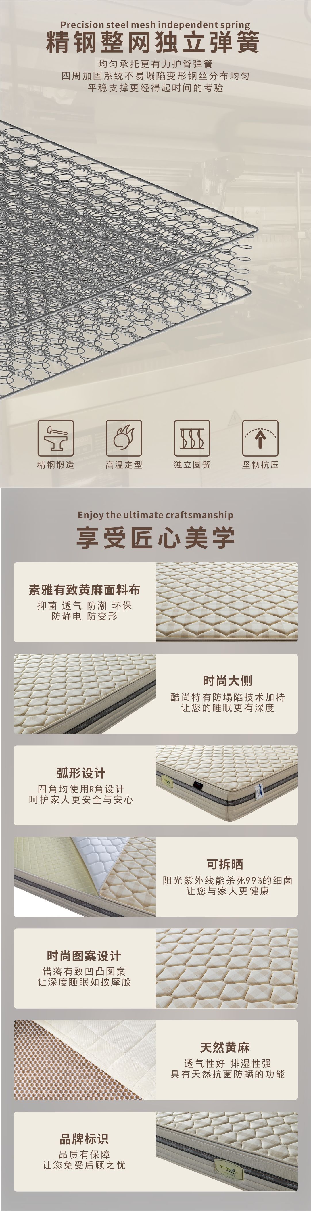 3cm天然精细黄麻+强支撑邦尼尔弹簧+0胶水可拆洗