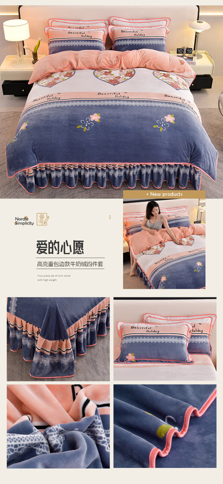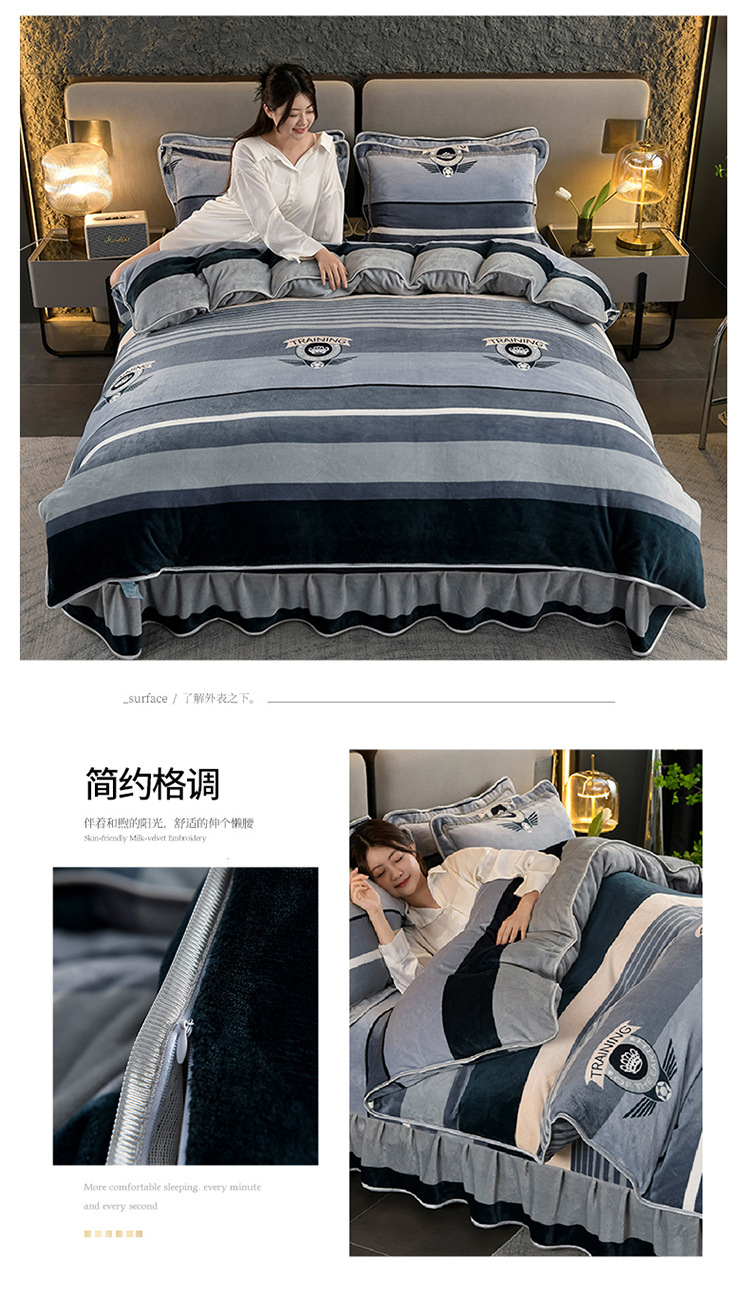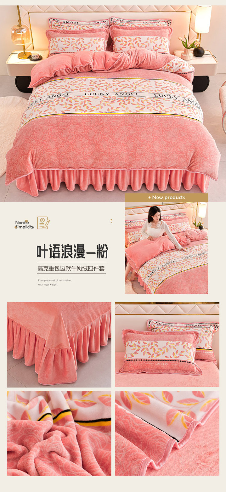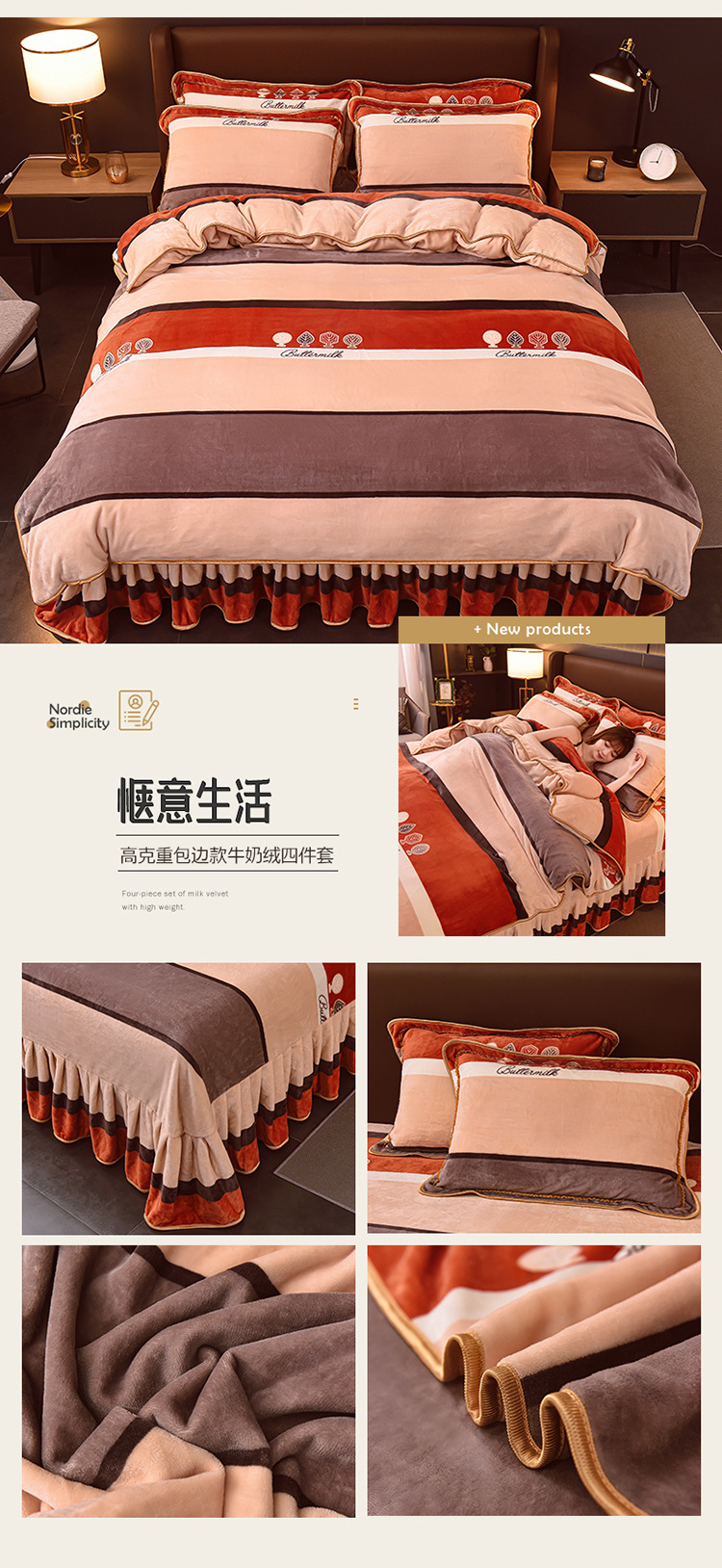 商品名稱:新款牛奶绒四件套秋冬加厚保暖套件亲肤宝宝绒单被套床上用品
