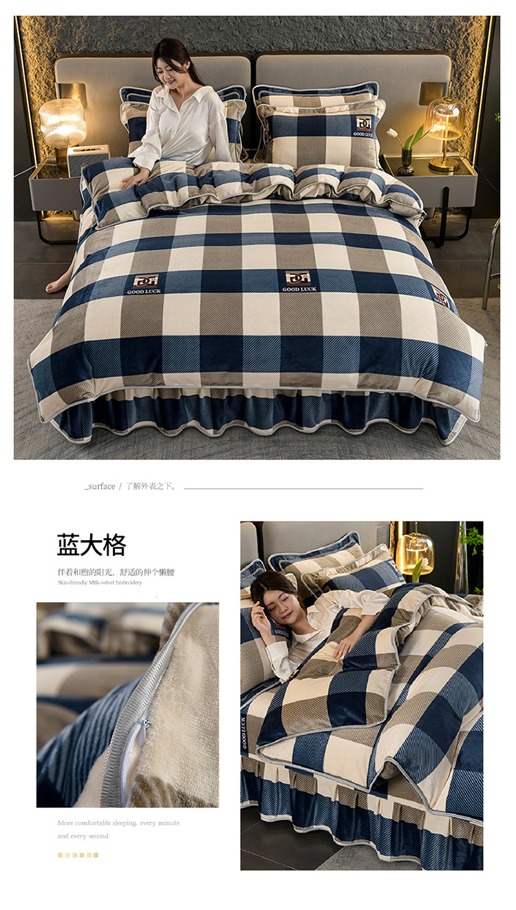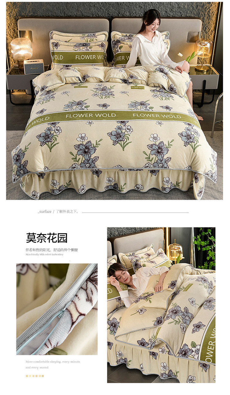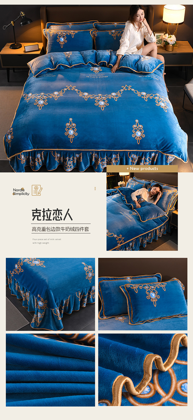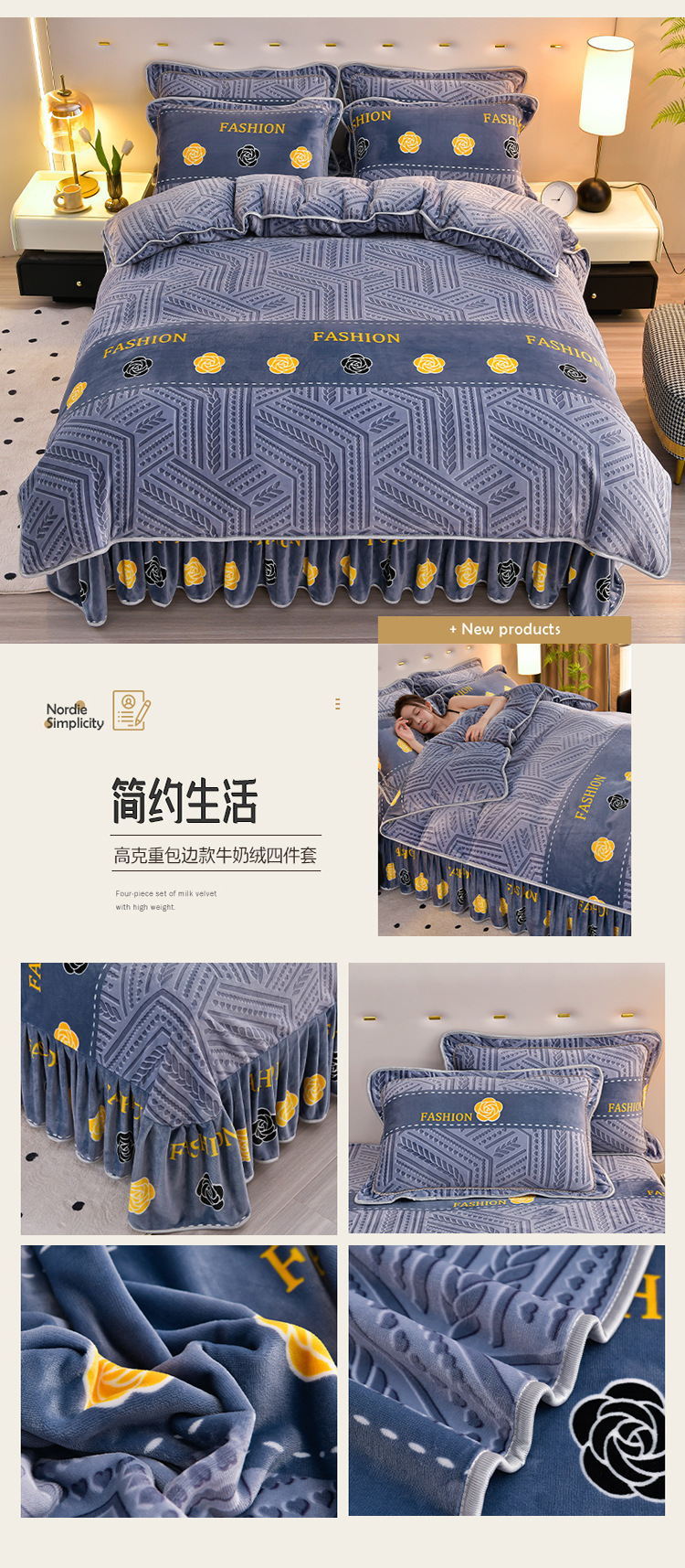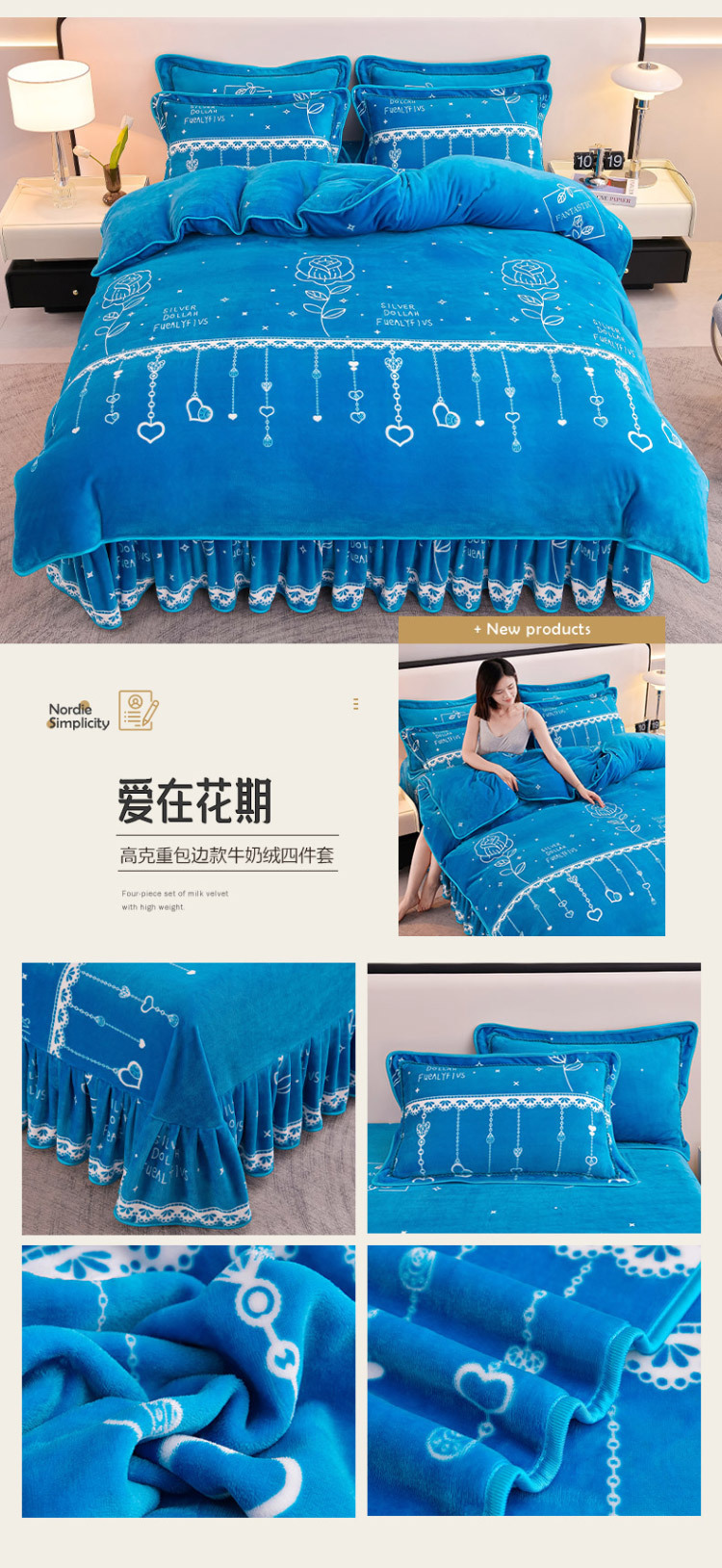 商品名稱:新款牛奶绒四件套秋冬加厚保暖套件亲肤宝宝绒单被套床上用品