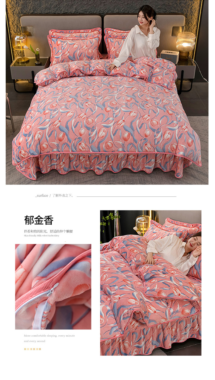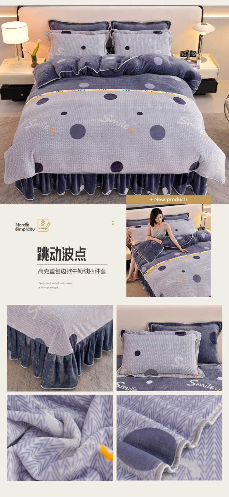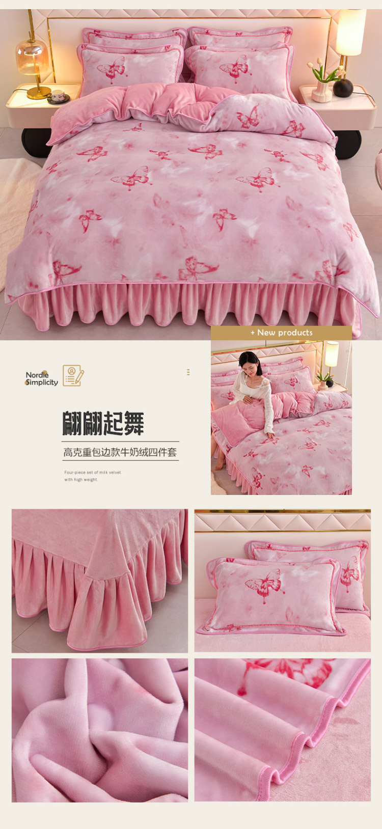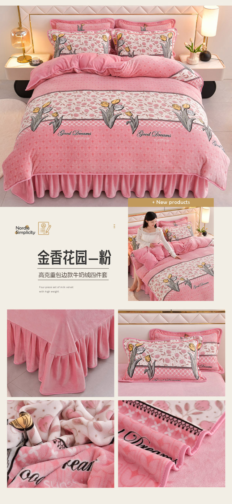 商品名稱:新款牛奶绒四件套秋冬加厚保暖套件亲肤宝宝绒单被套床上用品
