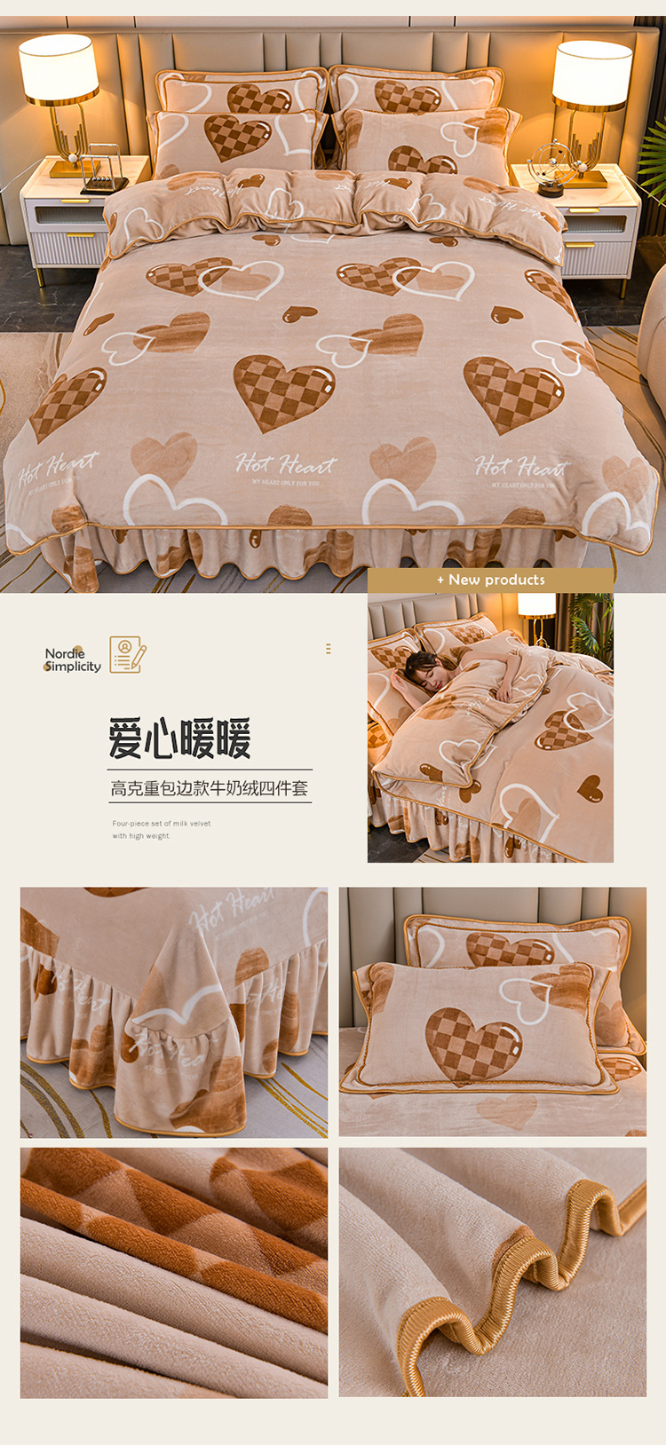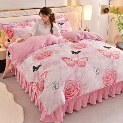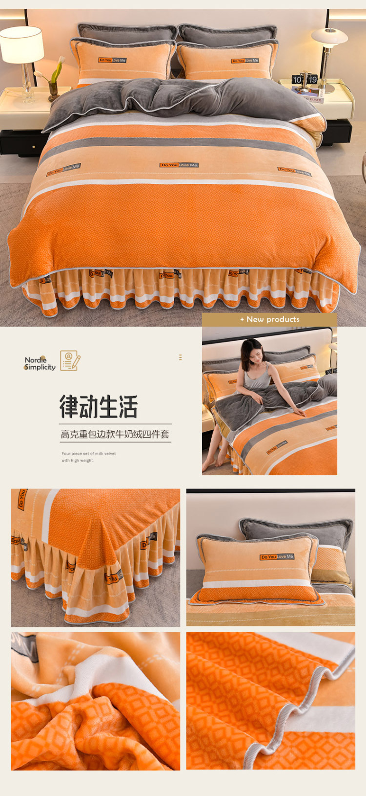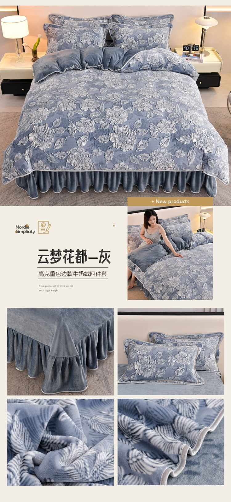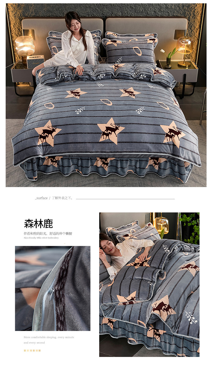 商品名稱:新款牛奶绒四件套秋冬加厚保暖套件亲肤宝宝绒单被套床上用品